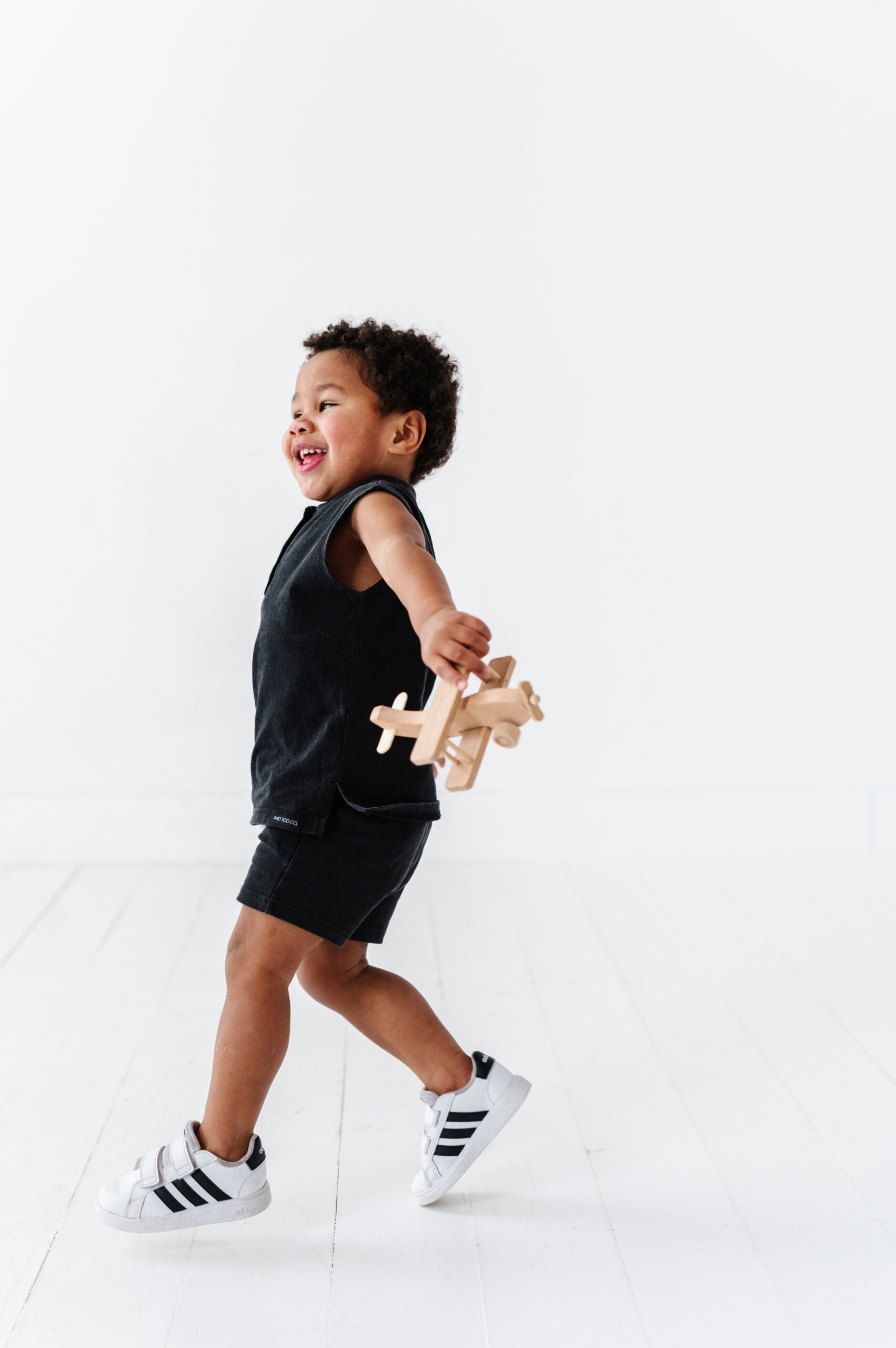 A perfect cotton (95%) and spandex (5%) blend of the dreamiest acid wash. Fit is true to size and above the knee. Waist is adjustable.
