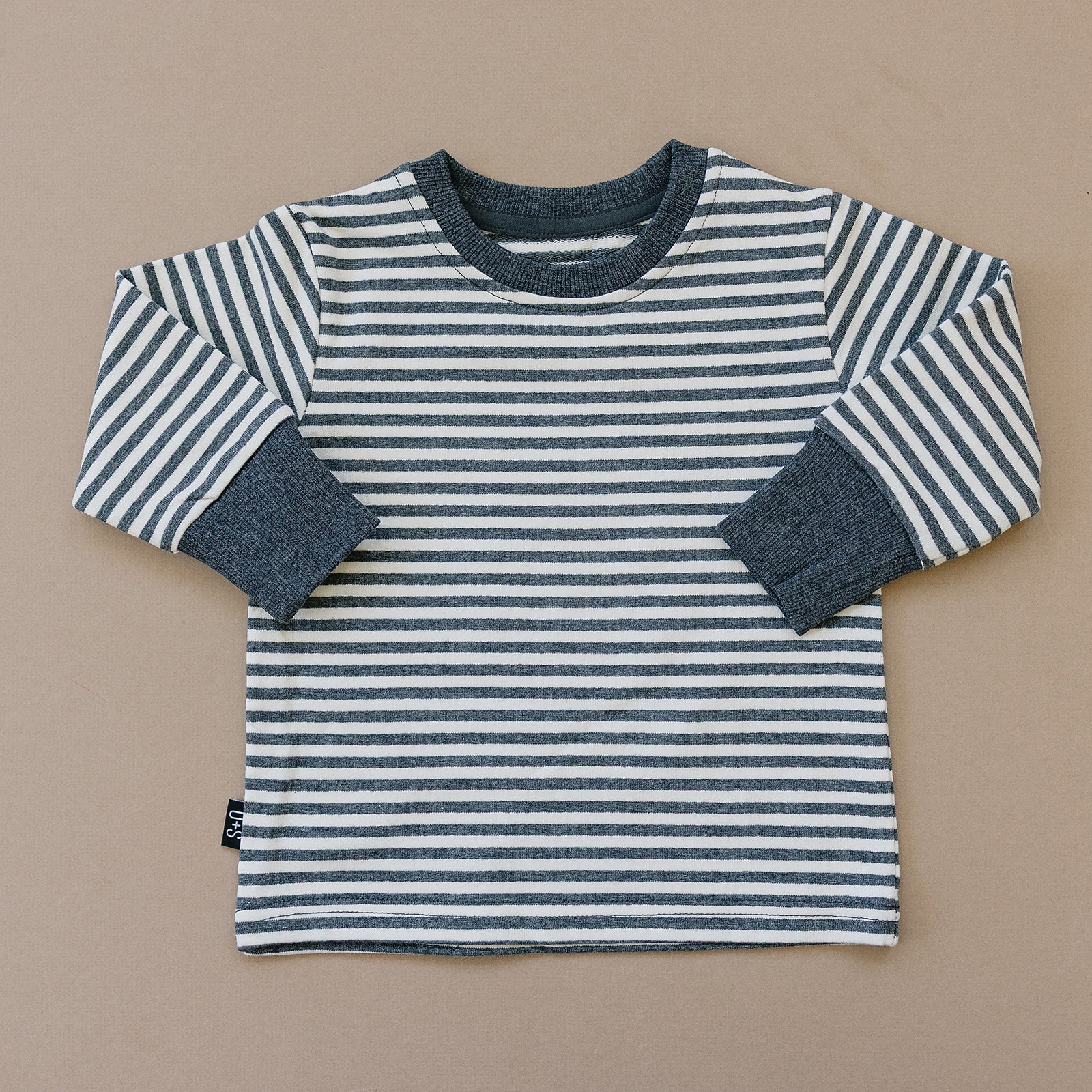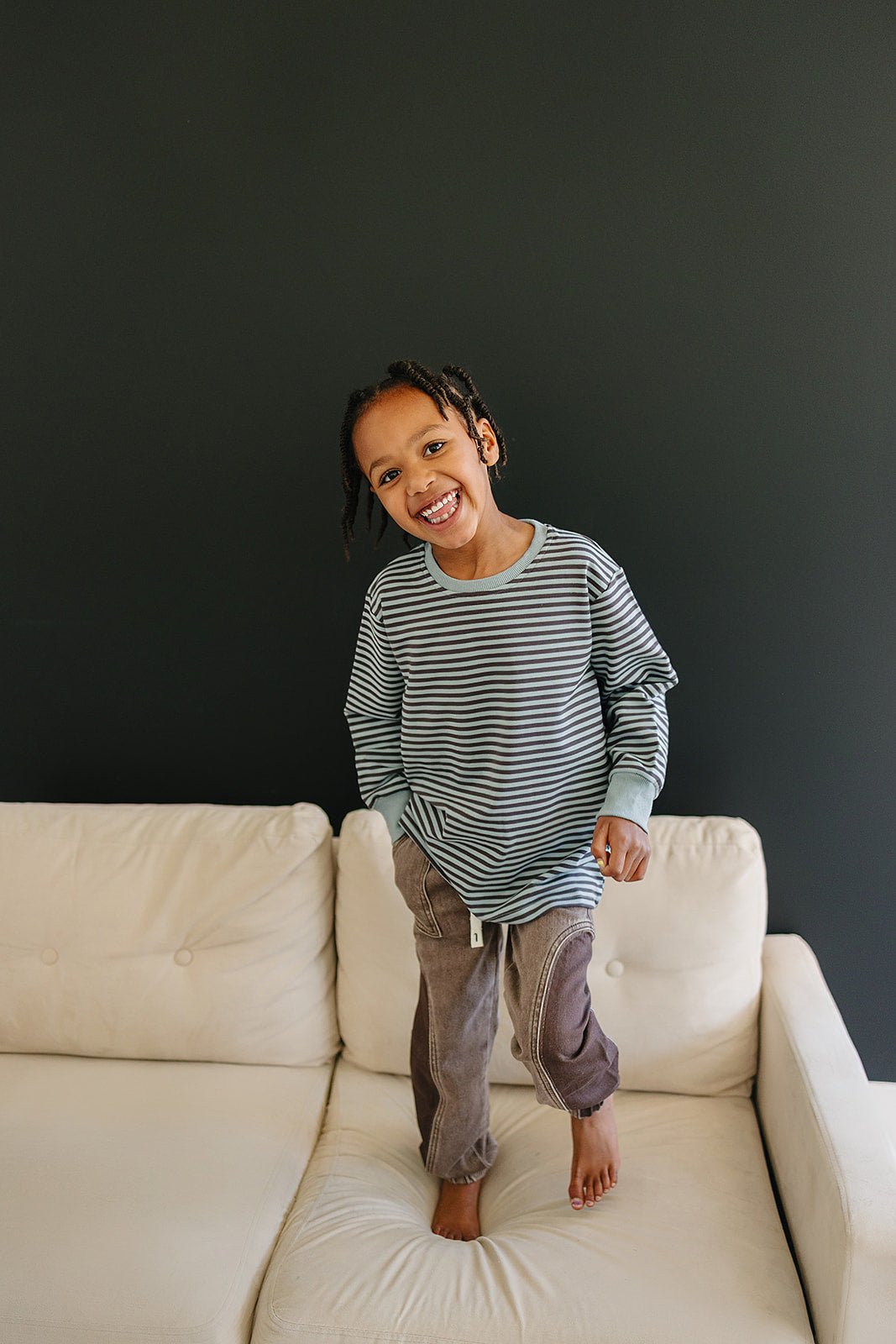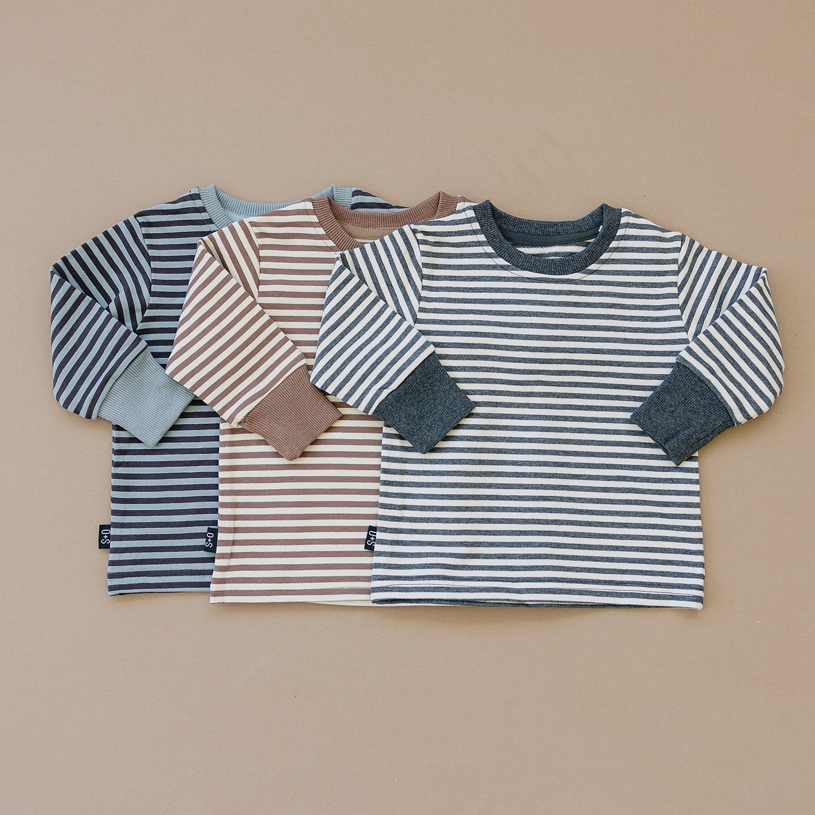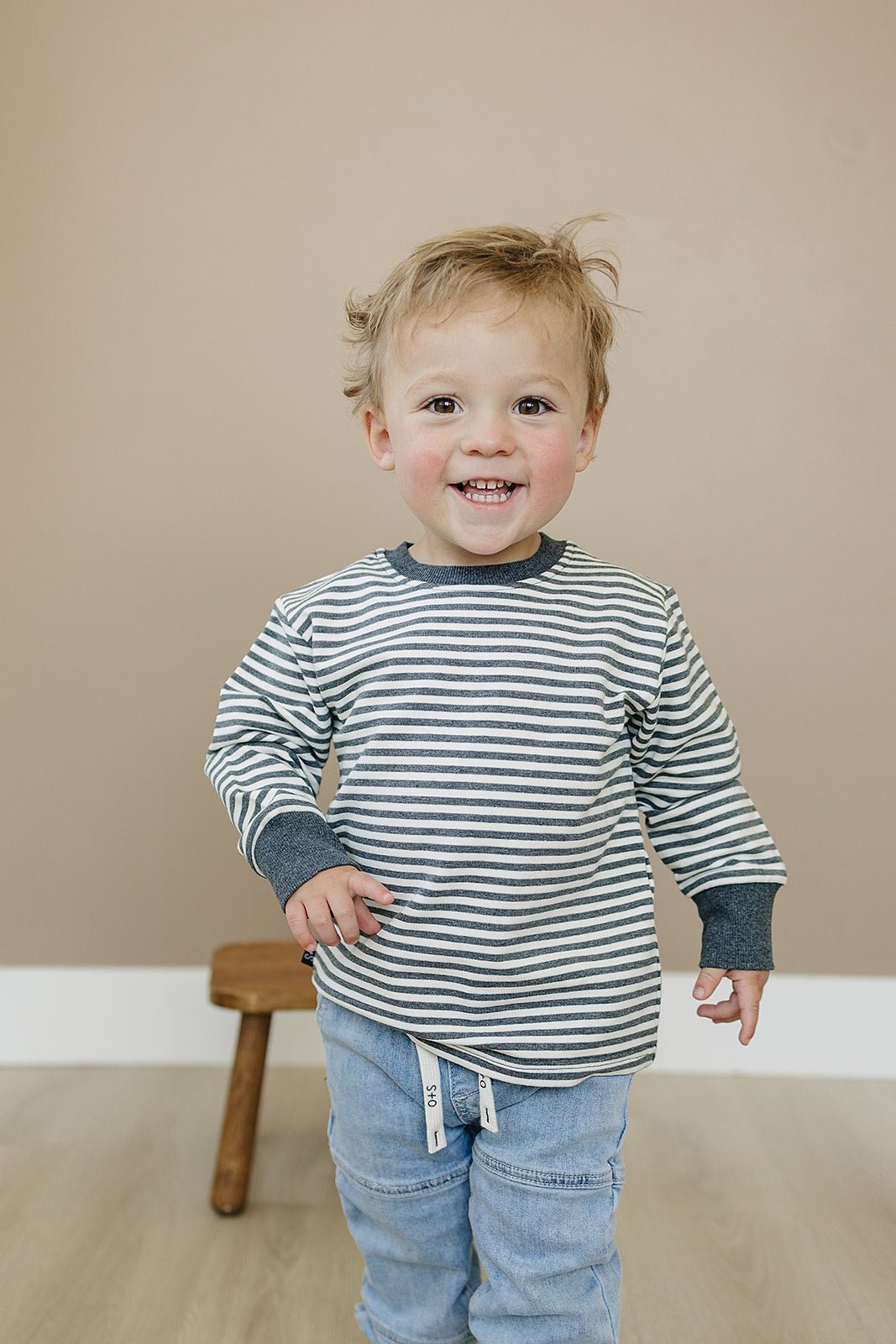 The Banks Long Sleeve is a playful favorite for your little one's fall wardrobe. Crafted from super soft, classic striped fabric, it offers all-day comfort with a stylish twist. Featuring solid contrasting cuffs and neckline, this top strikes the perfect balance between upscale and fun, making it an effortless go-to for everyday adventures.