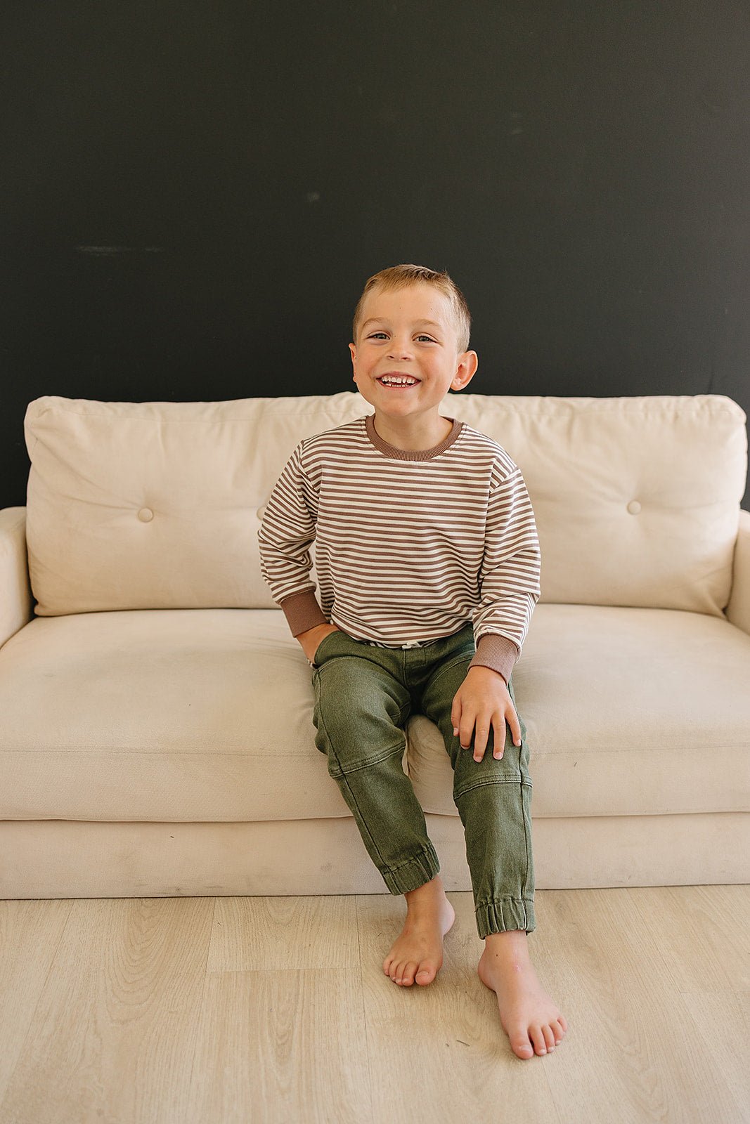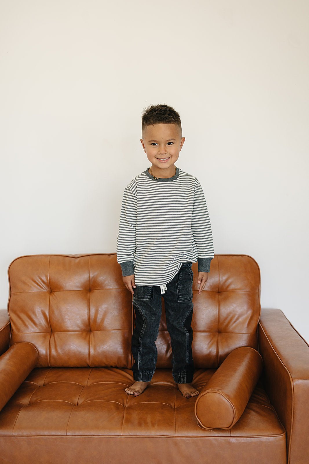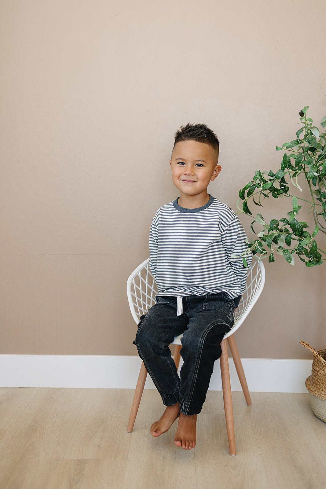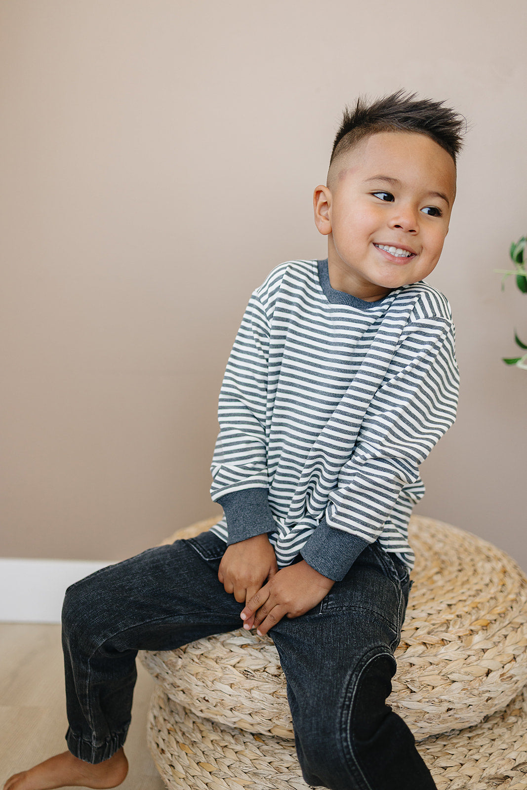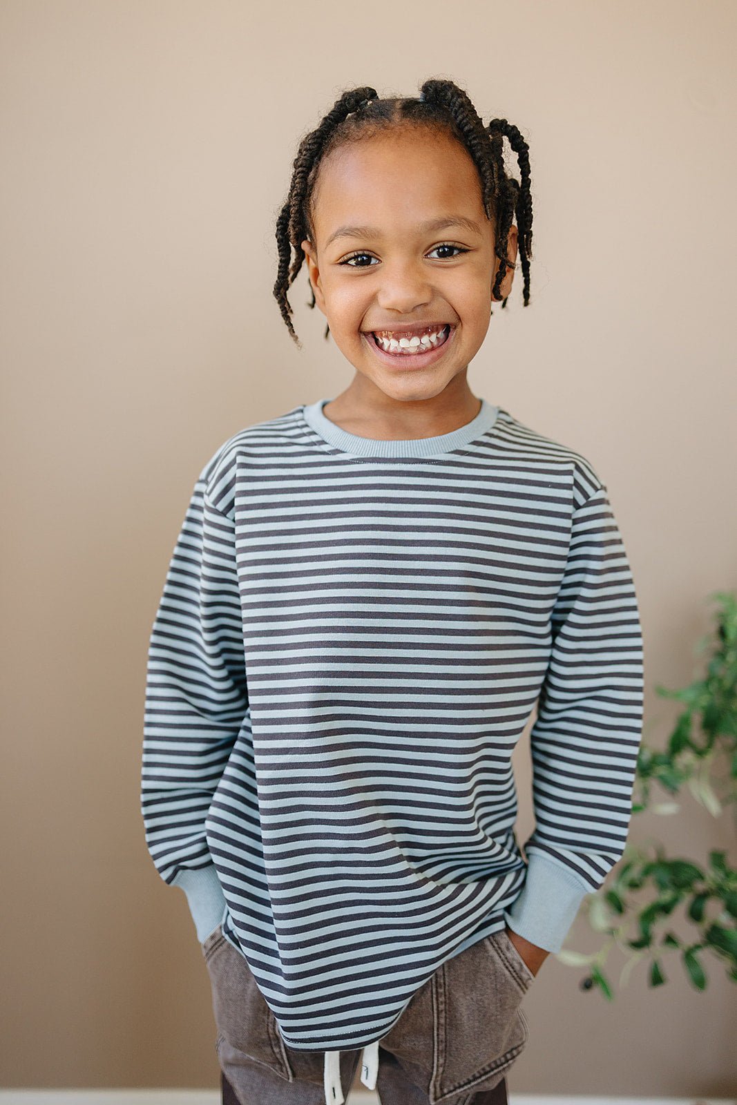 The Banks Long Sleeve is a playful favorite for your little one's fall wardrobe. Crafted from super soft, classic striped fabric, it offers all-day comfort with a stylish twist. Featuring solid contrasting cuffs and neckline, this top strikes the perfect balance between upscale and fun, making it an effortless go-to for everyday adventures.