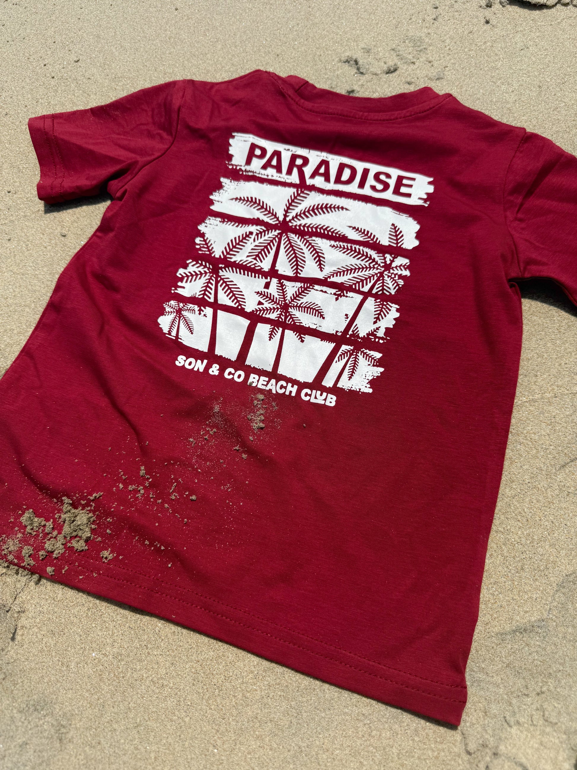 Introducing the latest addition to your child's wardrobe! This maroon t-shirt is an ideal choice for a day at the beach. Crafted from soft, durable fabric, this tee ensures your little one stays comfortable while playing in the sand, building castles, or simply soaking up the sun. The vibrant design and beachy theme make it a fun and stylish piece that your child will love to wear again and again, providing the perfect blend of comfort and seaside flair.
