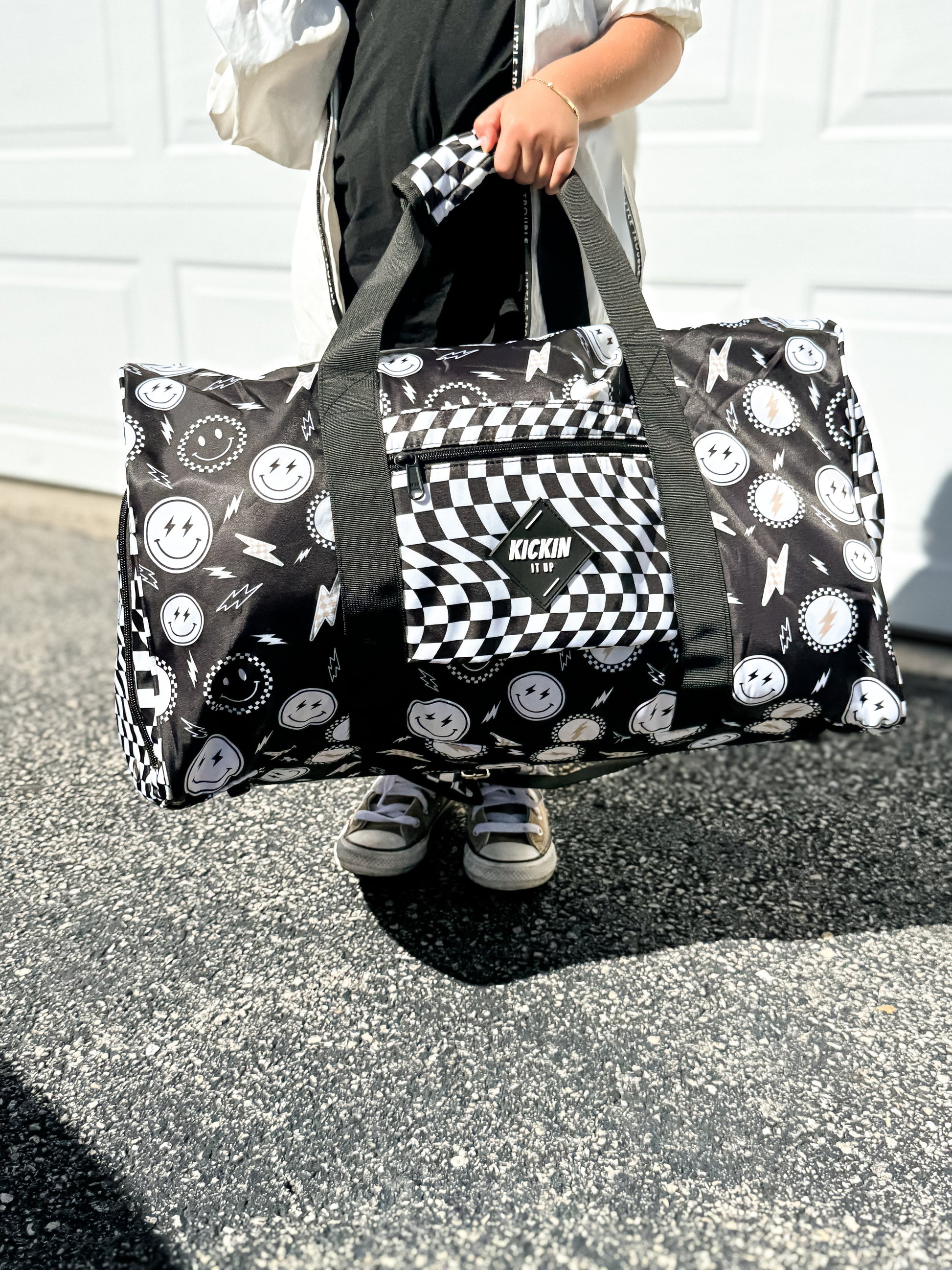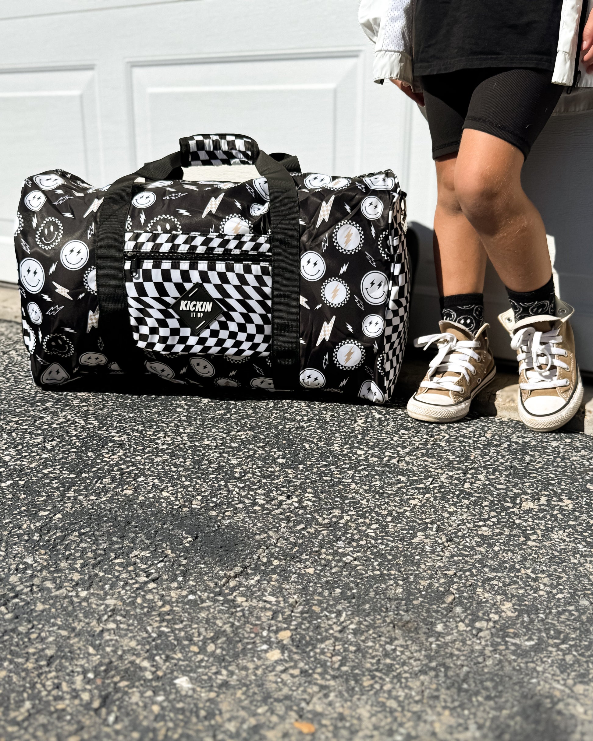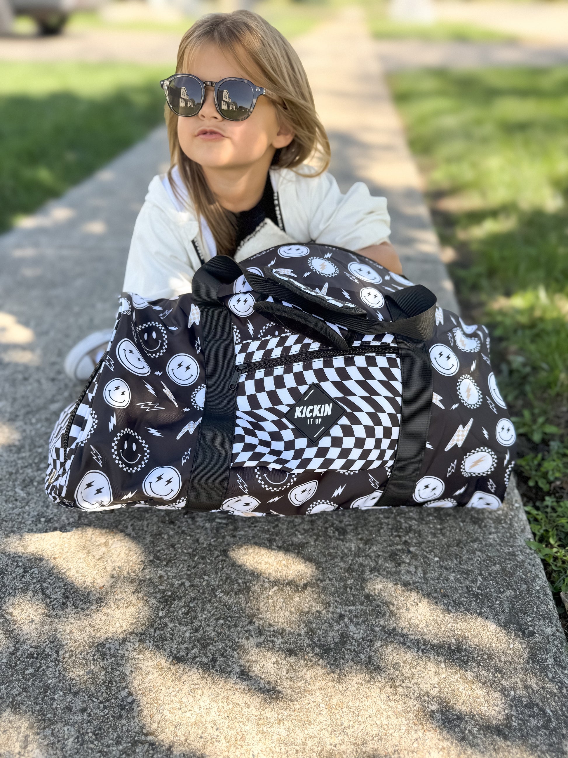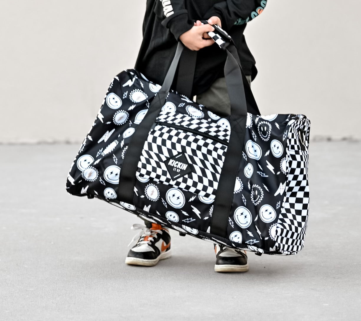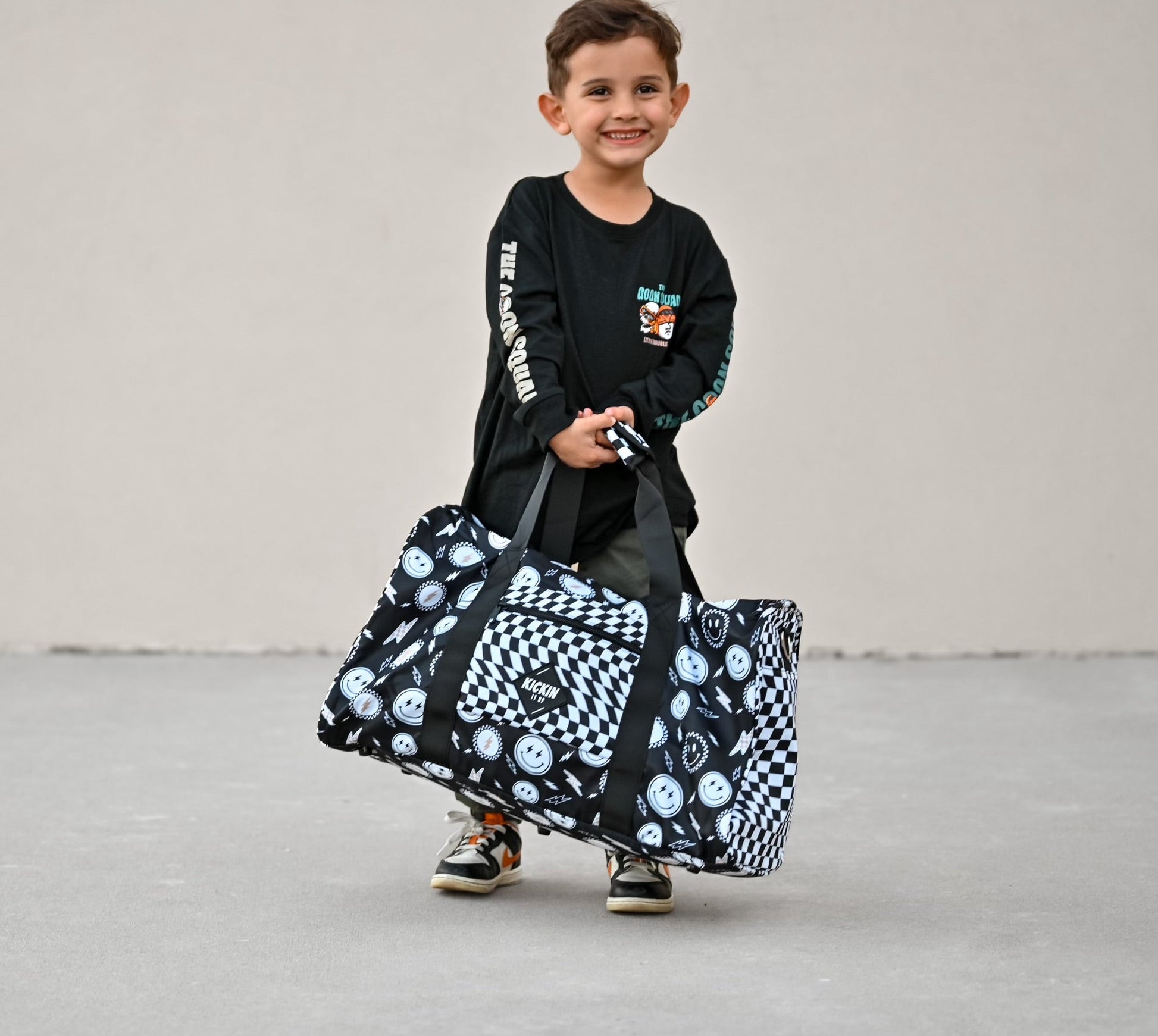 Hello weekend-er the perfect size bag for a weekend getaway, a carry on for longer trips, sports bag for all your kids activities, diaper bag for the stylish mama, toy storage for all those trinkets and so much more! Water resistant material with a padded cushion strap that is adjustable for all ages and sizes! Dedicated shoe pocket to protect clothes. Trolley sleeve to attach to your luggage so your are hands free!