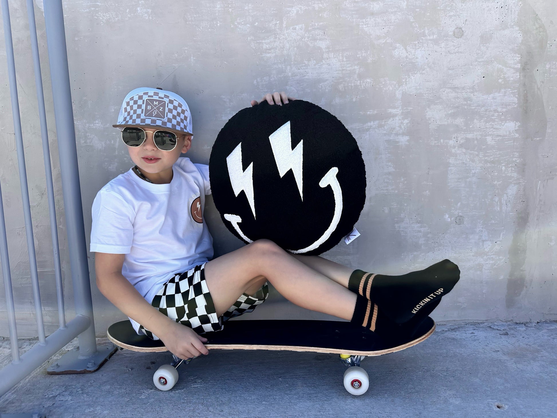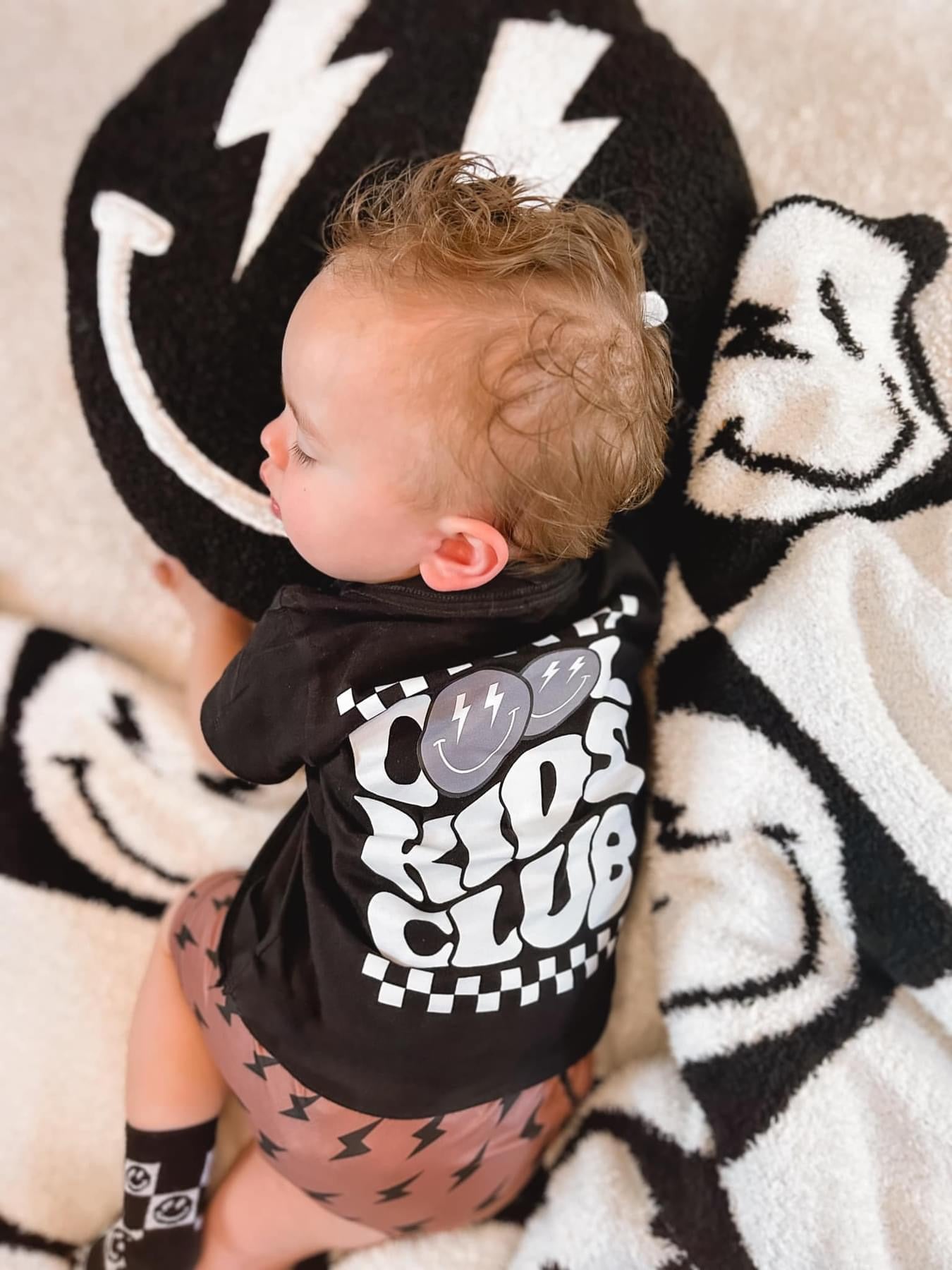 Calling all the cool kids to our cool smiley plush pillow! The perfect cuddle pillow for car rides or daycare. Stay hip, stay rad + stay cool even when sleeping.