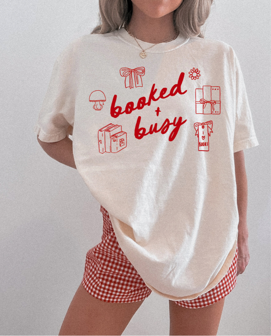 The Booked + Busy Tee is perfect for the girl who prefers cozy nights with a good book over a night out. Soft and comfy, it celebrates your love for staying in and diving into your favorite stories. Wear it proudly and let everyone know your plans are booked—and totally busy!