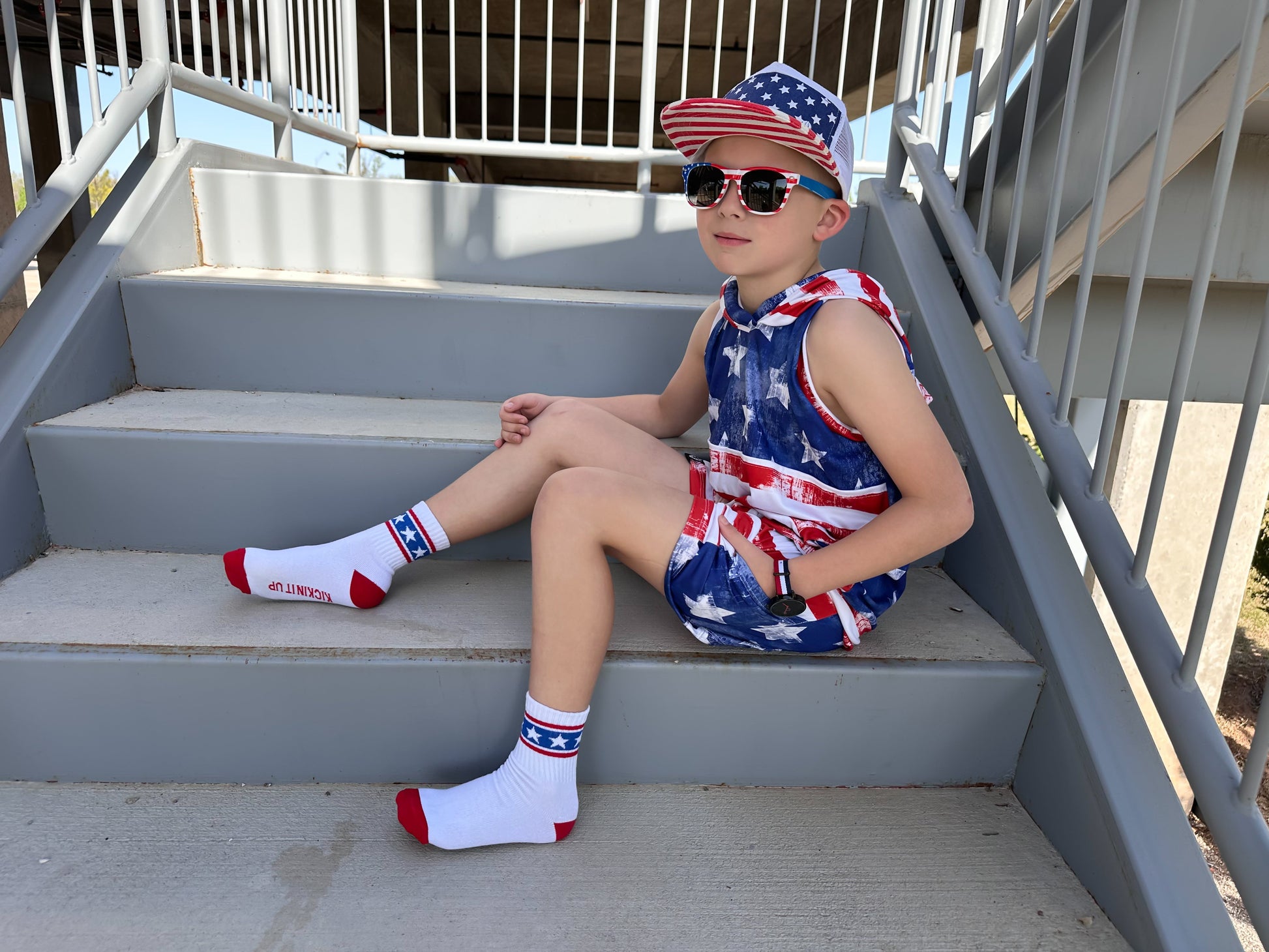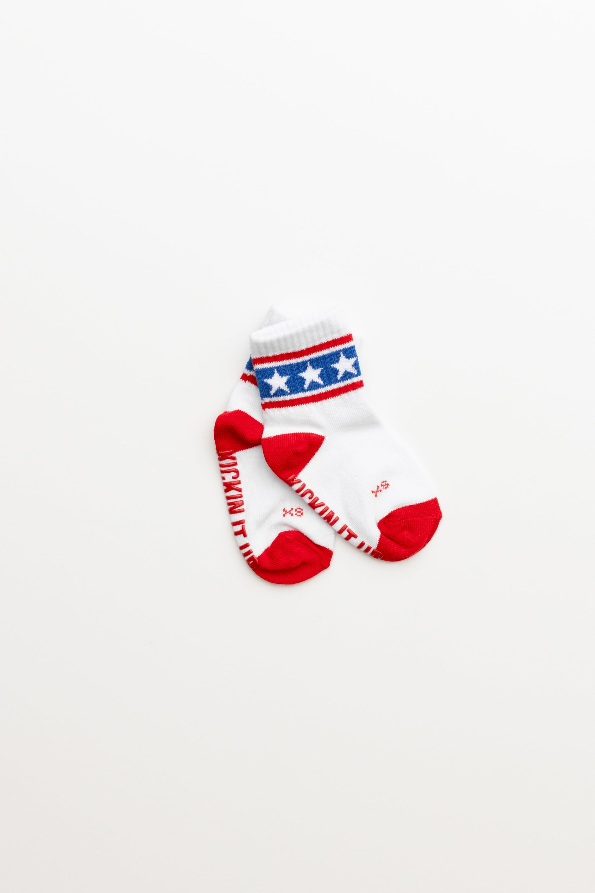 Sizes Infant, Extra Small, Small, Medium have logo grips on the bottom of the feet large have a stitched logo on the bottom of the feet.