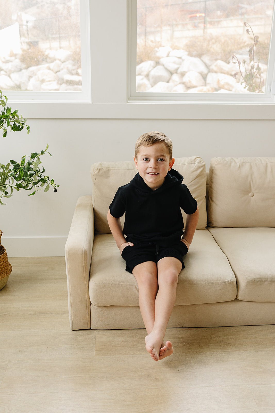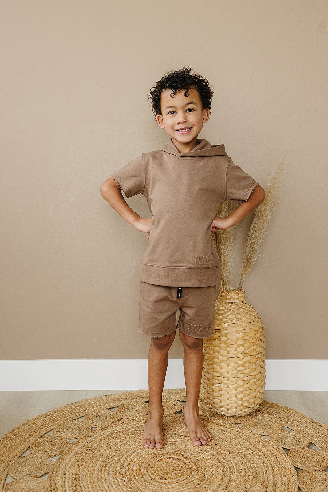 Introducing the Bridger Hoodie, the perfect light weight hoodie for spring weather. Adorable short sleeves with a raw hem and embossed Olive + Scout design make this hoodie both stylish and practical. Keep your little one comfortable and fashionable - without sacrificing any of that cute factor!