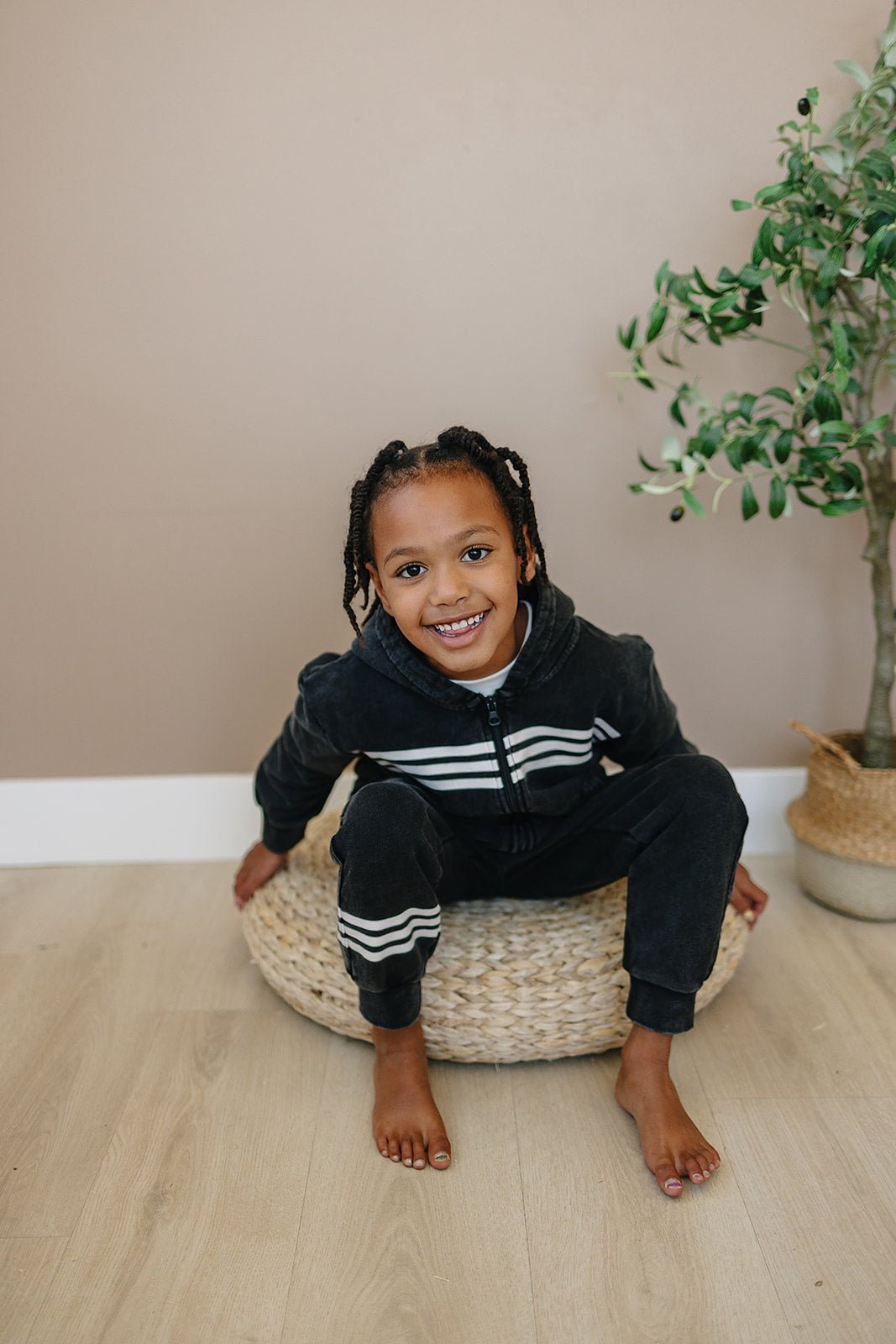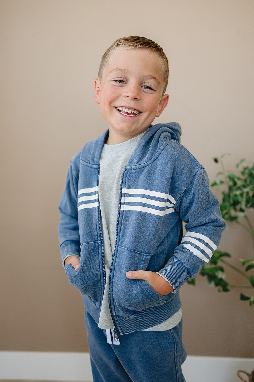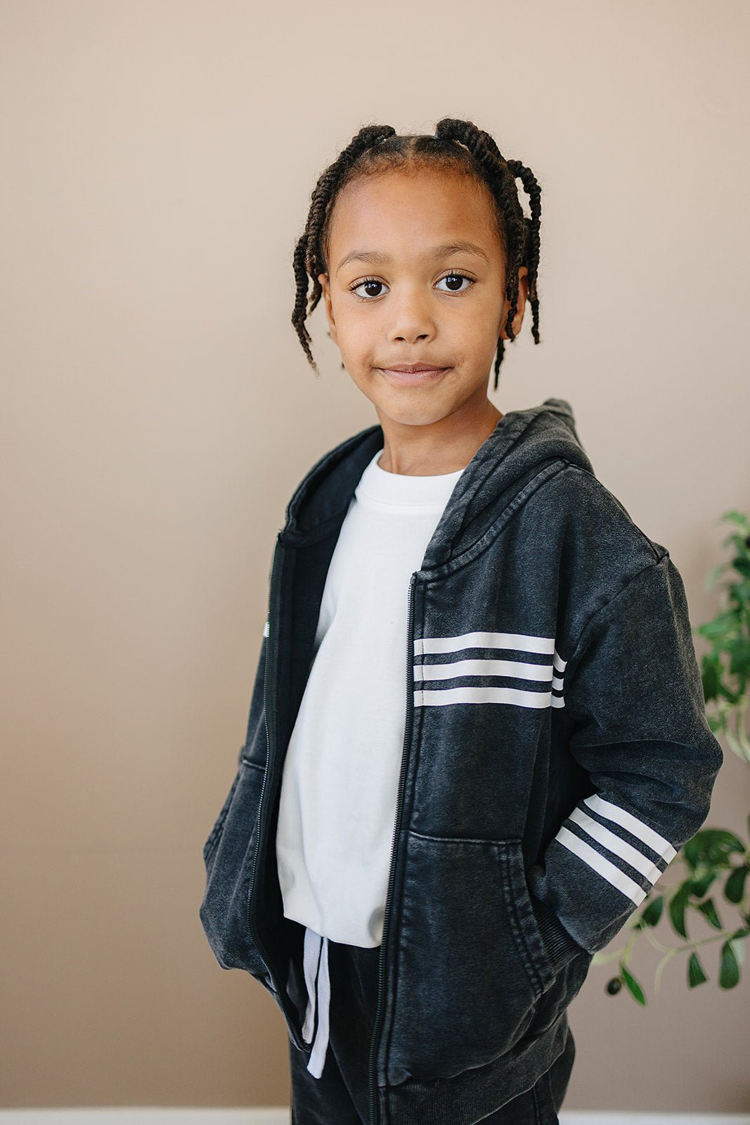 The Brixton Jogger Set brings playful style and comfort to your little one’s wardrobe. Made from soft, durable acid wash fabric, it features eye-catching printed stripes on the chest and legs for a unique look that’s sure to turn heads at any play date. Perfect for running, jumping, and relaxing, this set keeps your kiddo comfy and ready for fun all day long.