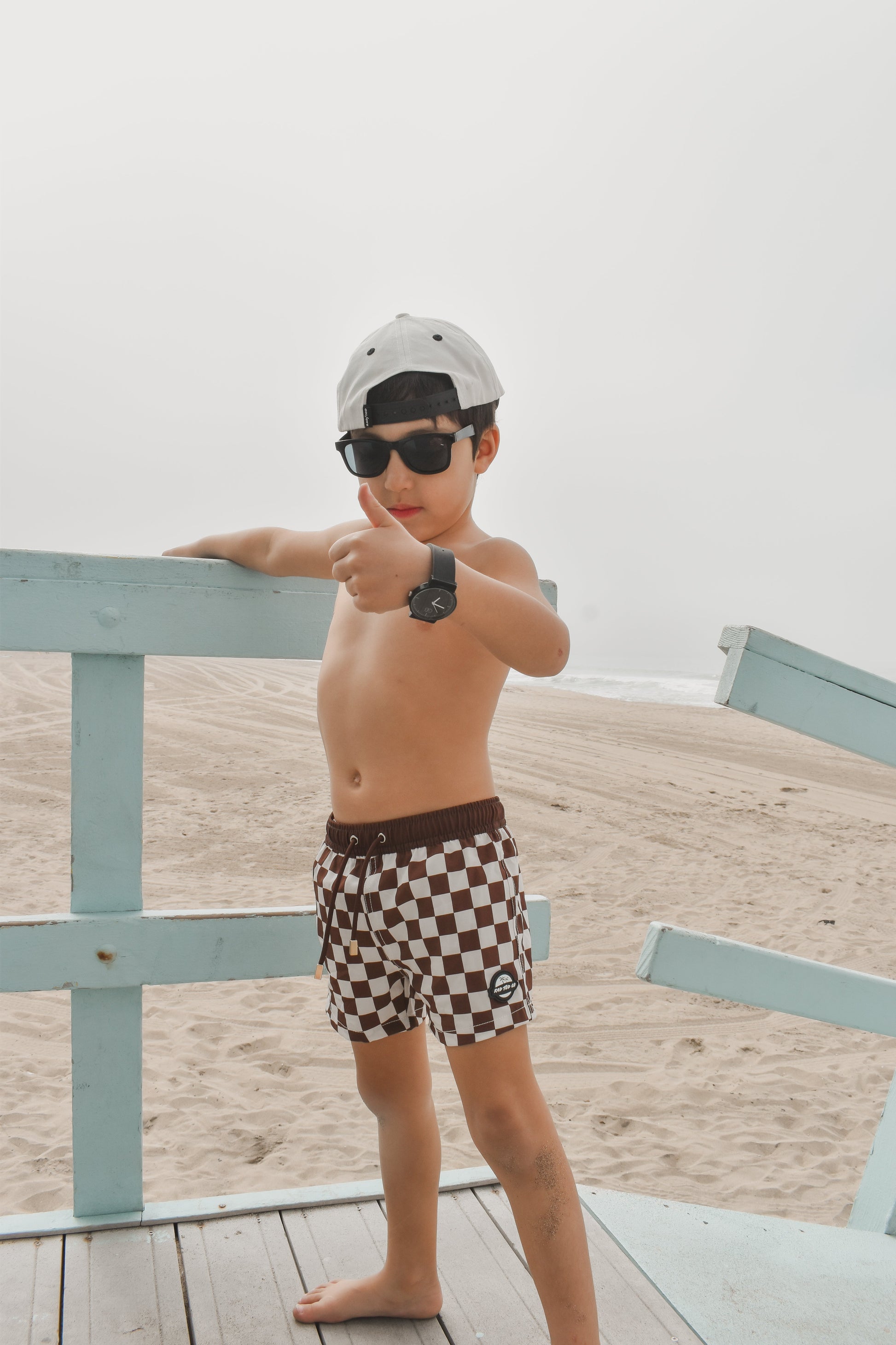 BRONZE CHECKERS TODDLER SWIM TRUNKS
