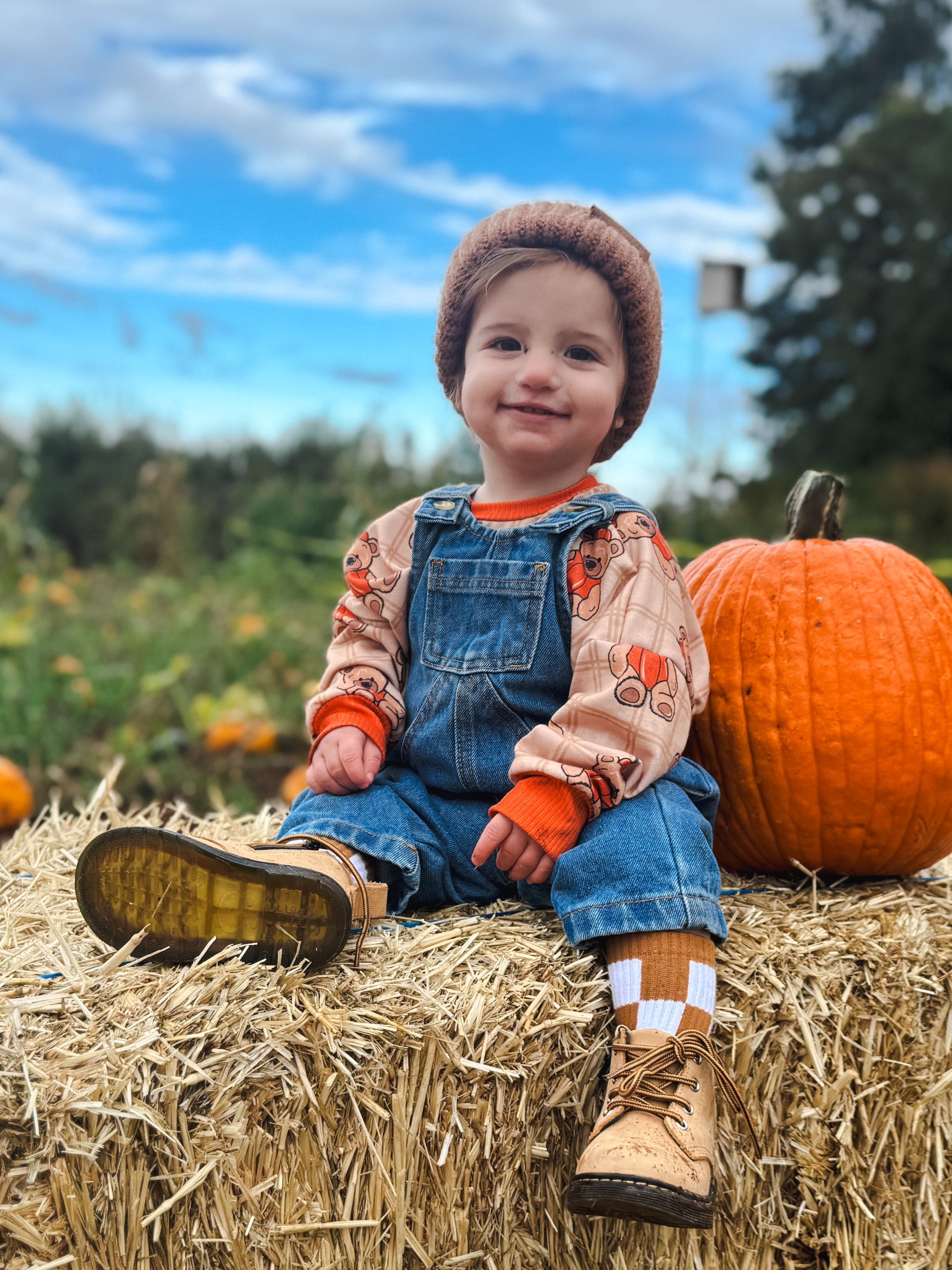 Sizes Infant, Extra Small, Small, Medium have logo grips on the bottom of the feet large have a stitched logo on the bottom of the feet.