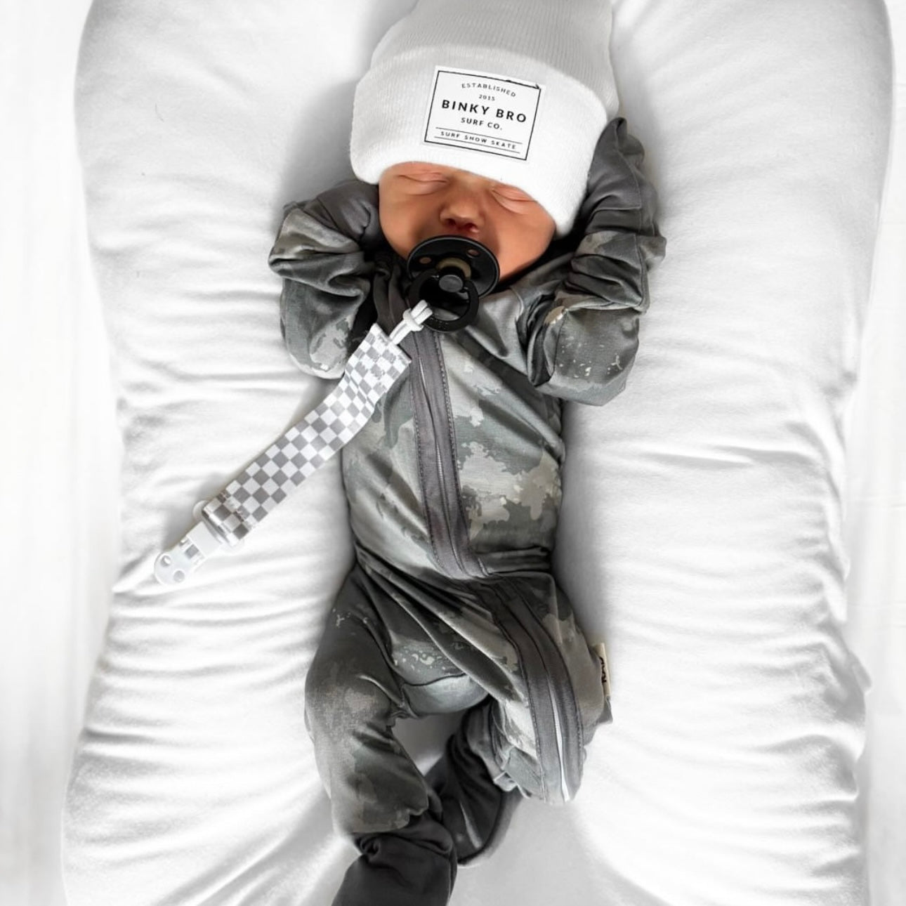 Our same cozy jammies in our custom Camo design. Designed for better sleep and cozy snuggles, our Zipper Jammie is a one piece zipper pajama made from the softest bamboo & 5% spandex for amazing stretch and room to grow. We've added key touches to our zipper pajamas like fold-over feet & mittens, a 2-way zipper, and made them tagless inside so they won’t irritate your baby or toddler’s skin.