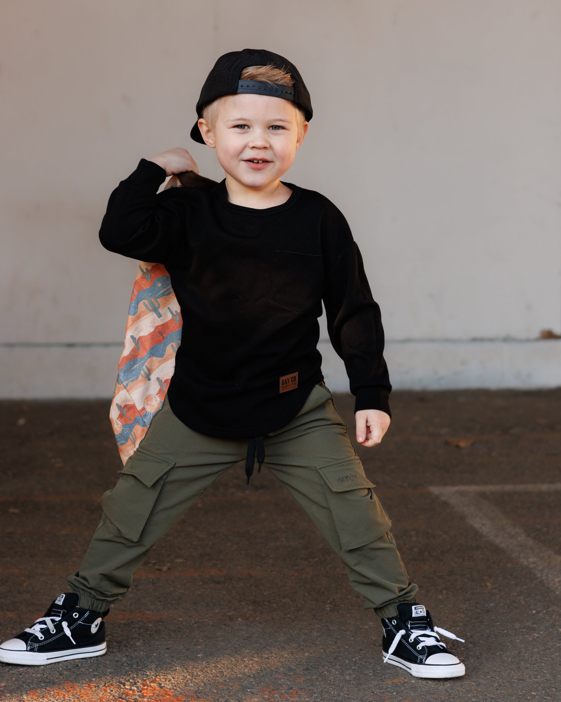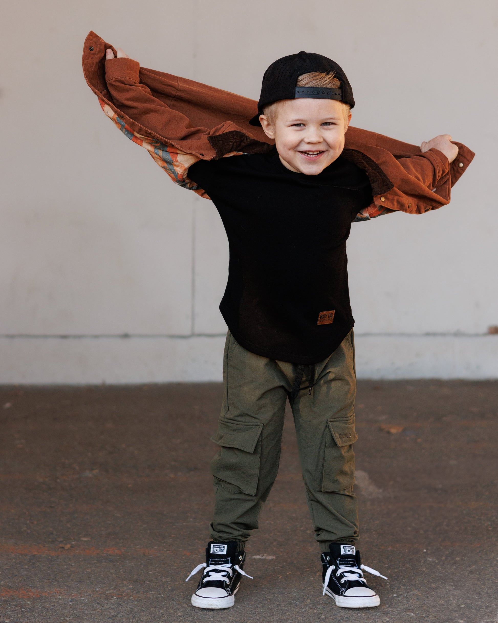 Introducing our ACTIVE fabric, improved quality Cross-Stretch Chino pants. We are confident in our Generation 3 CSC Joggers. They are the perfect fit with a slimmer, but still roomy fit. These staples are church, play, dinner, and wild child approved! These run very true-to-size, but we recommend sizing up if in between sizes or your child is on the taller side.