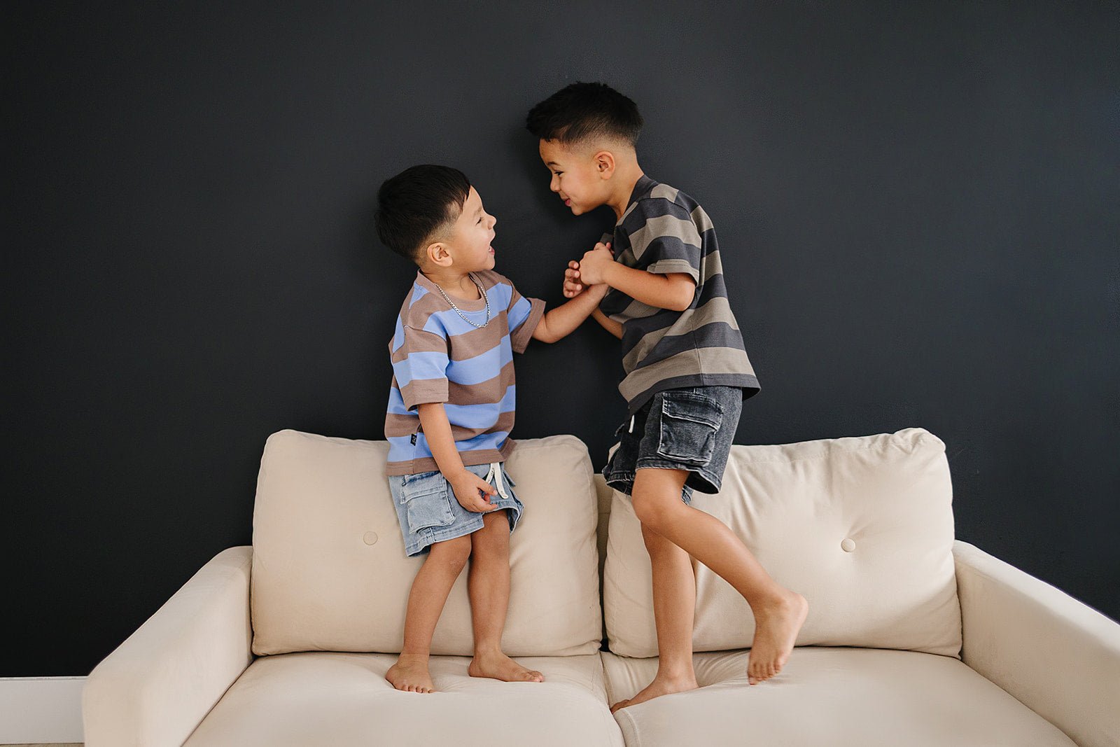 Meet the Carson Shorts—your little explorer's new favorite pair! Crafted from soft, stretchy denim that moves with them through every adventure, these shorts keep up with active kids. Practical cargo pockets provide the perfect spot for snacks, treasures, and whatever else they want to carry along. The elastic waistband and drawstring ensure a comfortable, secure fit that stays put during playtime. Simple, durable, and ready for anything.