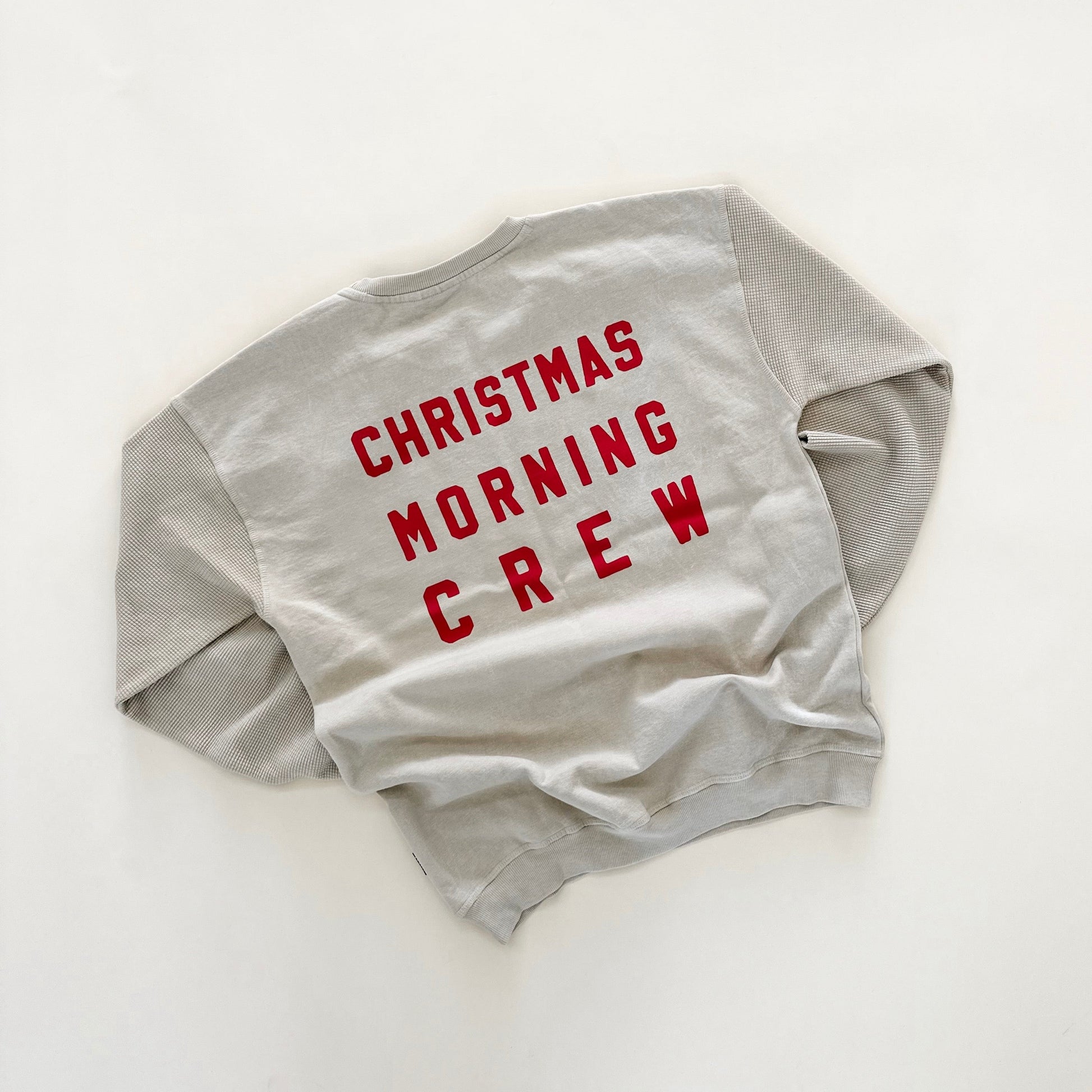 Christmas Morning Crew Waffle Sleeve Crewneck - Acid Wash Oat