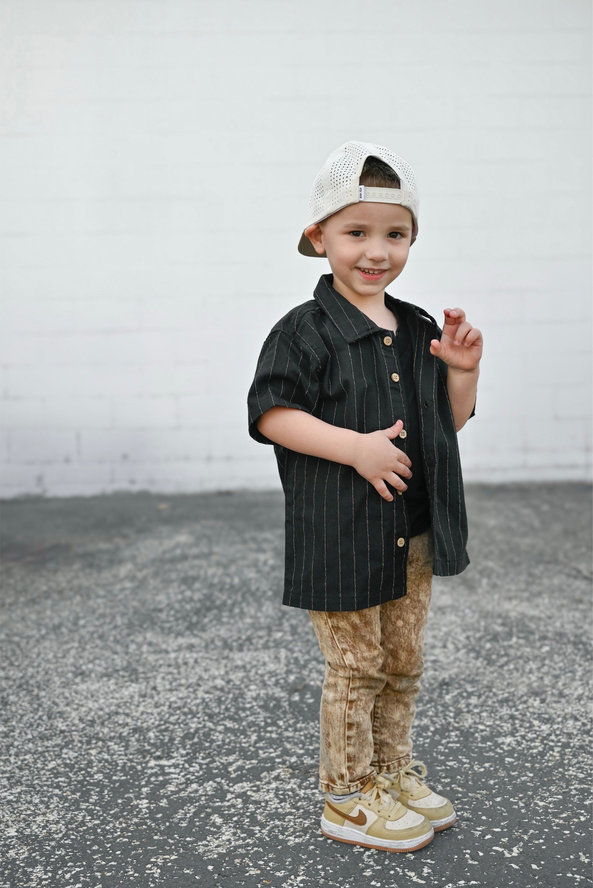 Your toddler's wardrobe just got a major upgrade! Made from a breathable cotton-linen blend, this lightweight button-up is perfect for beach days, boardwalk strolls, and sunset dinners. With it's effortlessly cool pinstripes and laid-back vibe, it's the ultimate go to for looking sharp while staying comfy.
