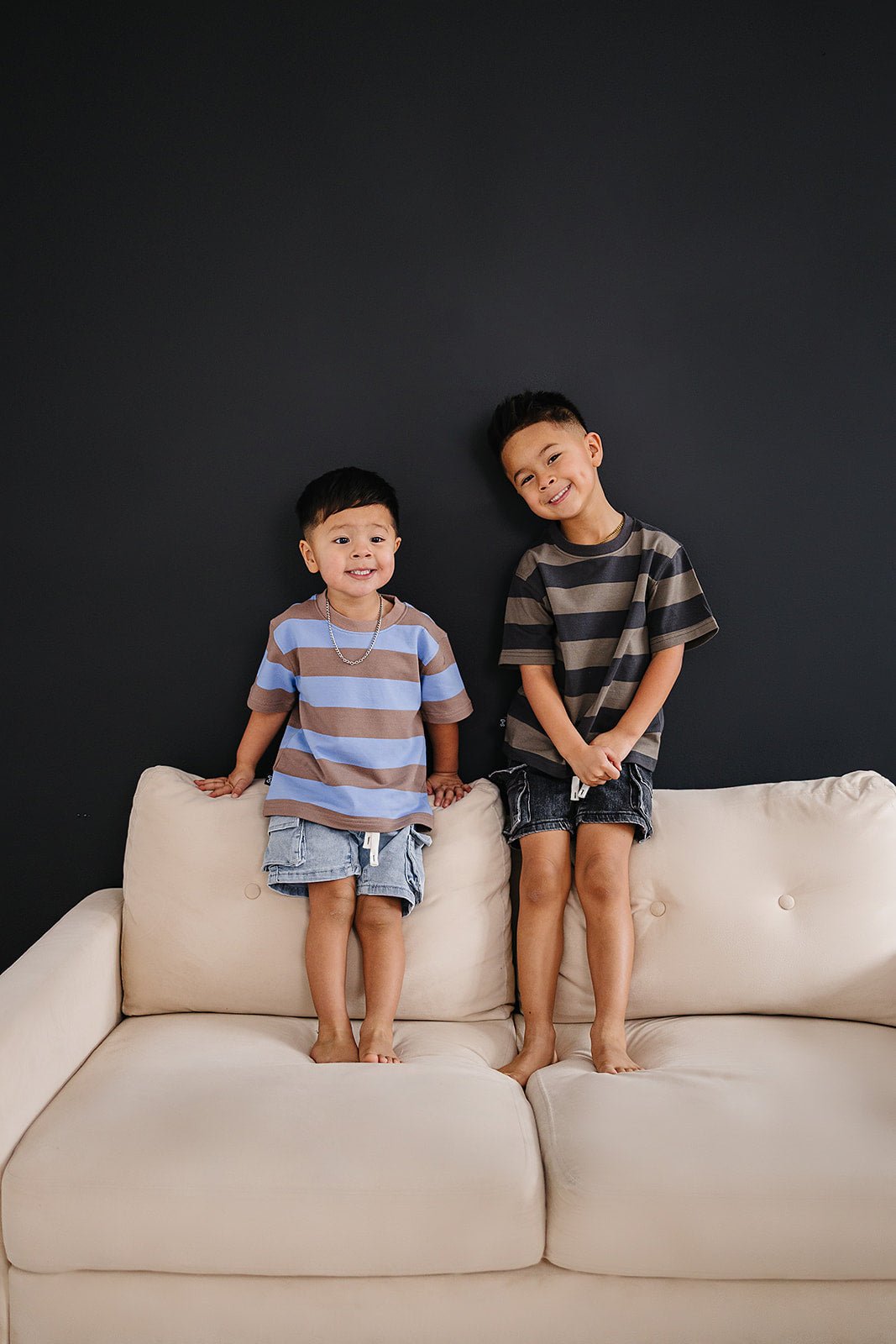The Cruz Tee is the go-to piece every kid's wardrobe needs. Featuring bold, thick contrasting stripes and a relaxed boxy fit, it's as comfy as it is stylish. Throw it on with anything and watch your little one feel confident and cozy all day long. Perfect for playtime or everyday adventures.