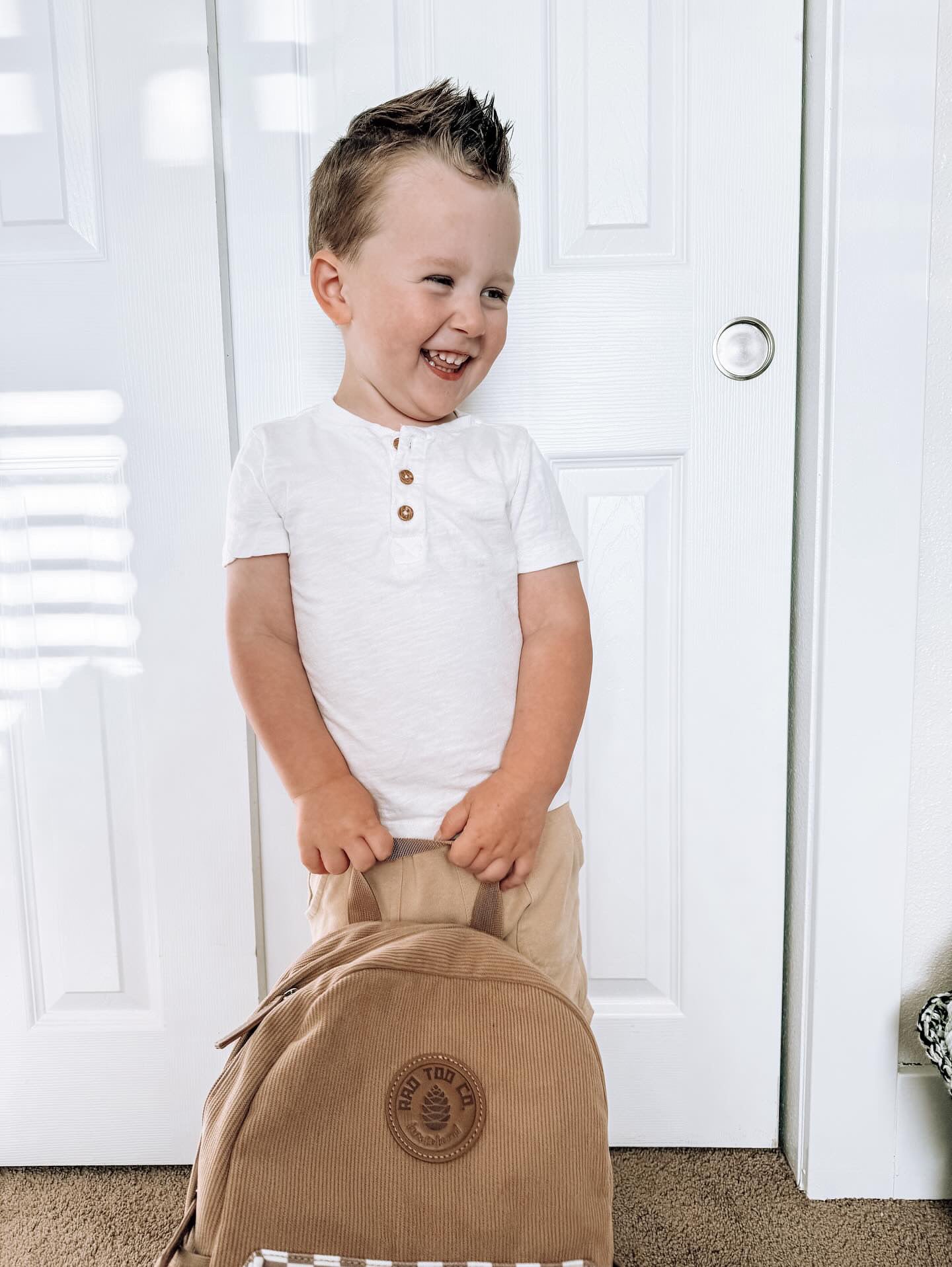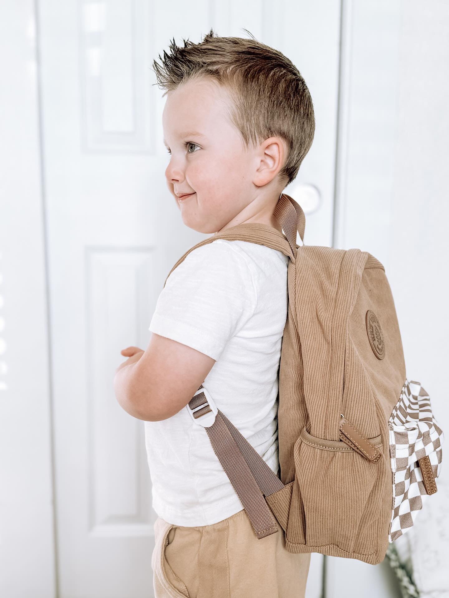 Introducing our Dune Toddler Backpack, a combination of corduroy and vegan leather accents, for the ultimate look. Compact yet spacious enough to fit a standard-sized notebook, books, toys, pencils, snacks and more, it's designed for your little one’s everyday adventures. Made from soft, durable corduroy, this backpack also features a hidden AirTag pocket for added peace of mind. Whether for daycare, playdates, or outings, this stylish, functional bag offers everything your child needs while keeping them looking rad and organized.