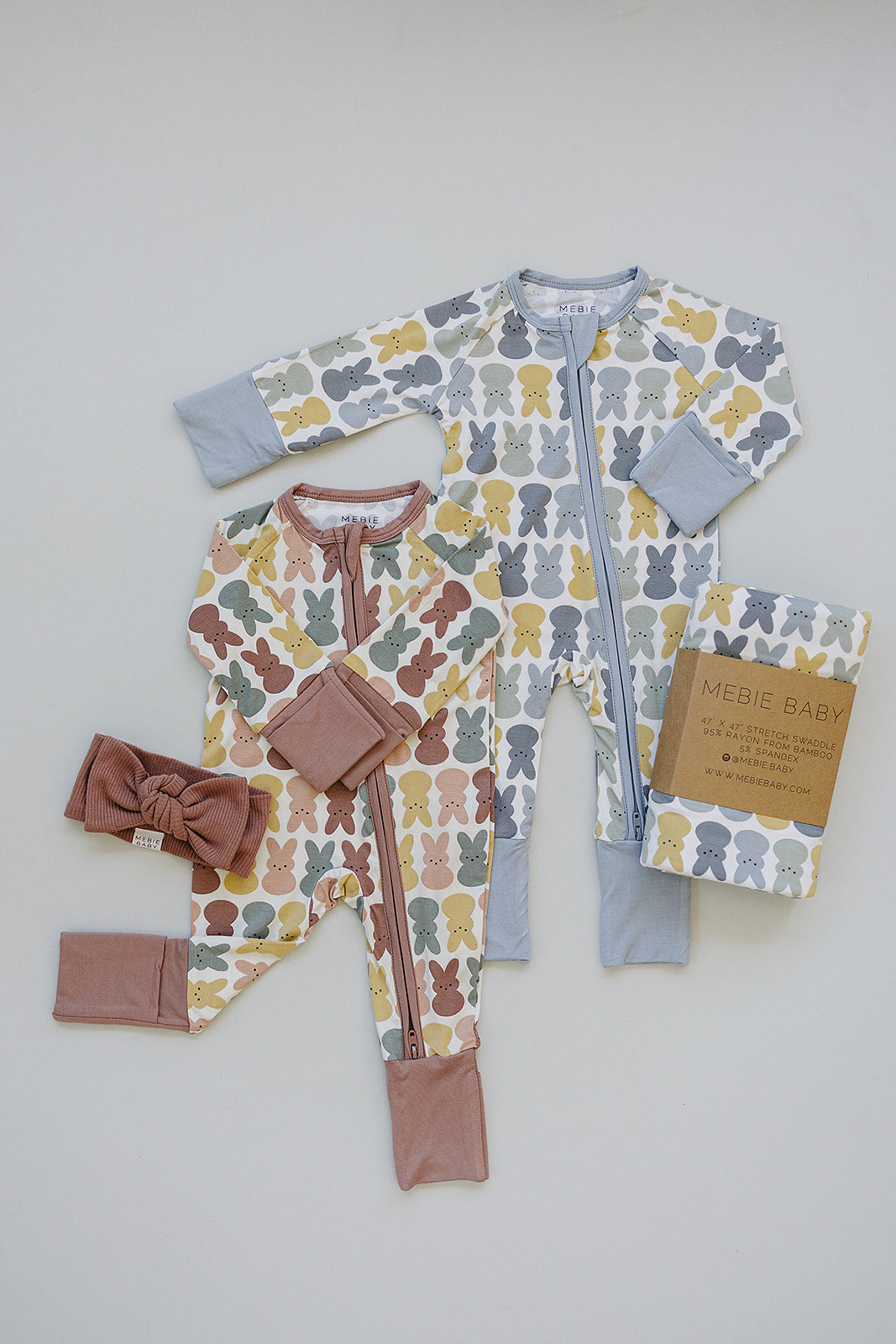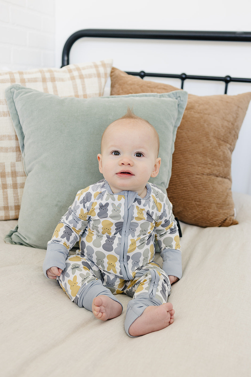 Jump into spring with the charm of our Dusty Blue Bunny Bamboo Zipper, perfect for cozy days and nights. Made from soft and breathable bamboo fabric, this zipper sleeper ensures comfort for your baby in sizes ranging from 0-3 to 18 months. The classic bunny design adds a playful spring touch, making it ideal for Easter!