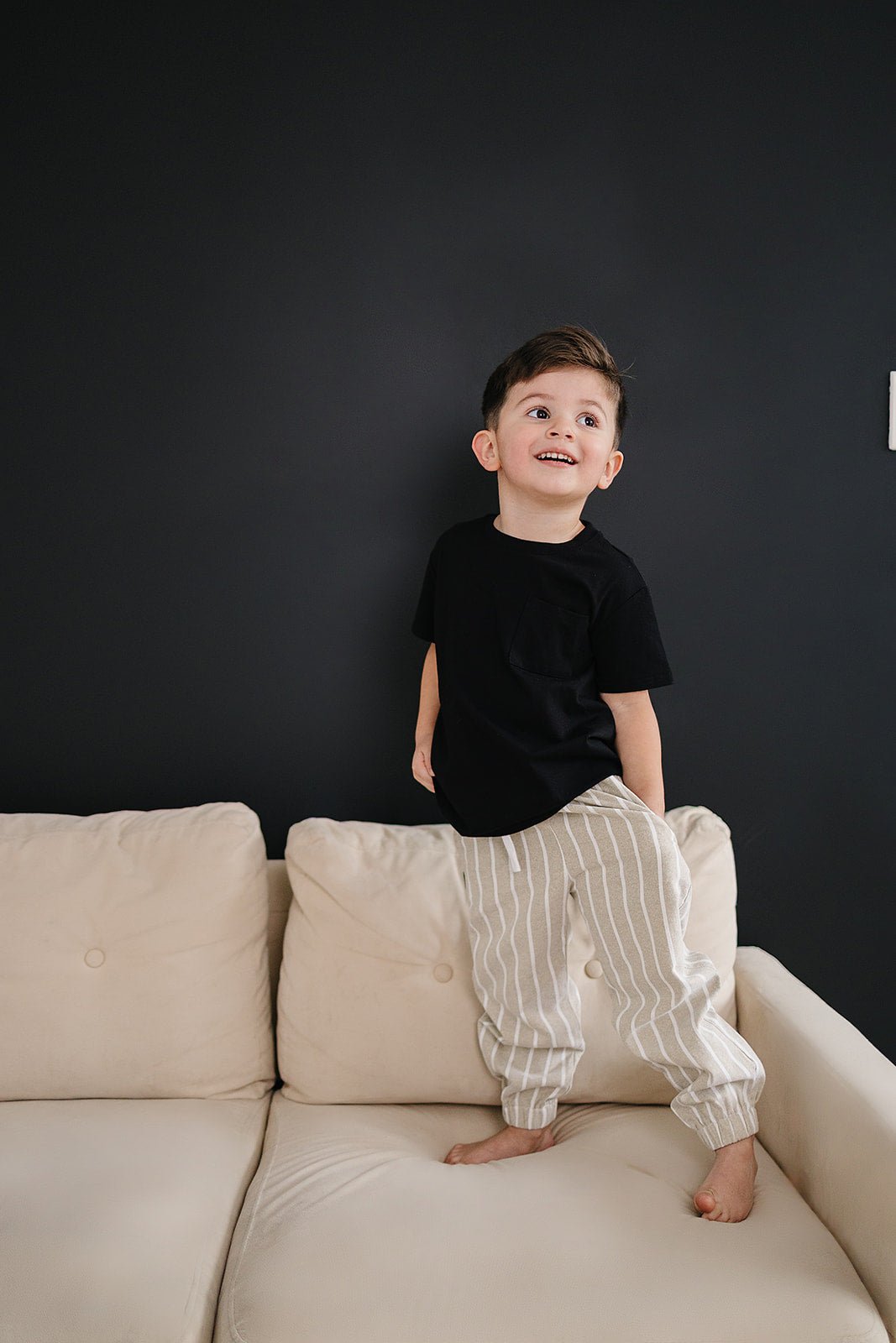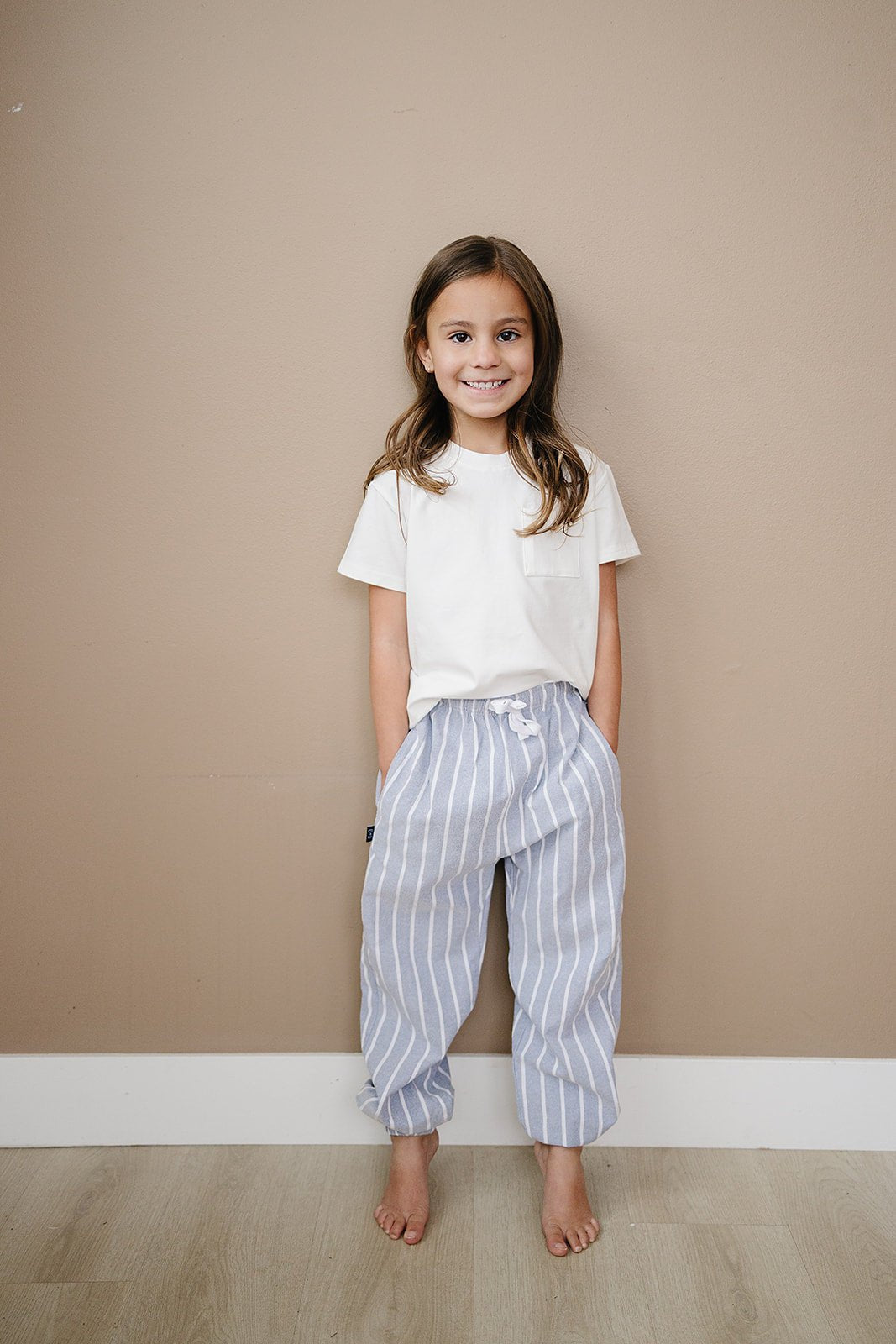 Lightweight and breathable, these cotton joggers keep your little one comfortable from sunrise to sunset. The relaxed, baggy silhouette features cozy ankle cuffs and charming vertical stripes that add personality to any outfit. Perfect for beach days, park adventures, or lazy afternoons at home—this is the go-to summer pant that kids actually want to wear.