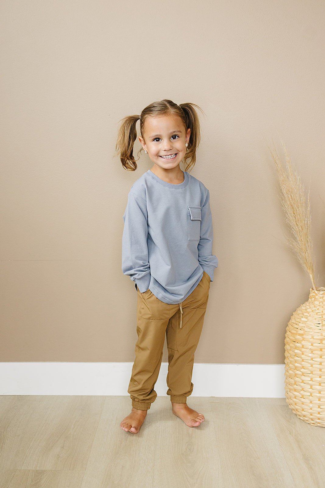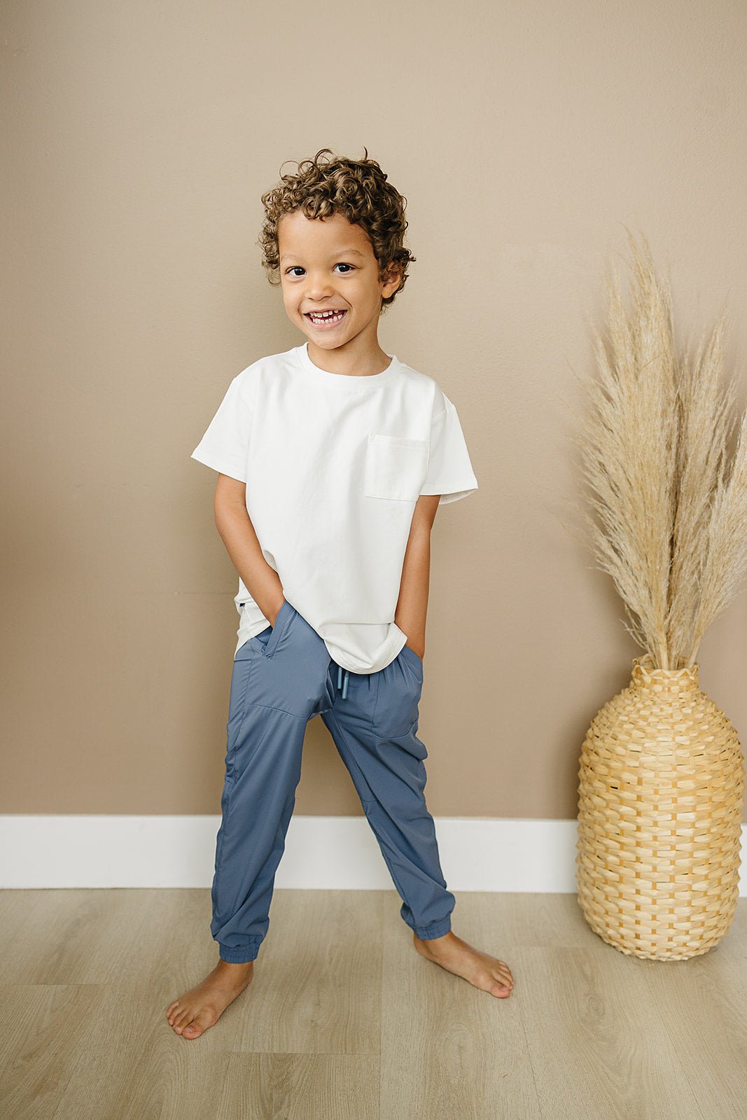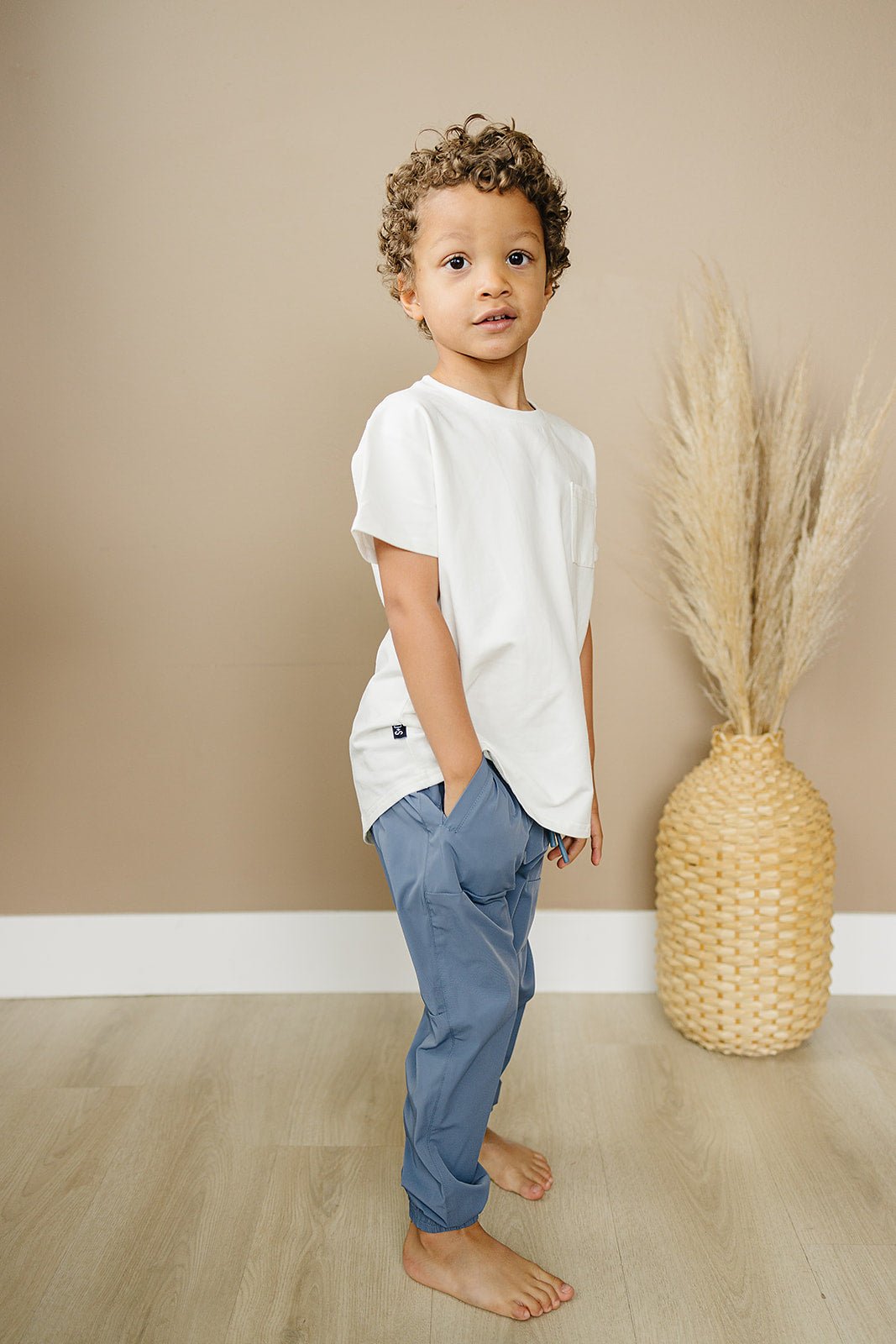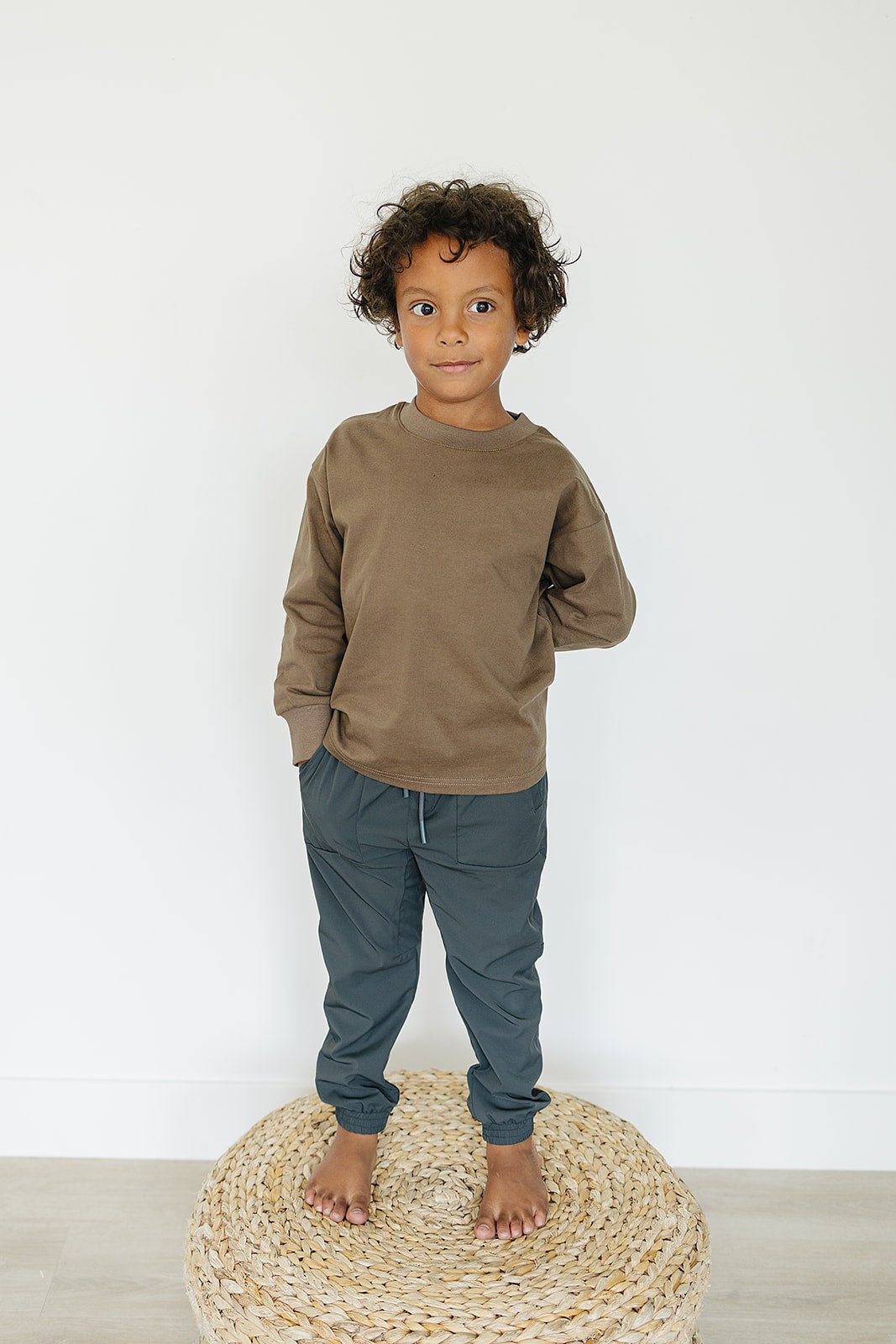 The Eden Joggers are here to make your little ones' days comfier and swishier! These trackpants, warm-ups, swishy pants, or whatever you want to call them are not only light and airy, they also feature a relaxed fit and drawstrings with color matched rubber tips. (Now that's something to get excited about!)