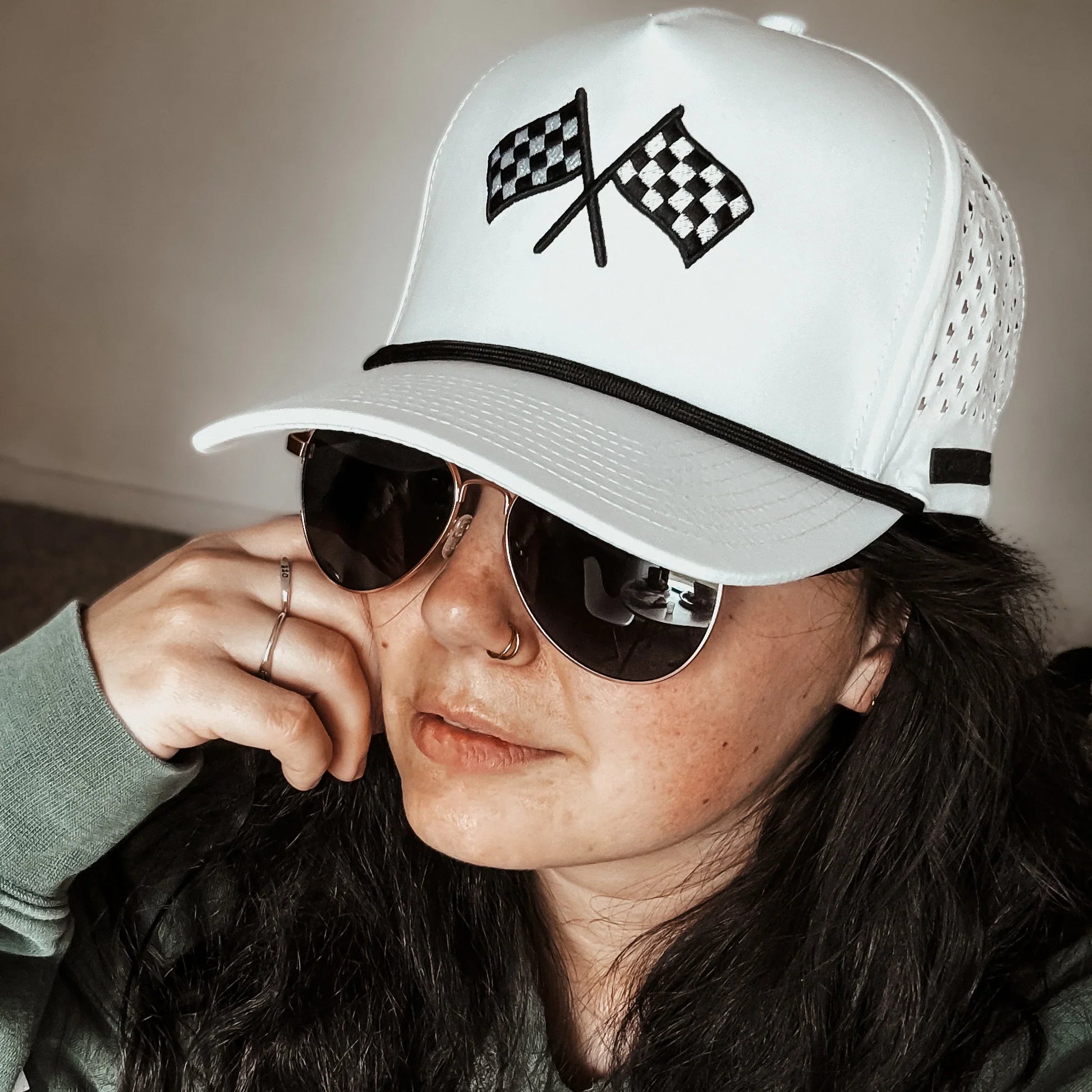 FINISH LINE WHITE ADVENTURE SNAPBACK // WATER-RESISTANT