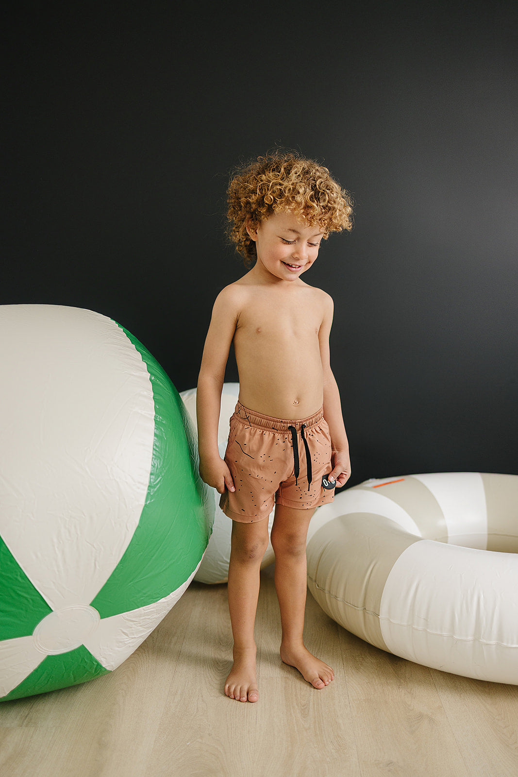 Glide through summer in style with our Finn Boardshorts. The eye-catching splatter graphic, rubber O+S patch, and contrasting back pocket make these perfect for a hot day. With an elastic waistband and functional drawstring, and inner liner for added protection, your little one will be comfortable and cool all day long!