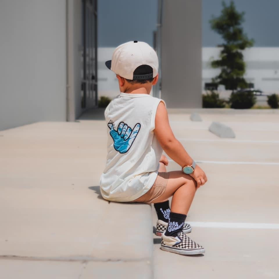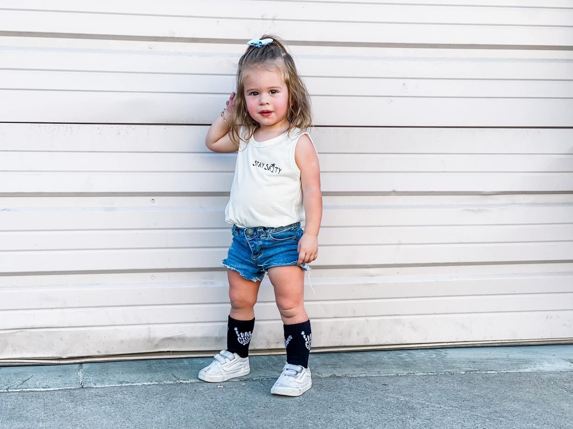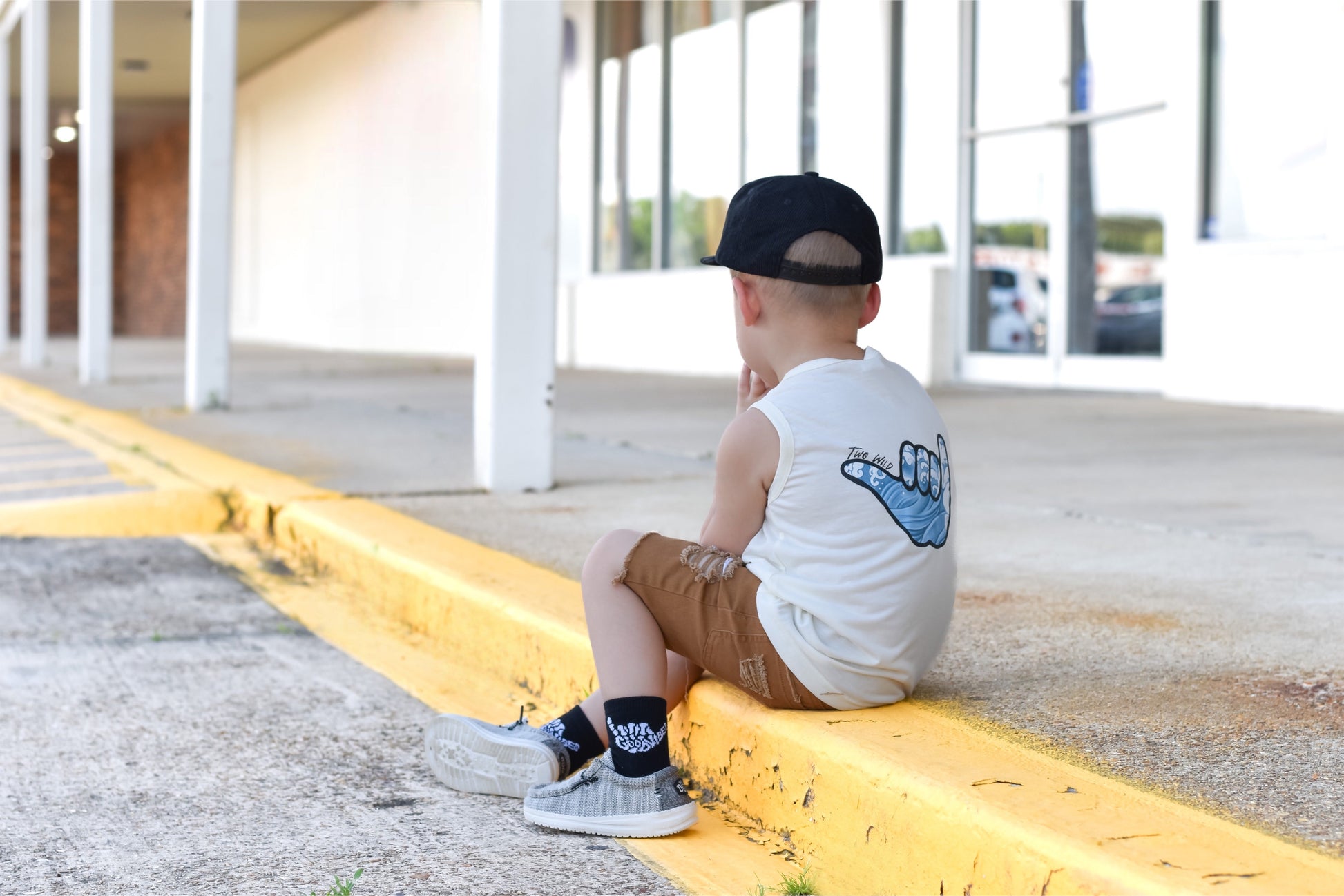 Sizes Infant/XXS, Extra Small, Small + Medium have logo grips on the bottom of the feet and size Large has a stitched logo on the bottom of the feet.