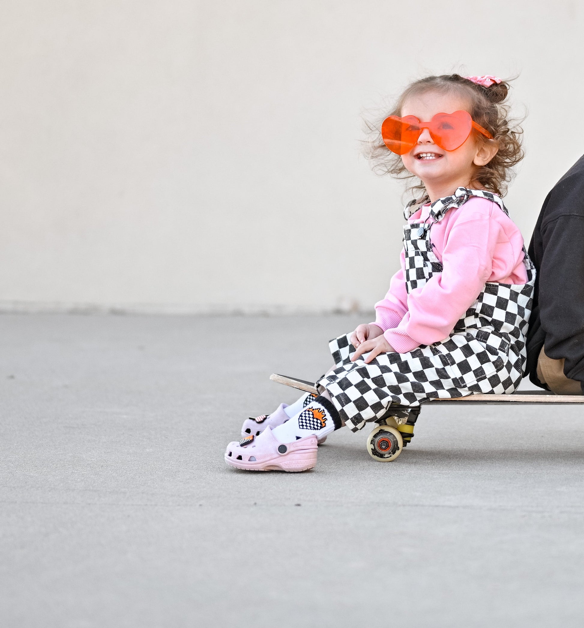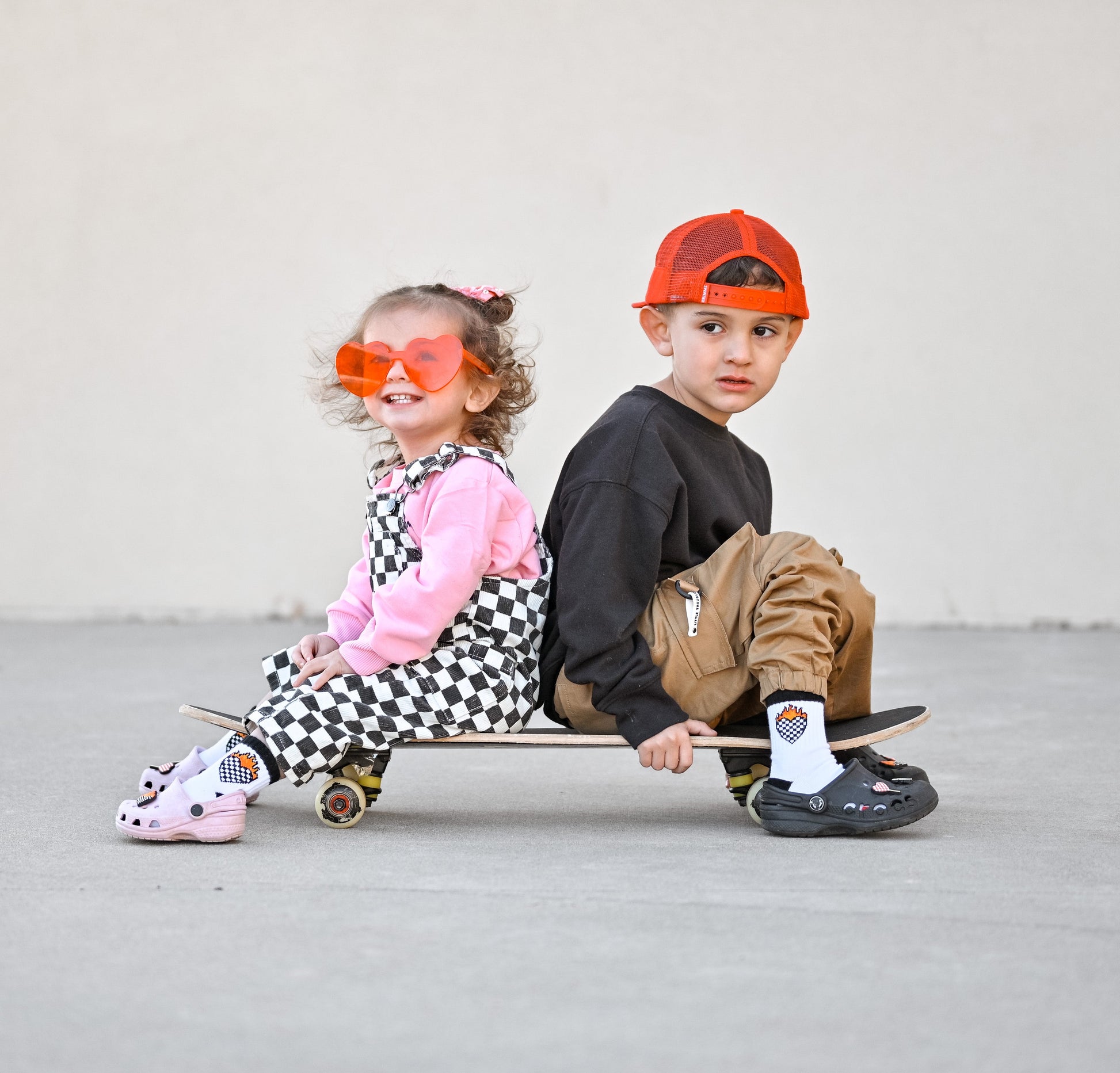 Sizes Extra Small + Small have "Heartbreaker" grips on the bottom of the feet and Medium + large have a "Heartbreaker" logo on the bottom of the feet.