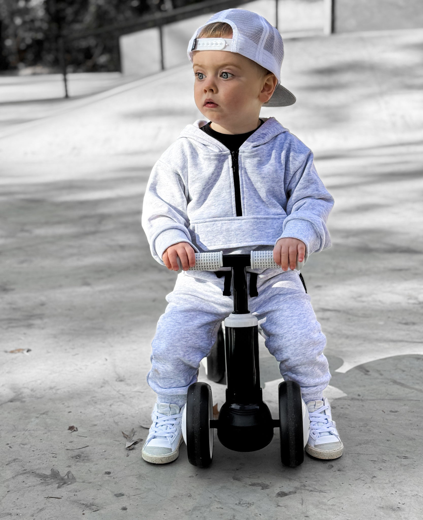 This heather gray half zip hoodie is your new go-to for laid-back comfort, featuring a bold bolt-shaped zipper pull that adds a spark of personality. Perfect for layering or flying solo, it's the kind of piece that makes you smile every time you reach for it.