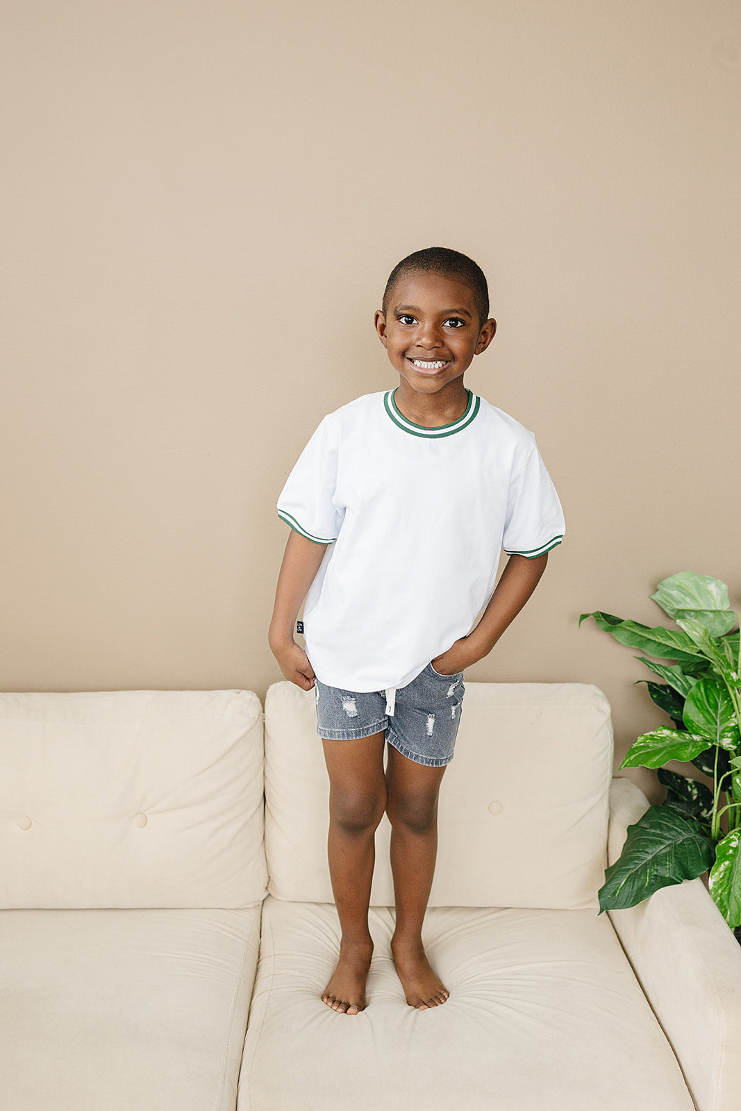 Get your little one looking effortlessly stylish and comfortable with our Hunter Tee! Featuring a banded collar and sleeves for a sophisticated touch, this tee is made with soft fabric for all-day comfort. Perfectly paired with shorts or pants, it's the ultimate addition to their wardrobe!