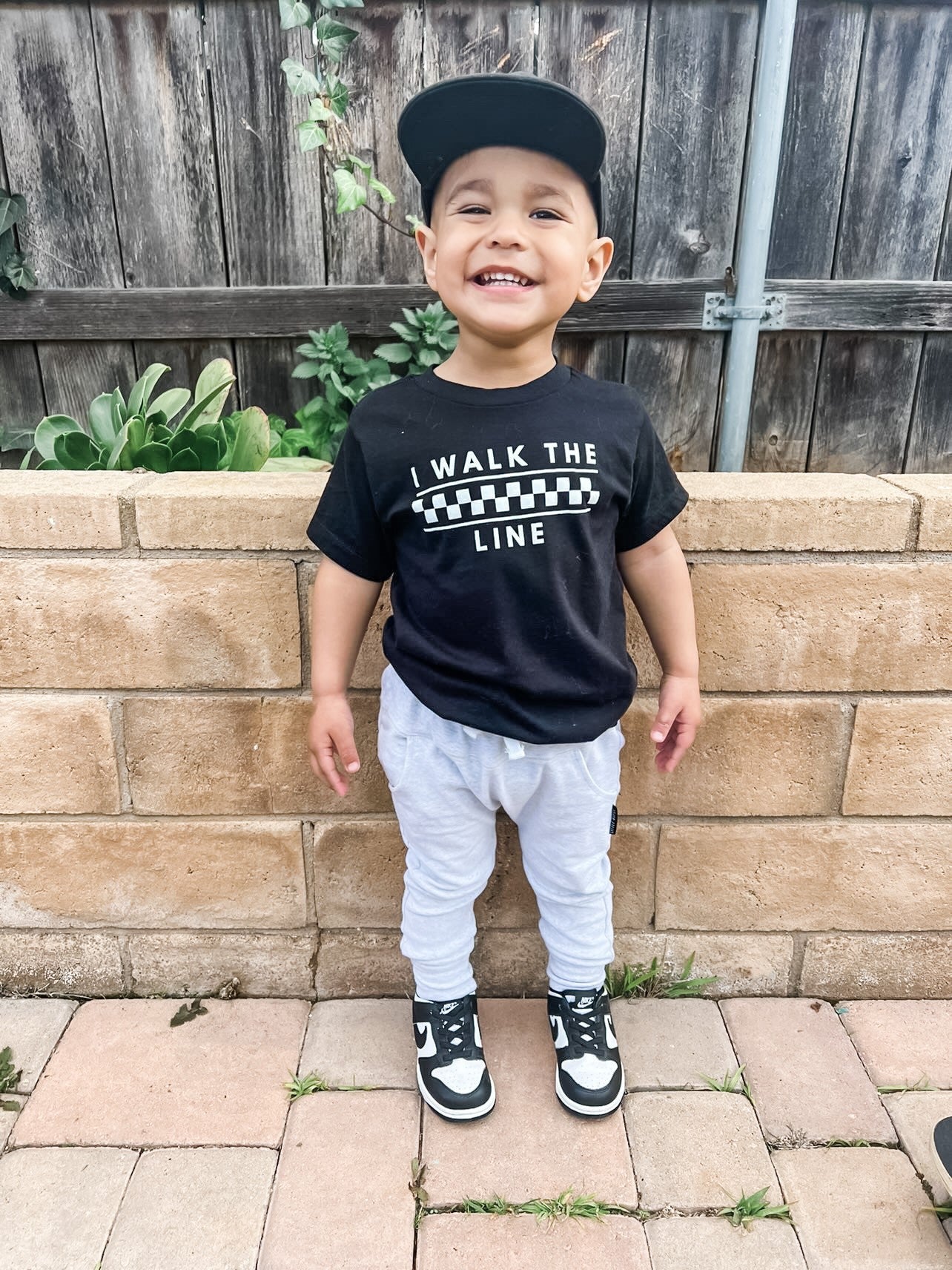 Create an effortlessly cool look with our new Walk the Line tee! From the playground to preschool your little one will be sure to stand out.