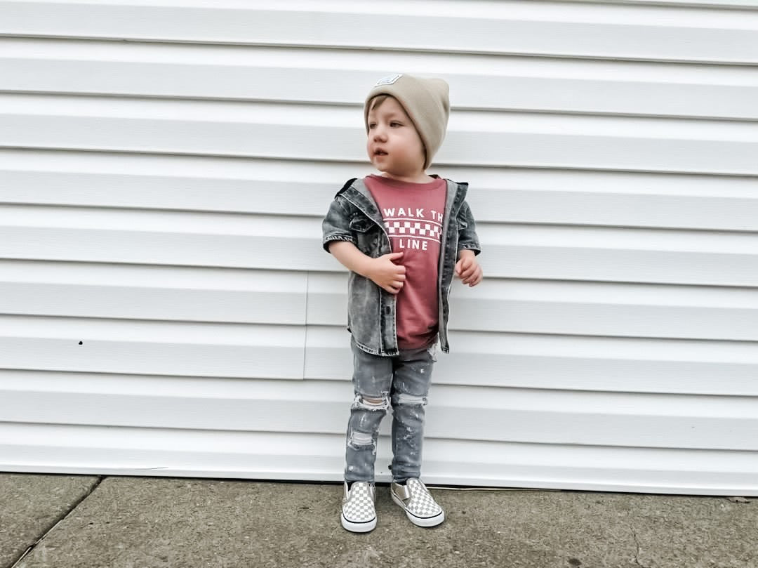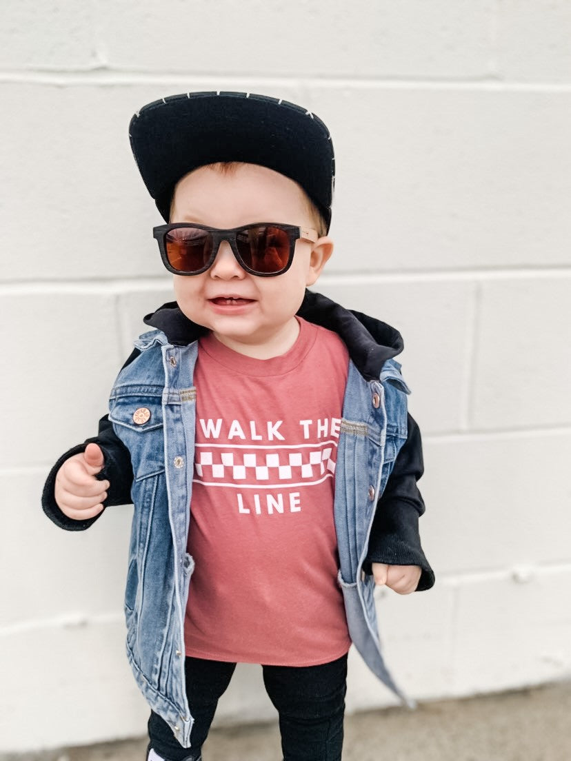 Create an effortlessly cool look with our new Walk the Line tee! From the playground to preschool your little one will be sure to stand out. This gender neutral pink is a great spring color!