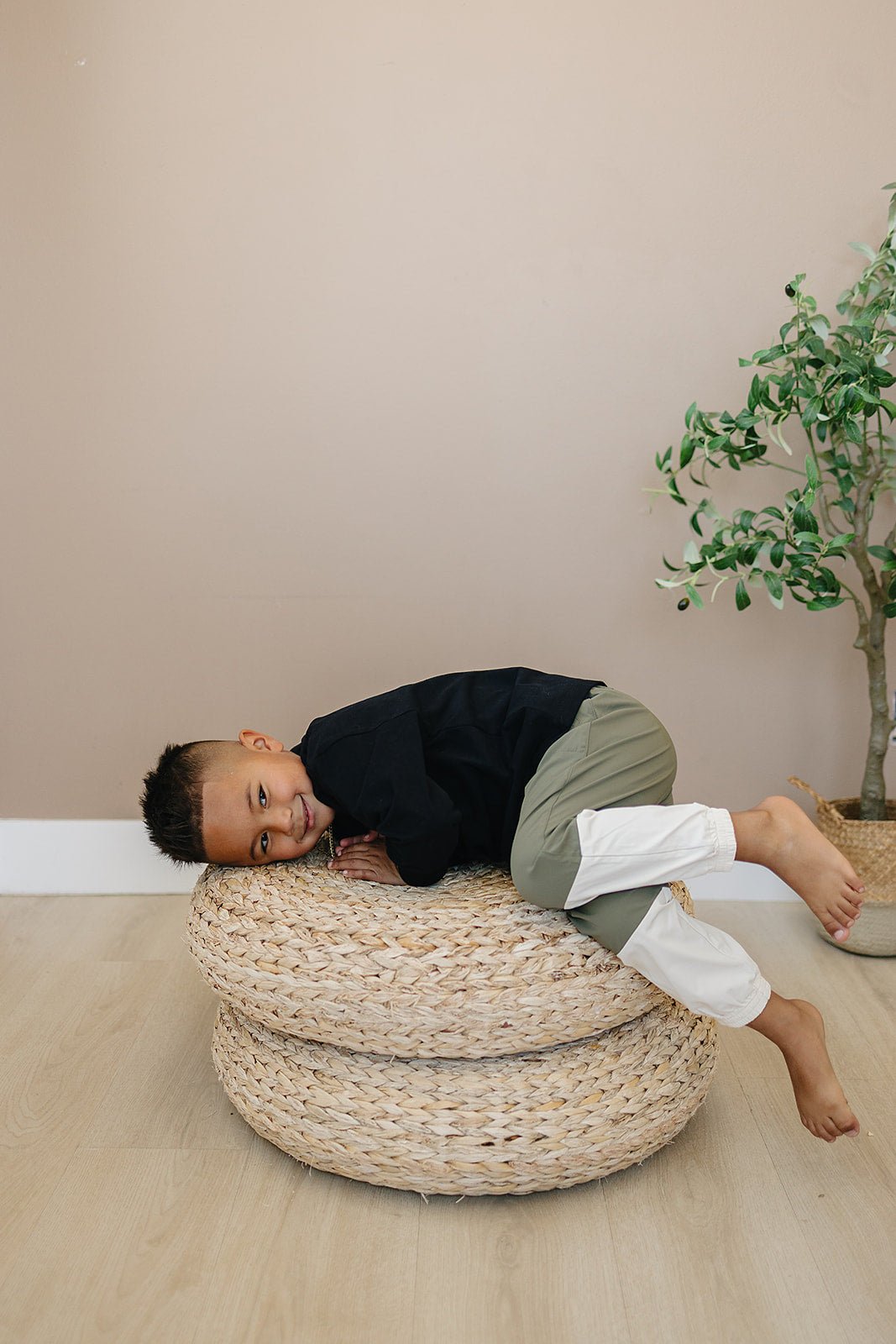 The Julian Joggers bring the same cozy fit and material you love in our Eden Joggers, now with a playful twist. Color blocking at the ankle adds a fun pop of style while the elastic waistband and cuffs ensure all-day comfort. Made from easy-to-clean fabric, these joggers are perfect for playtime adventures and relaxed days alike.