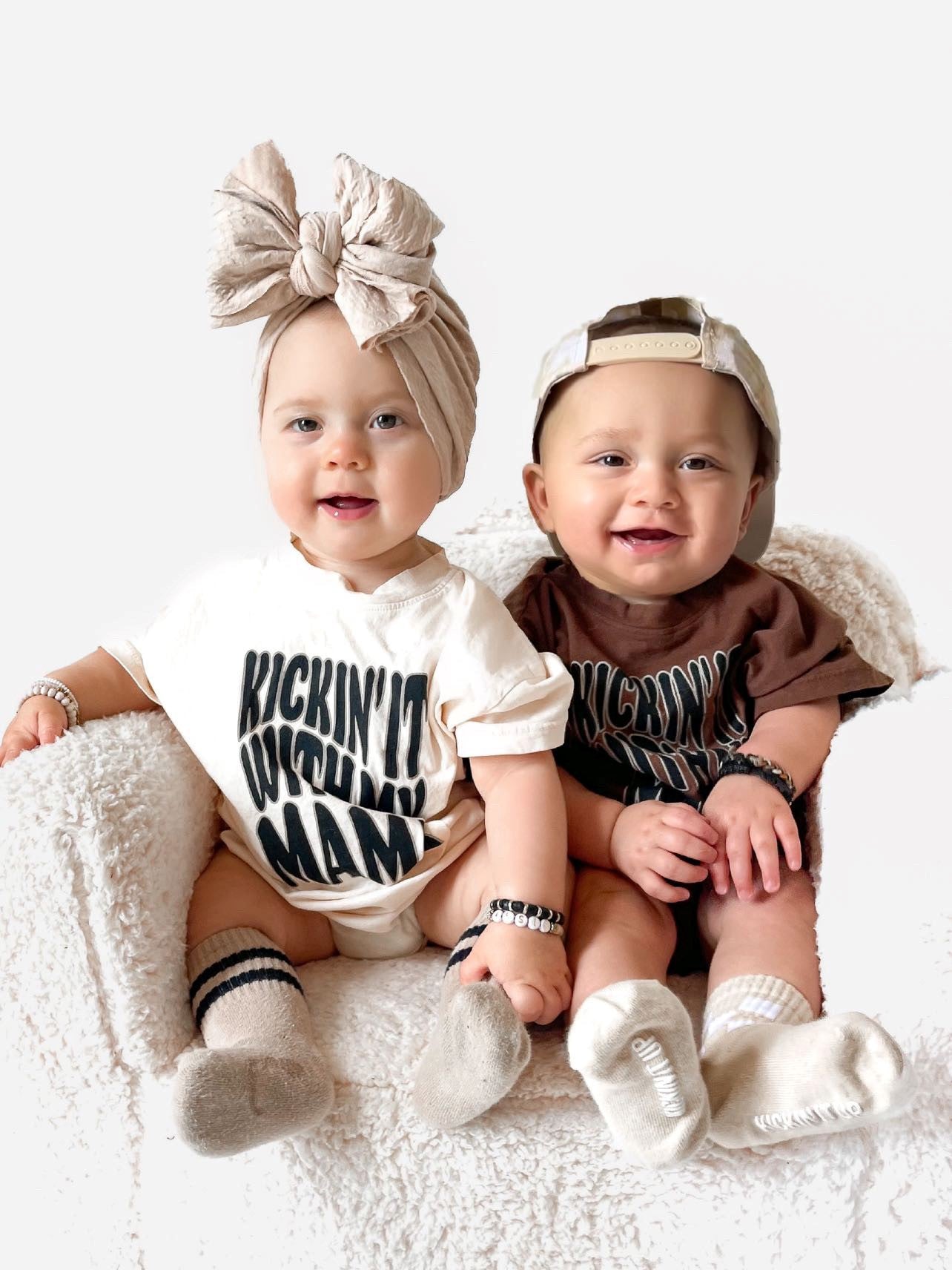 These oversized rompers & tees are part of an exclusive collab with our friends at Kickin’ It Up Socks!