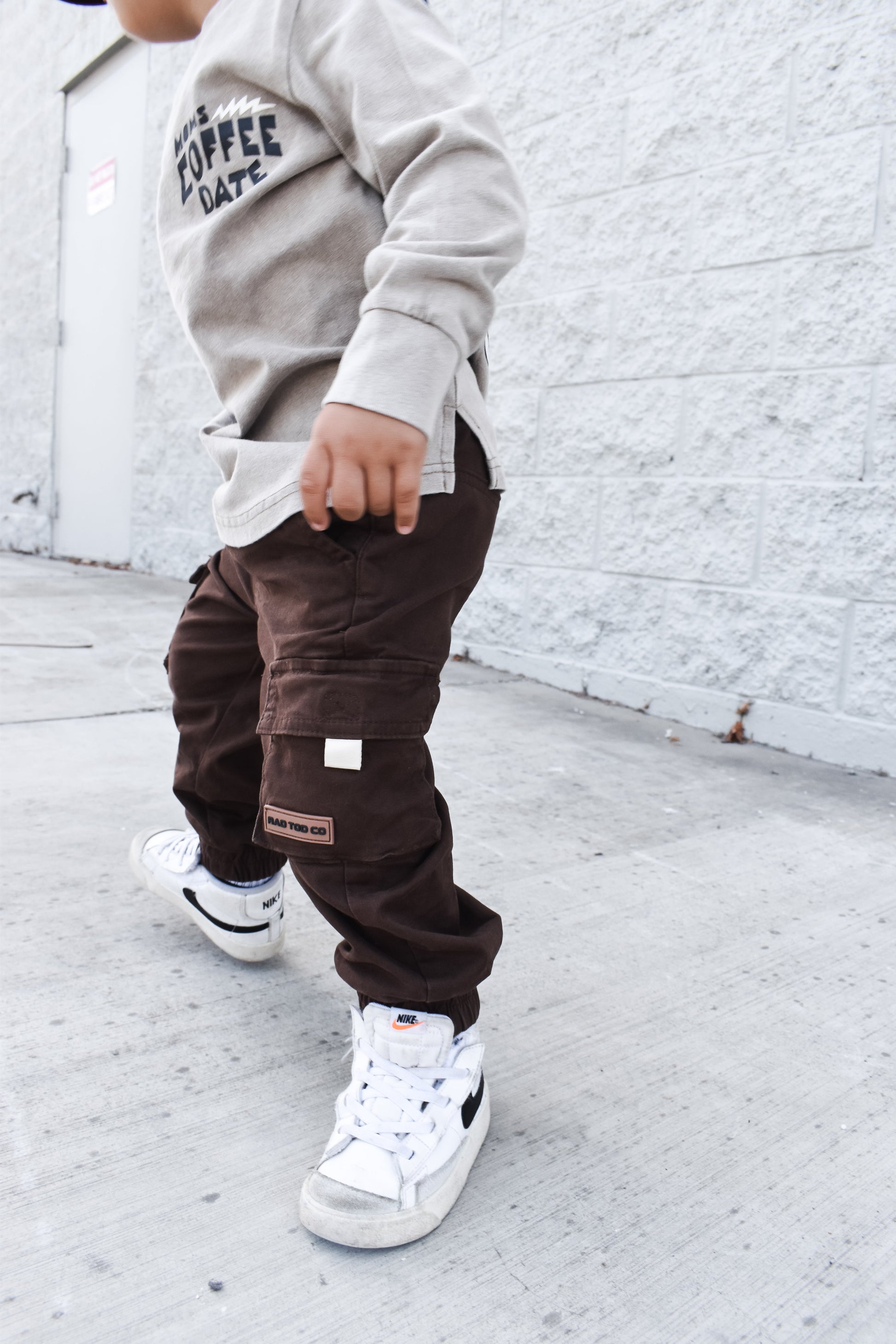 Meet your new go-to cargos—built for style, comfort, and everyday chaos. Available in Black, Beige, and Brown, these pants are designed with a perfect fit that pairs effortlessly with our long sleeve tees, crewnecks, and shackets. From school days to weekend adventures, they’re made to keep up while keeping the look on point.