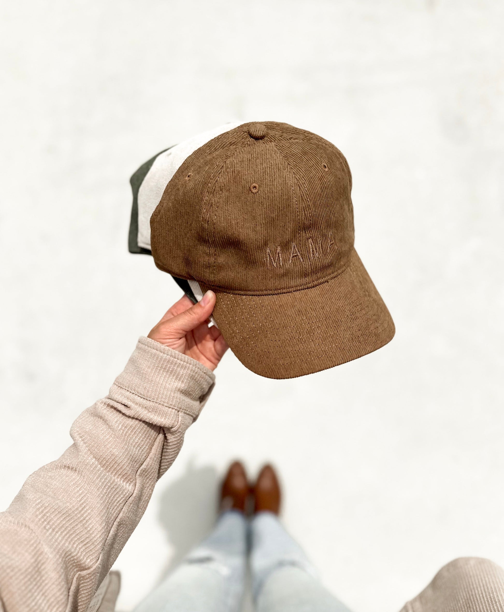 Mama Basic Tonal Embroidered Corduroy Cap