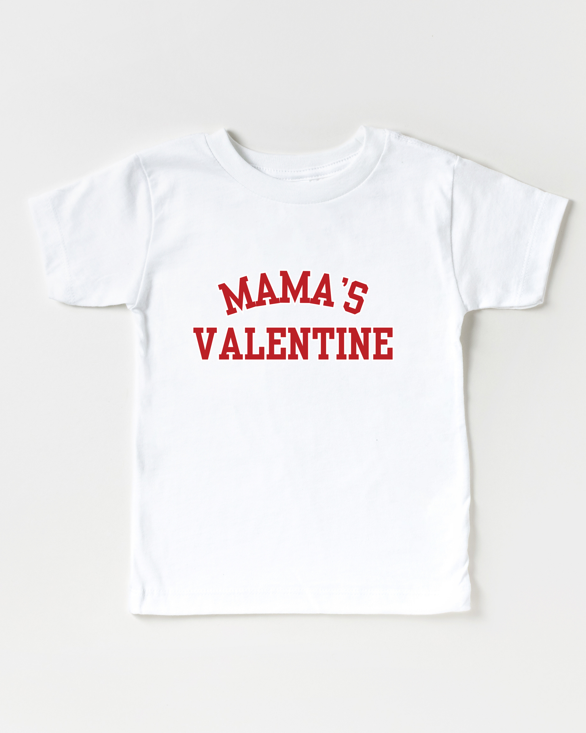 Mama's Valentine Tee Let the little ones show their love with this adorable kids' Valentine's tee. Designed for comfort and cuteness, it's the perfect way for children to celebrate their favorite person. Soft, durable fabric withstands playtime and countless washes, while the playful design brings smiles to everyone who sees it. Whether worn on Valentine's Day or year-round, this tee is a sweet reminder that mom is loved.