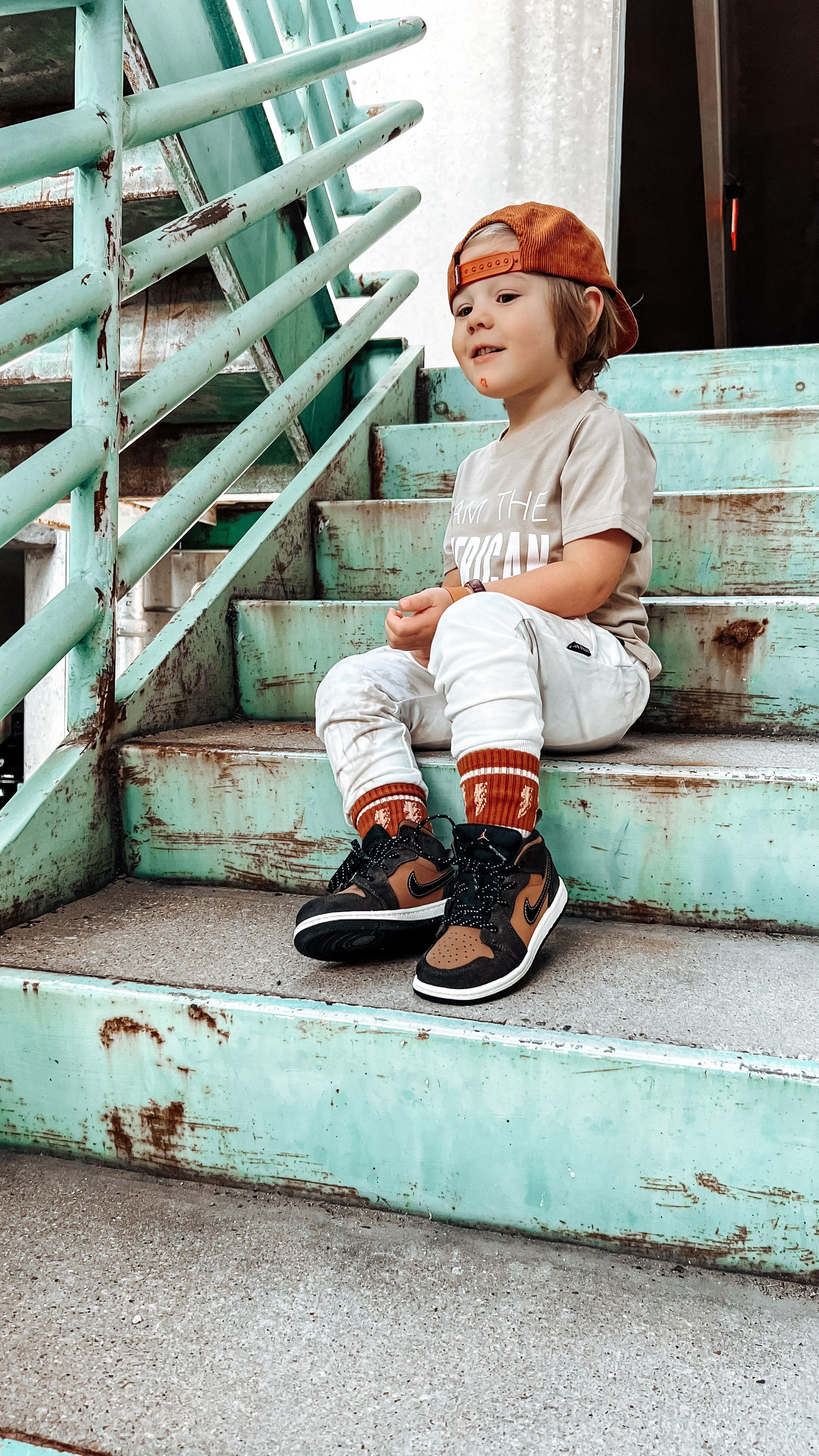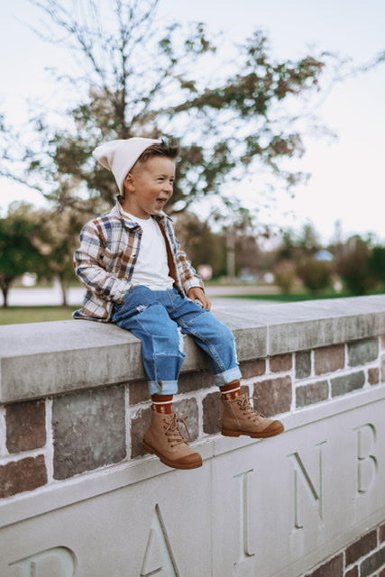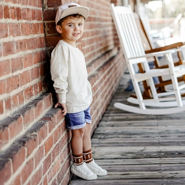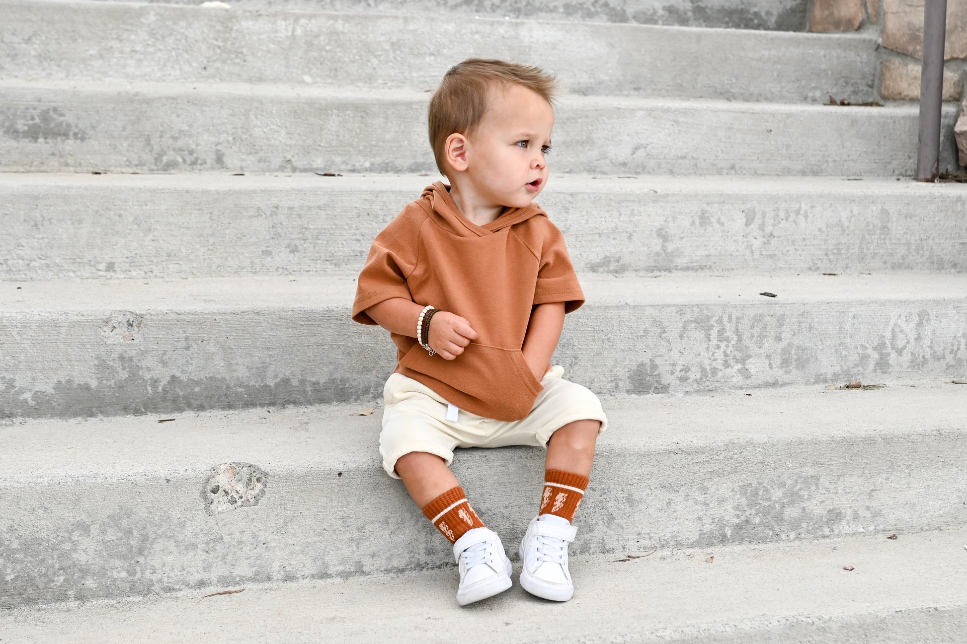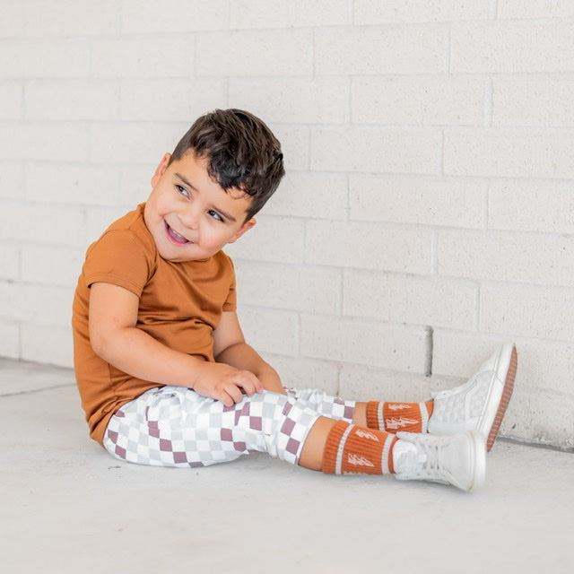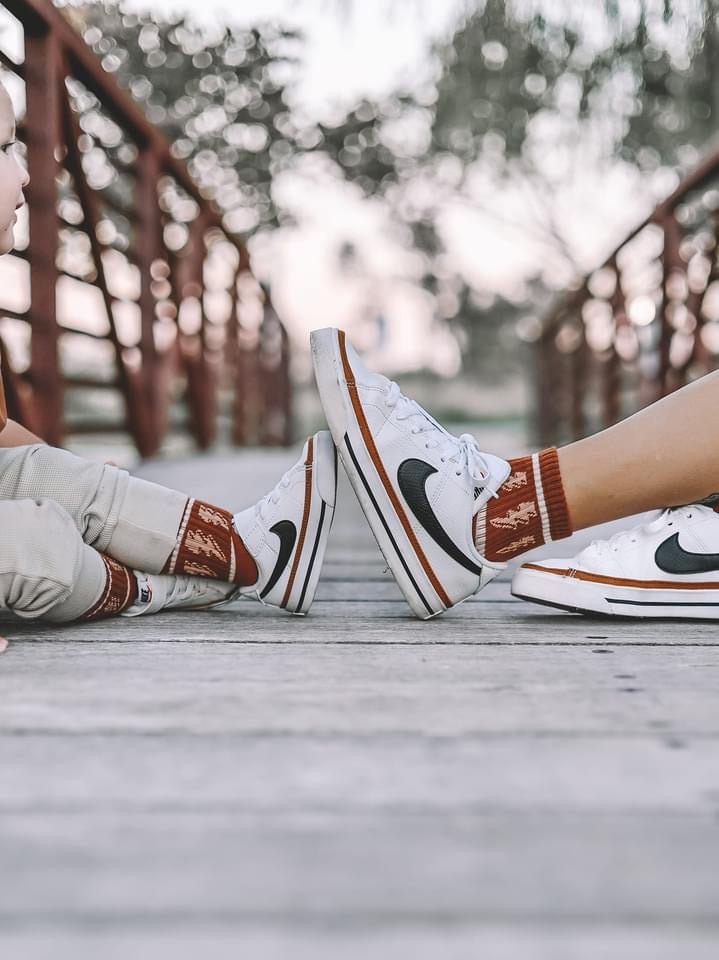 Sizes Infant/XXS, Extra Small, Small + Medium have logo grips on the bottom of the feet and size large have a stitched logo on the bottom of the feet.