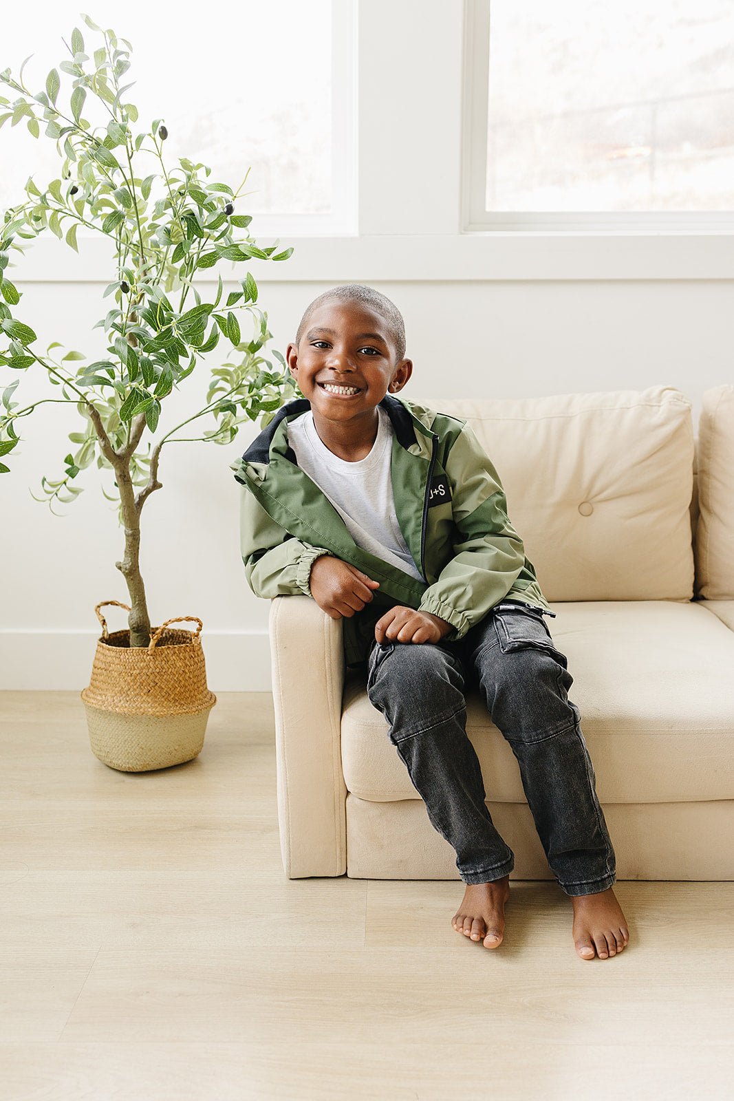 Stay stylish and dry with the Ramsey Jacket. This cute lightweight jacket is perfect for a rainy day, featuring a zip-up front and 2 pockets. The elastic waist and cuffs ensure a comfortable fit for your little one. Rain or shine, this jacket has got you covered.