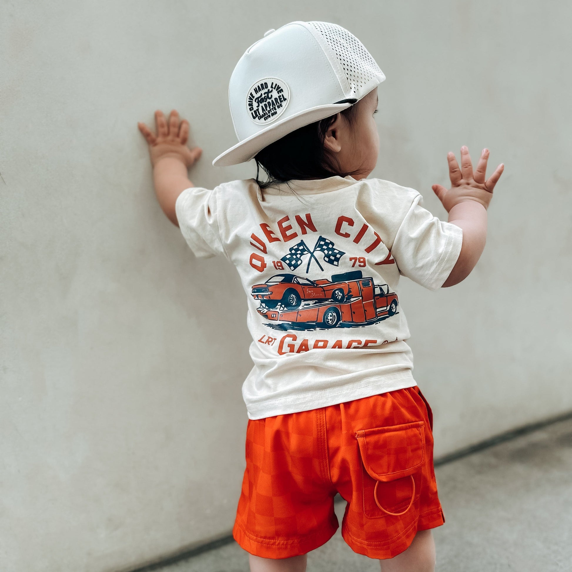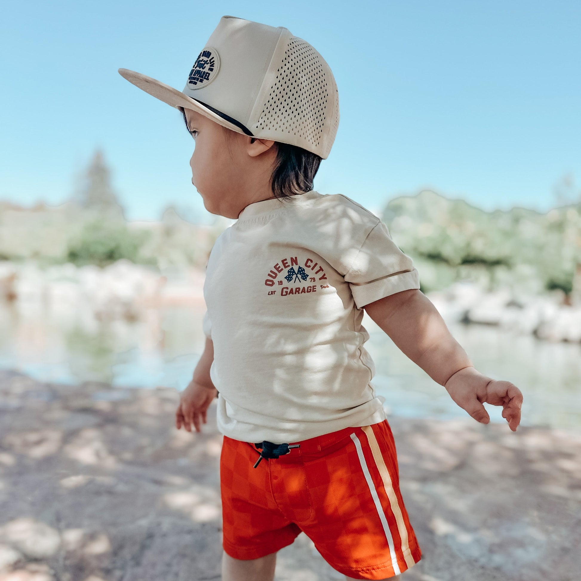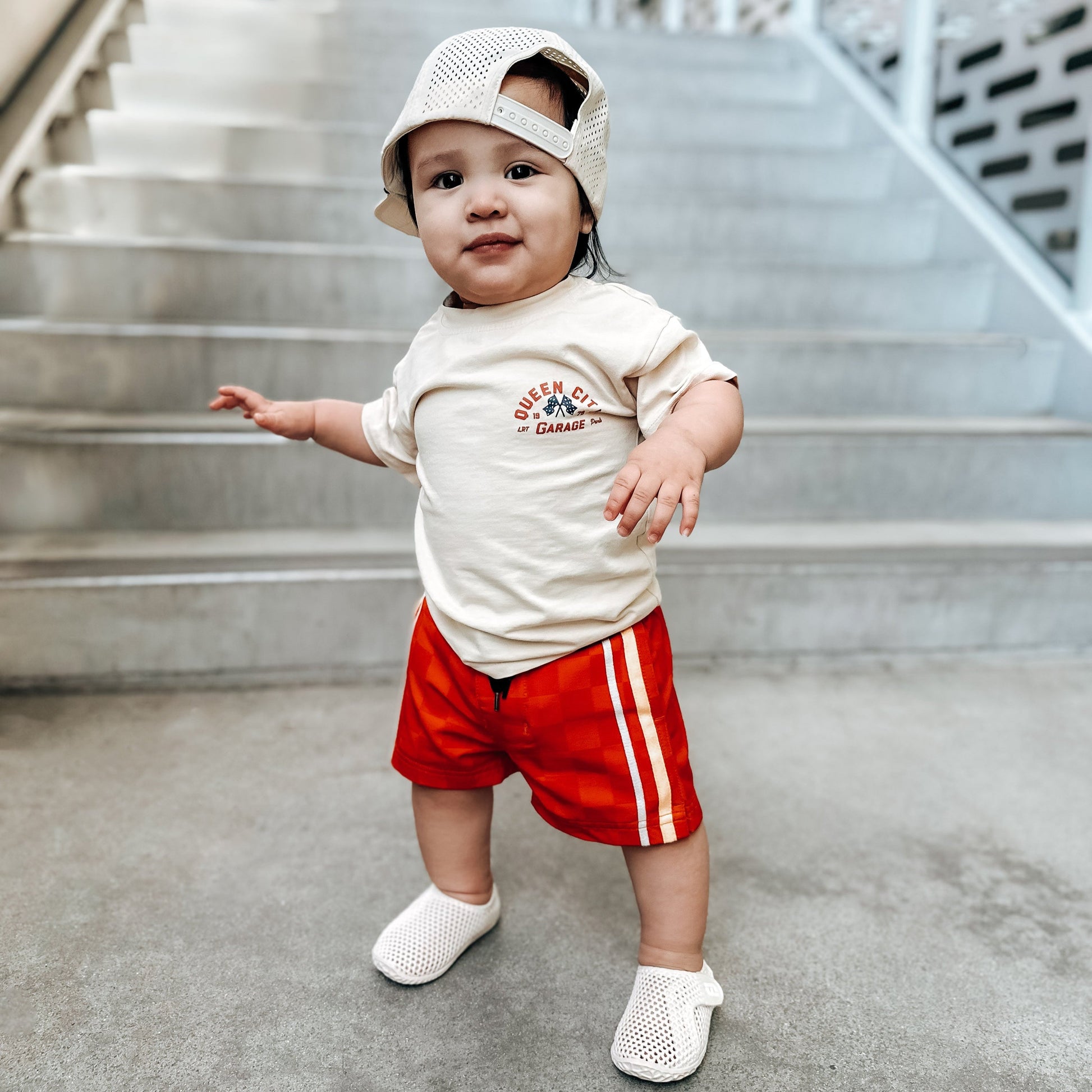 Designed by a boy mom who knows what kids need—these Retro-Wave Hybrid Boardshorts are built for all-day play, from the backyard to the beach. Made with a lightweight, moisture-wicking blend of 92% polyester and 8% spandex, they’re ultra-comfortable, quick-drying, and completely liner-free (because no one likes an annoying liner!).