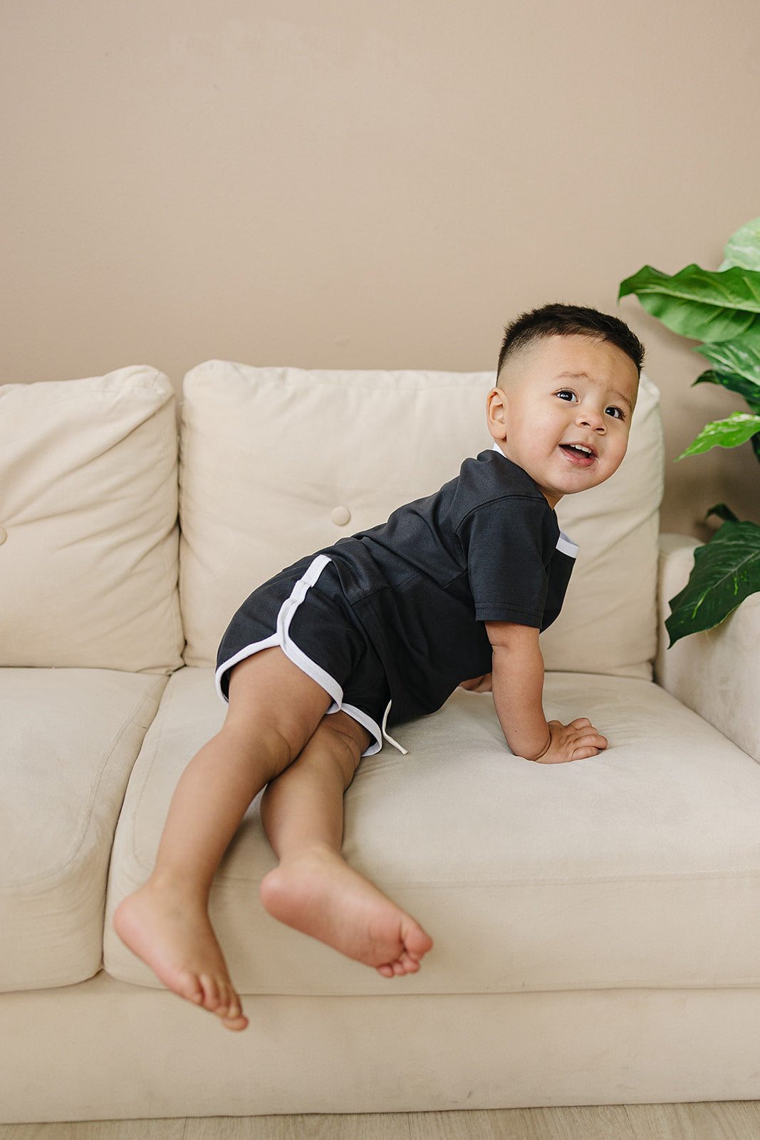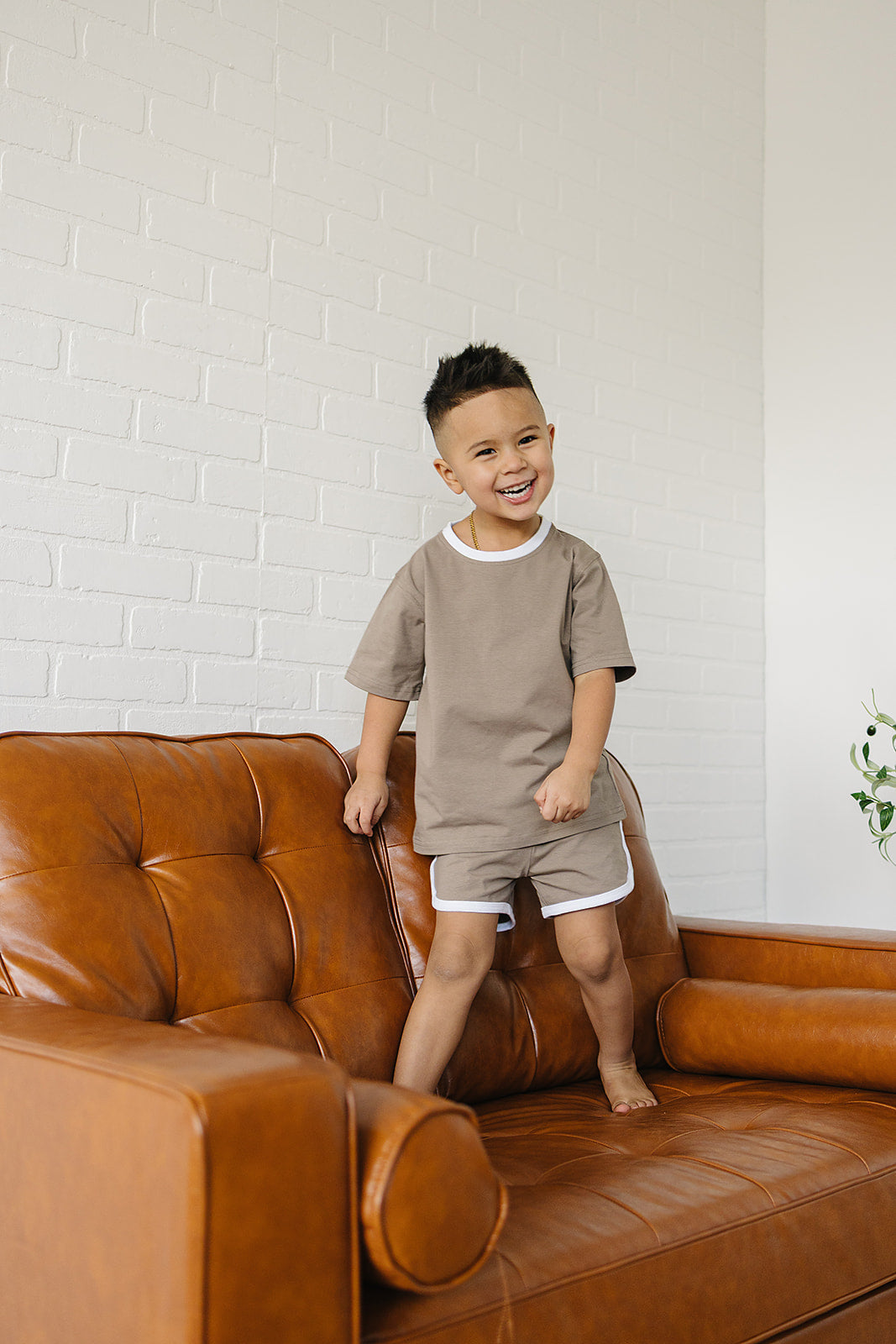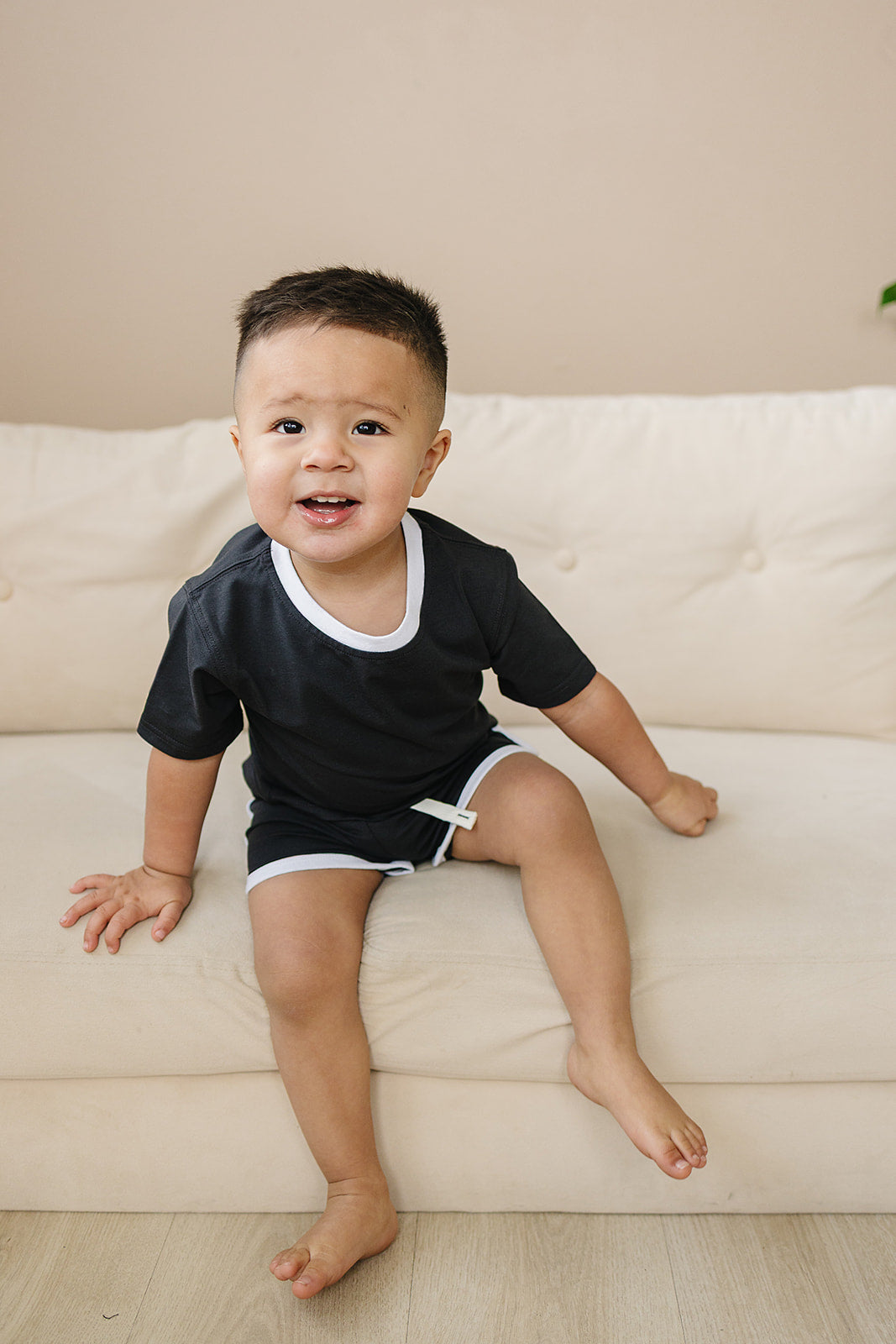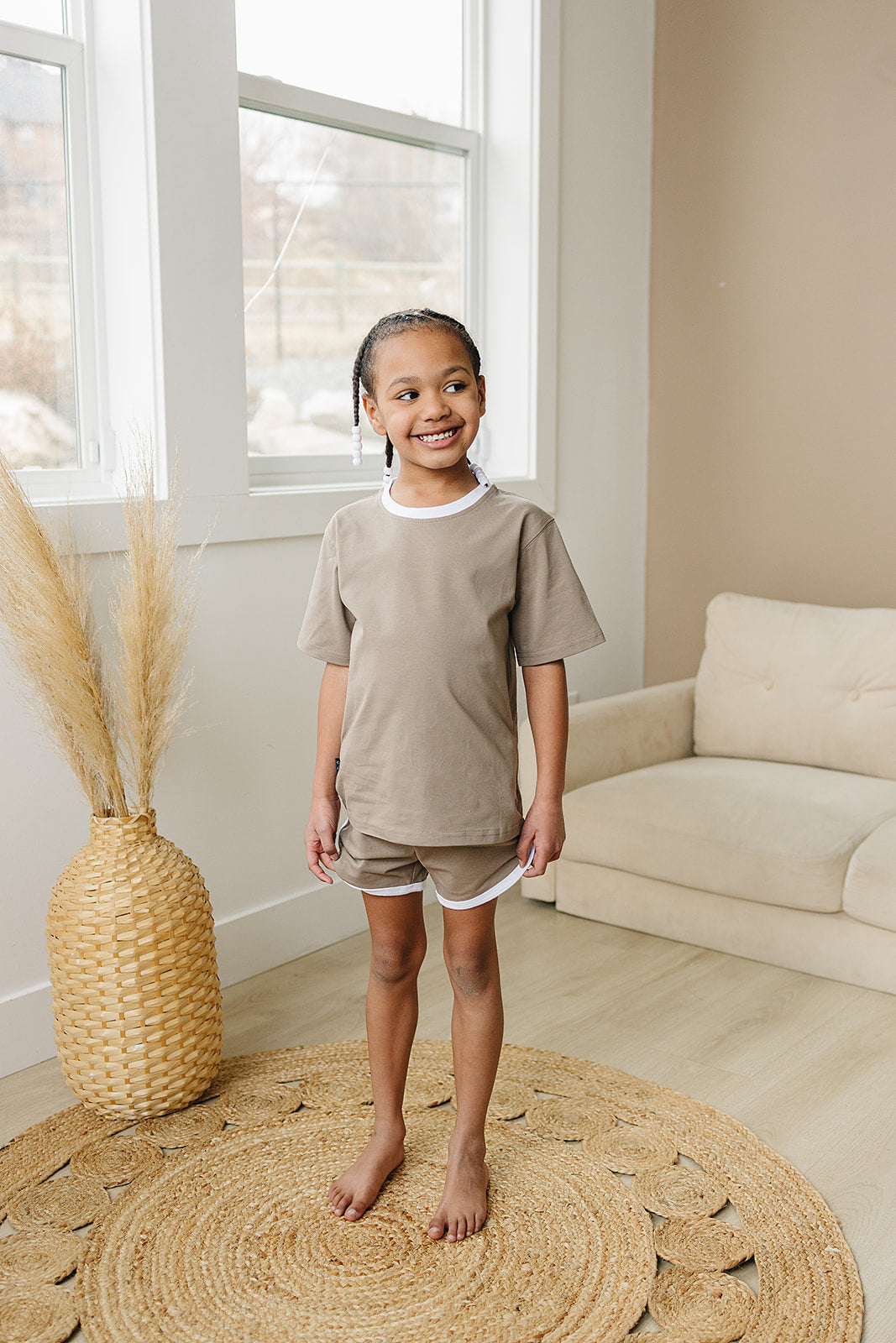 Introducing the Rhae Set - a perfect mix of retro vibes and functional design. Made with super soft material, this set features short shorts with an elastic waistband and drawstring for a perfect fit. Lightweight and perfect for summer fun, your little one will rock this set to perfection!