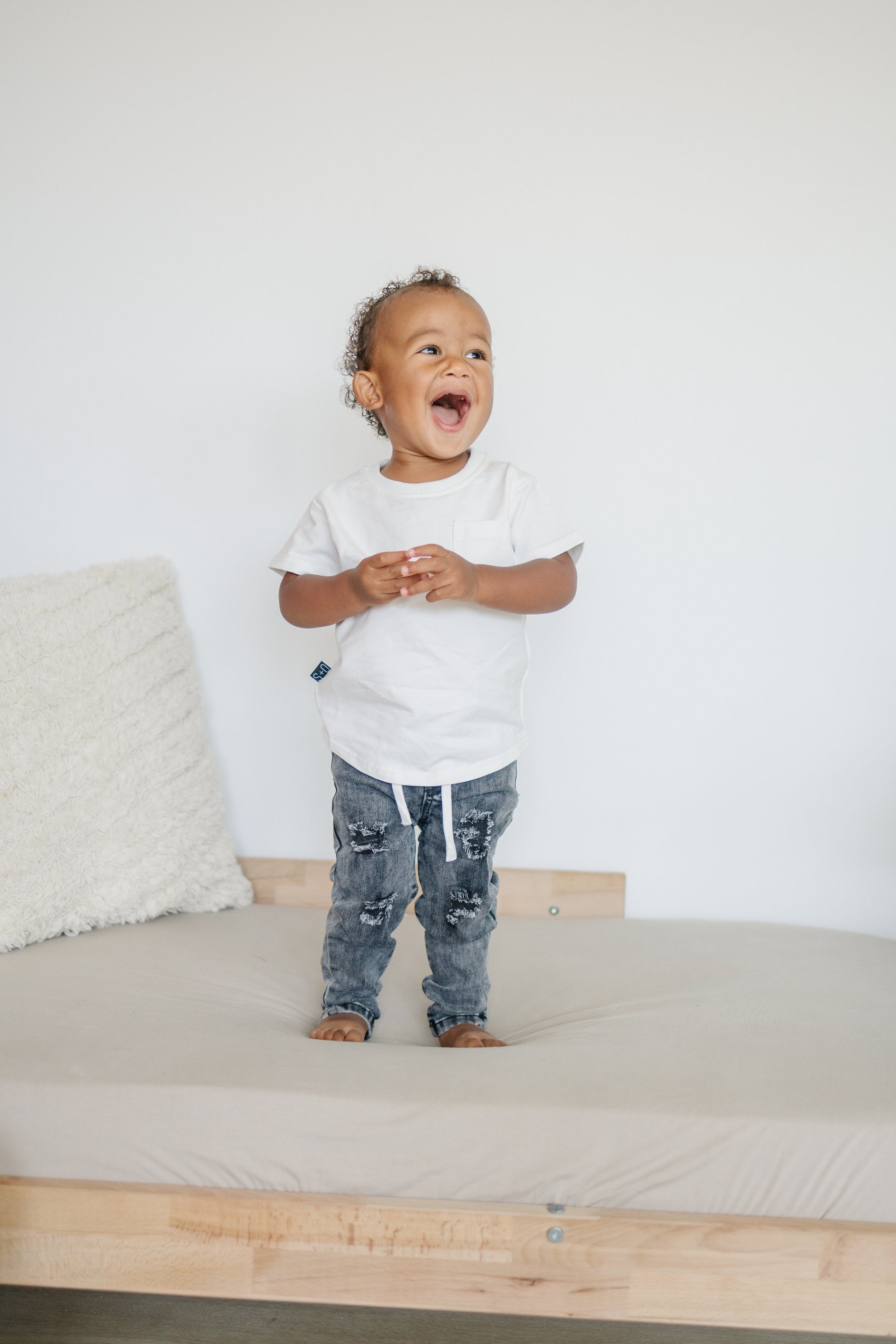 The River Tee is a perfect basic top to throw on your little one for any occasion. Wear it on it's own or use it as a base layer under a jacket. The chest pocket and drop hem give it just enough flair to stand out, and the soft and stretchy fabric is perfect for your little one's skin. They're going to look extra fresh in this top.