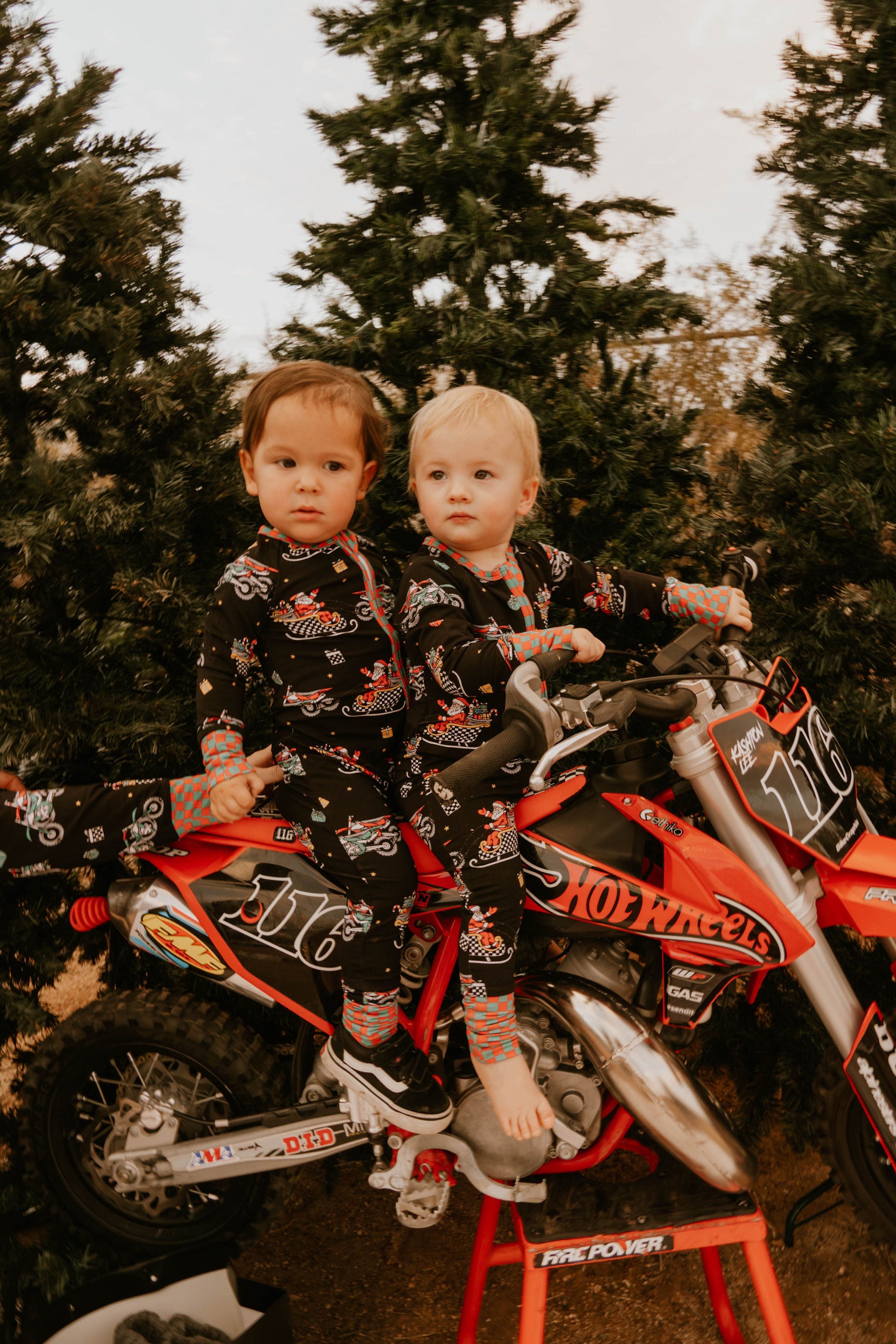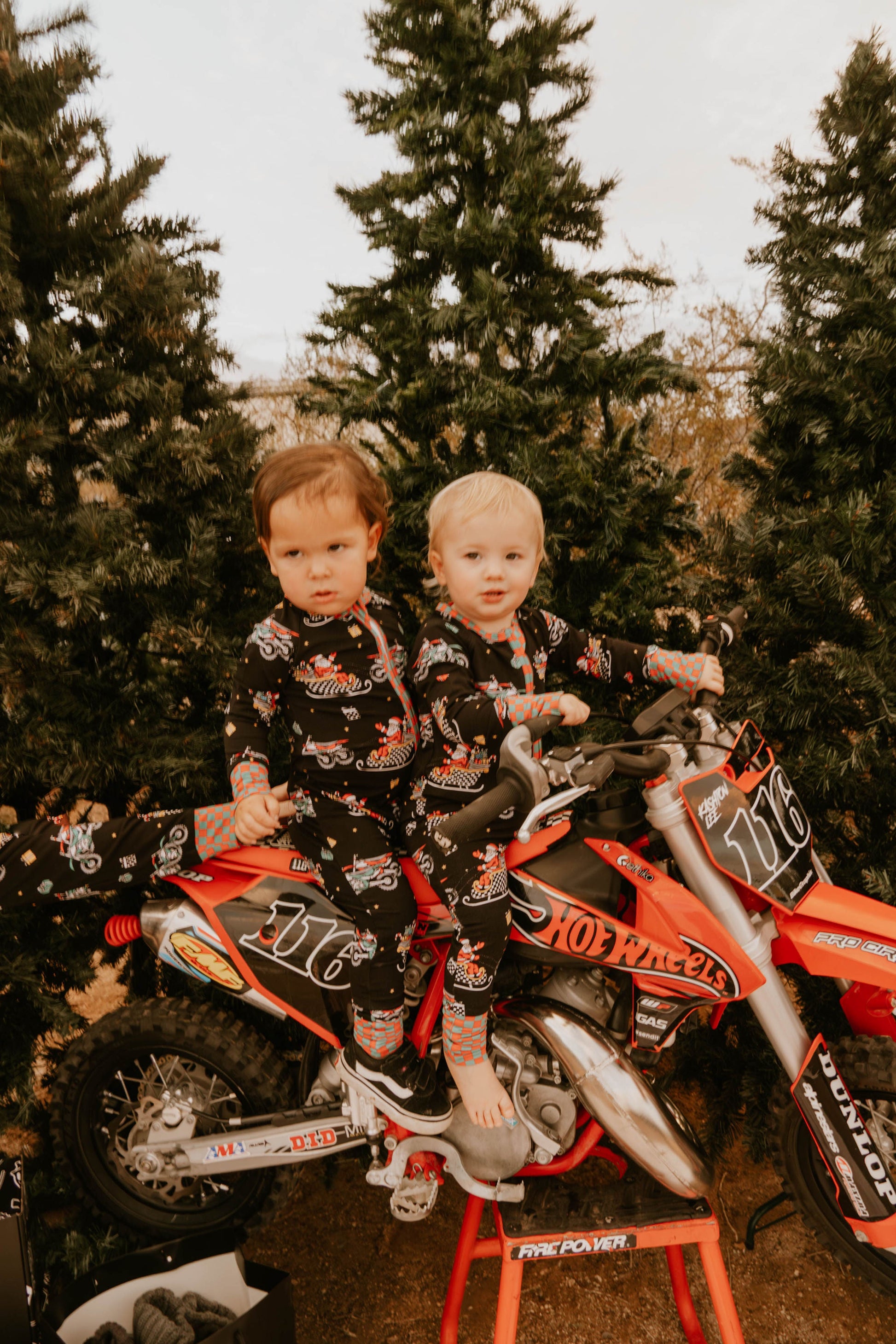 Back by popular demand are our "Santas Speedy Sleigh" baby zip-up pajamas, designed for the youngest members of racing families and guaranteed to bring joy to Christmas morning. This cozy set features a charming Rudolph the Red-Nosed Reindeer racing design and comes with convenient fold-over feet and hands, providing added warmth and comfort for your little one.