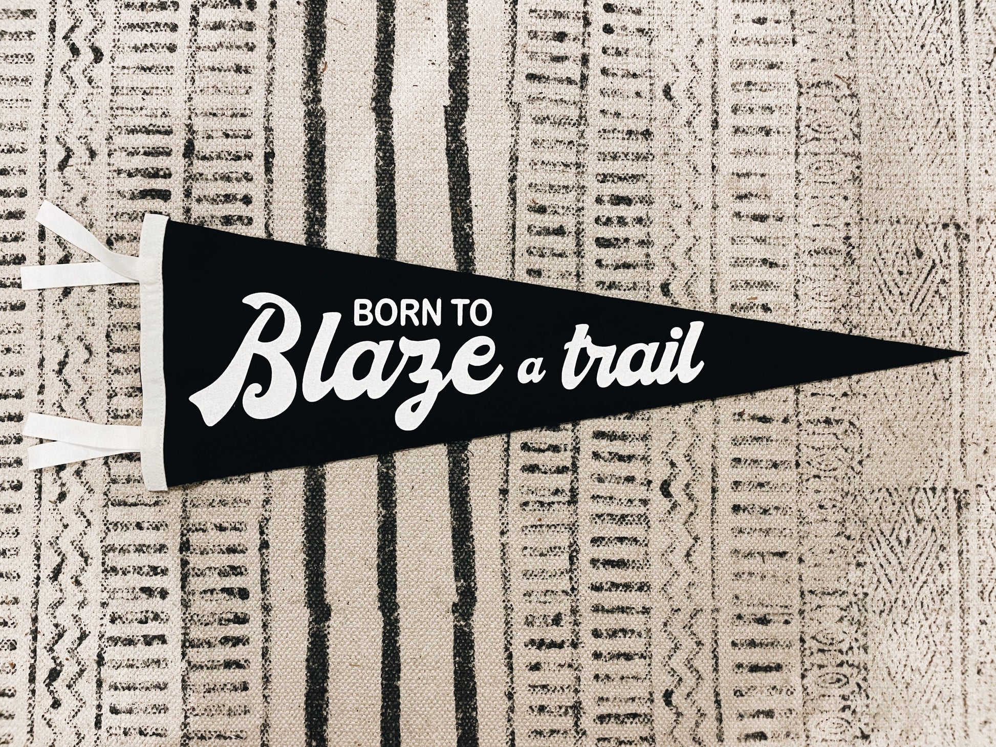 Our hope and prayer is that these pennant flags will hang in your homes, playrooms and bedrooms, and will be a constant reminder to your kids that: you were born to adventure fearlessly, to lead by example, to blaze a trail that is uniquely your own and blaze a path for others who might need that helping hand when they travel the trail.