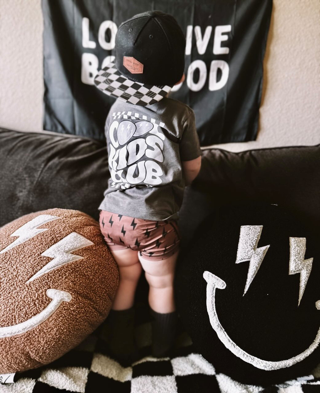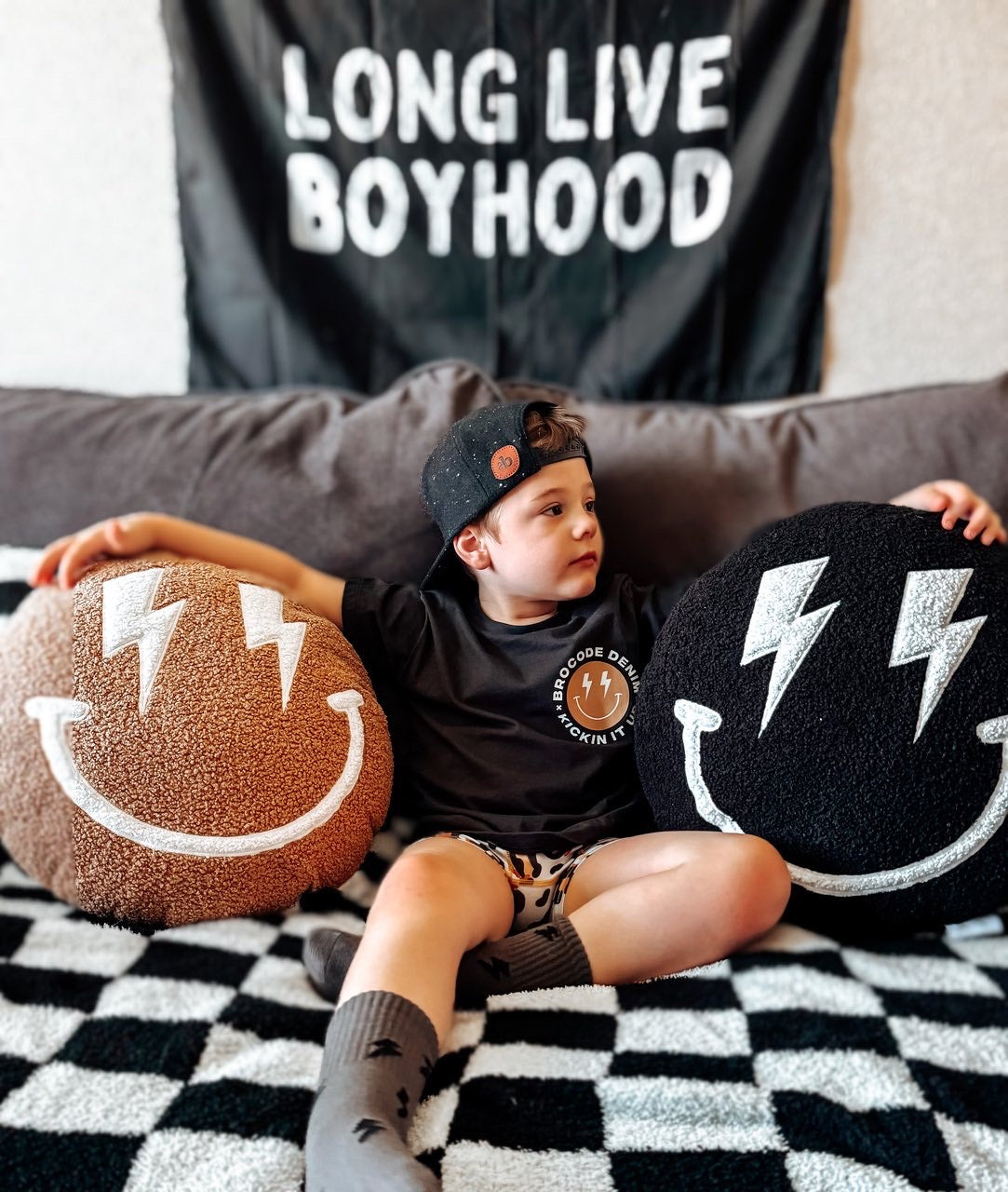 Calling all the cool kids to our cool smiley plush pillow! The perfect cuddle pillow for car rides or daycare. Stay hip, stay rad + stay cool even when sleeping.
