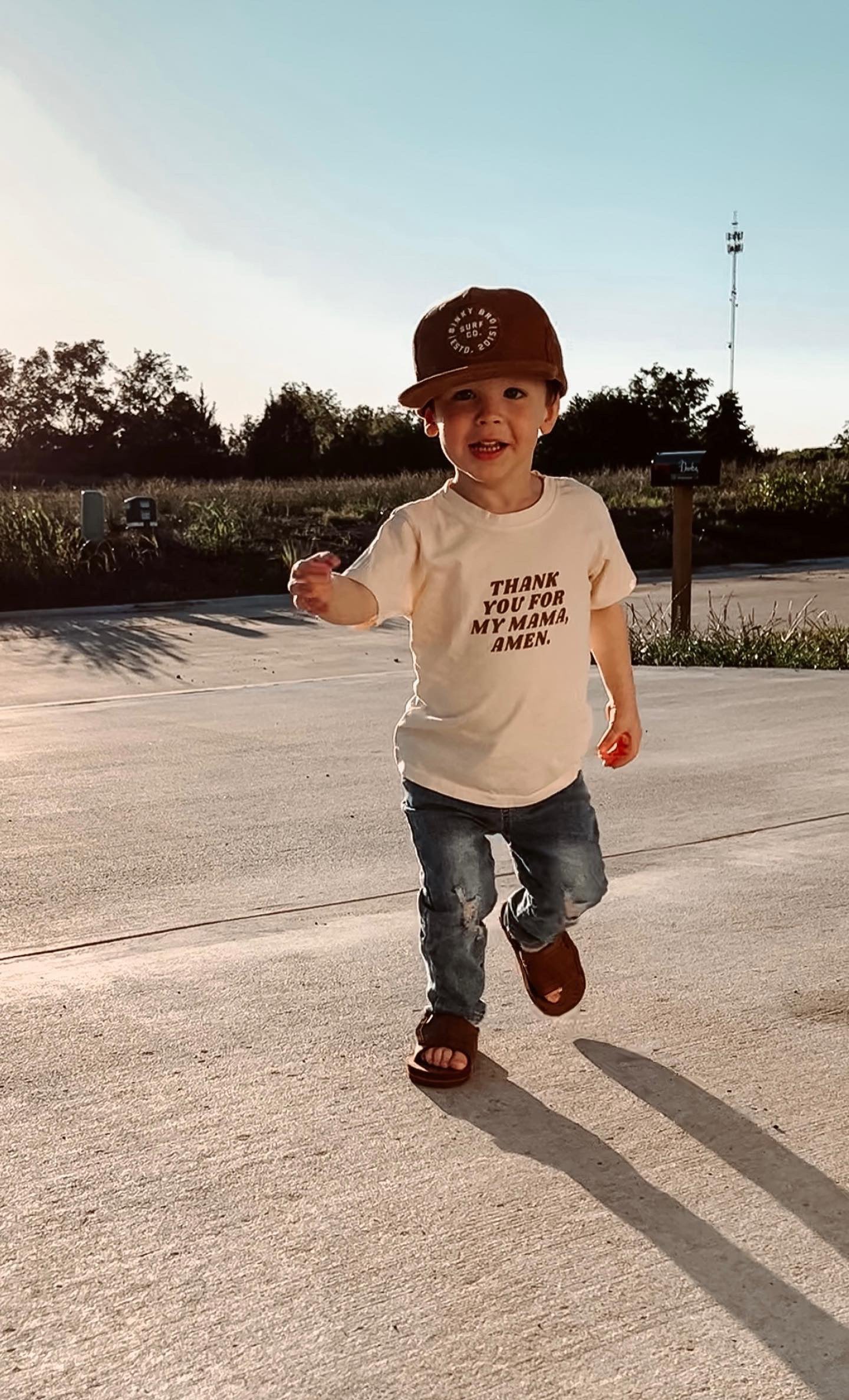 This tee, like many others, was inspired by my son, Tate. When he says his prayers he gives little shout outs like "thank you for playing with me daddy" or "thank you for cooking dinner mama". It was such a sweet habit of his that always made us smile.