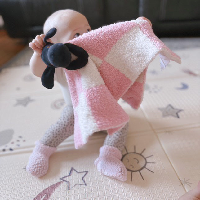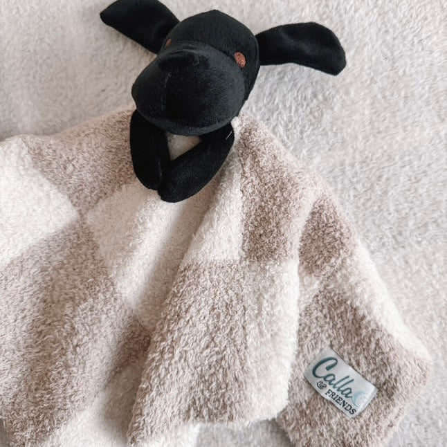These super soft lovey blankets feature an adorable plush Calla on top, perfect for snuggling and comforting your little ones. Calla was more than just a pet; she was a loyal companion for 17 years, a pound puppy who brought joy and love into our home. Known for her playful spirit, she adored kids, snacks, and sporting the cutest bandanas. Now, her legacy lives on through these sweet loveys, designed to provide warmth and security.