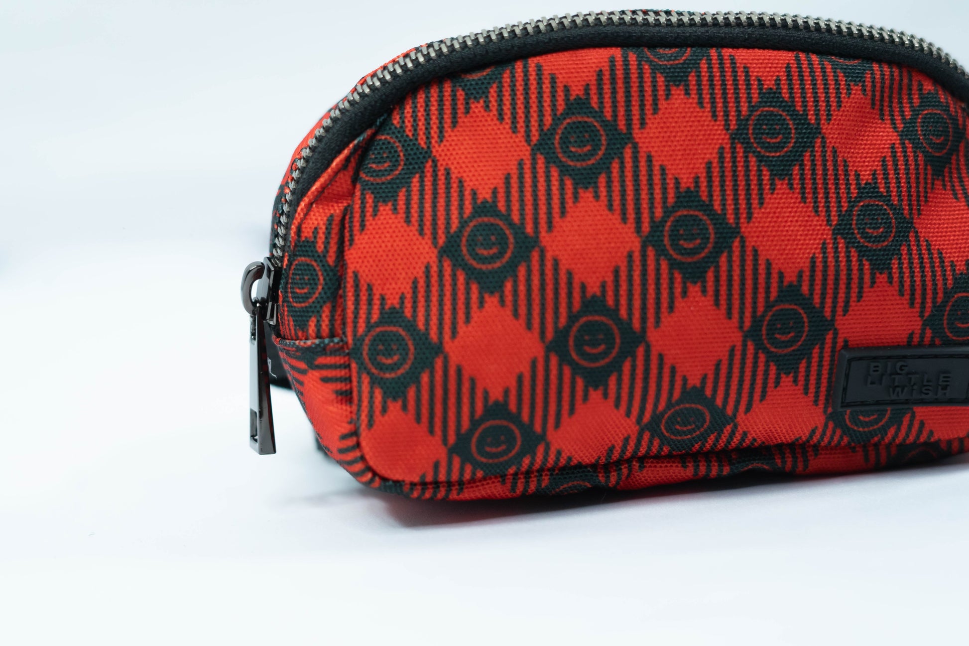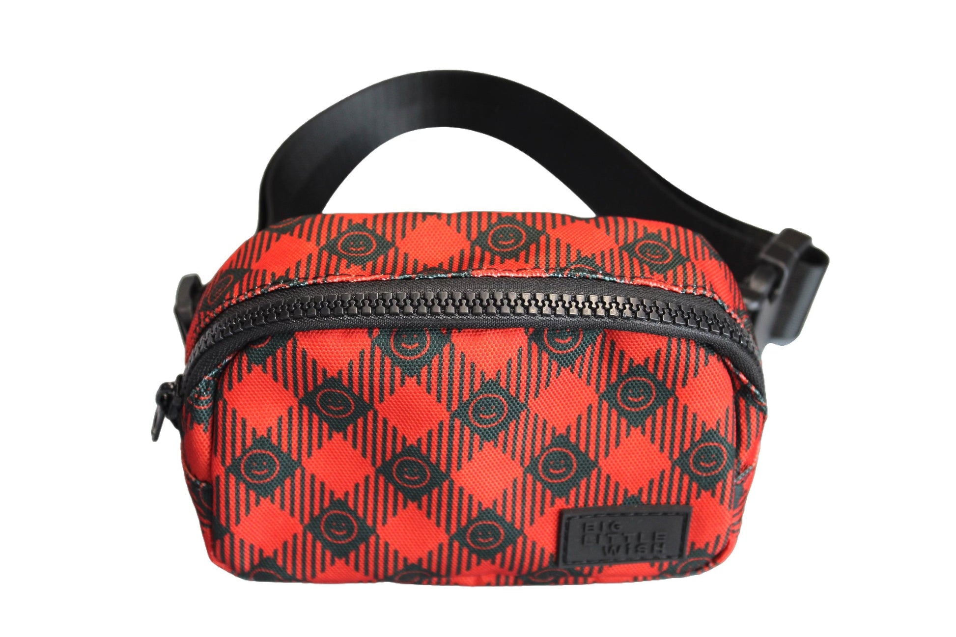 This retro-style buffalo plaid fanny bag will bring a smile to your face! It's sure to be a hit with kids and adults alike – keep your little trinkets and toys tucked away in the pockets, and have a blast with the smiley face design. Red and black never looked so good! Put a hip spin on your look with The Camp Bag – Buffalo Plaid Kids Fanny Bag.