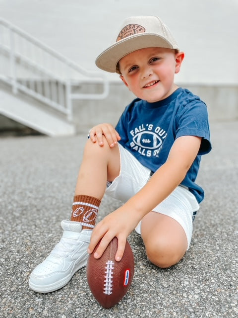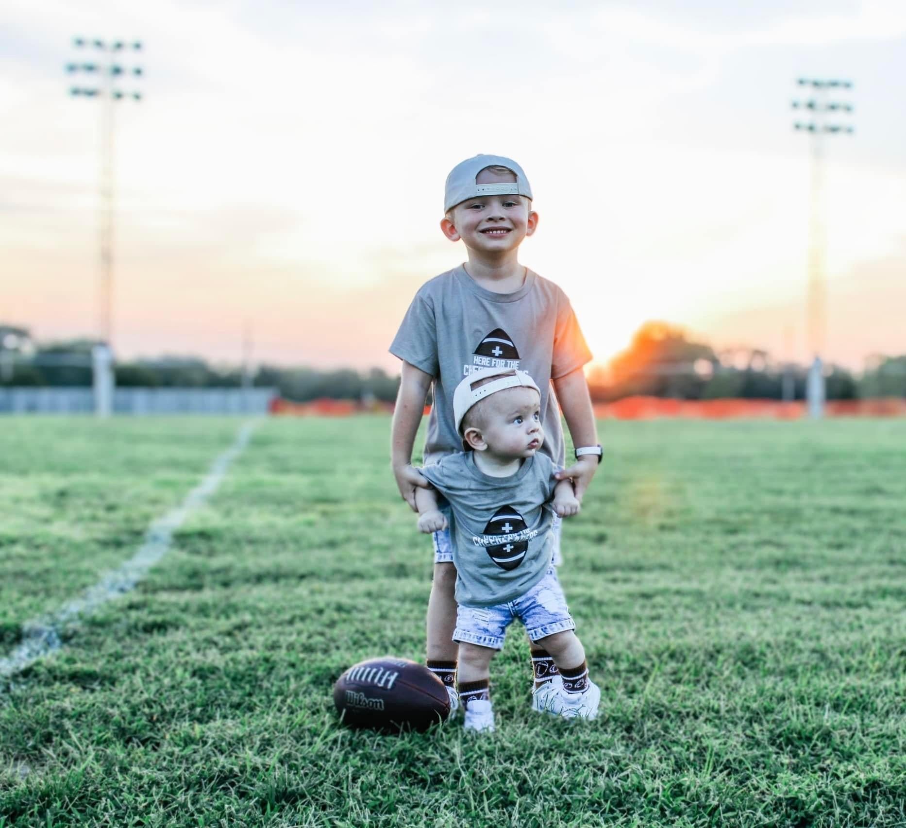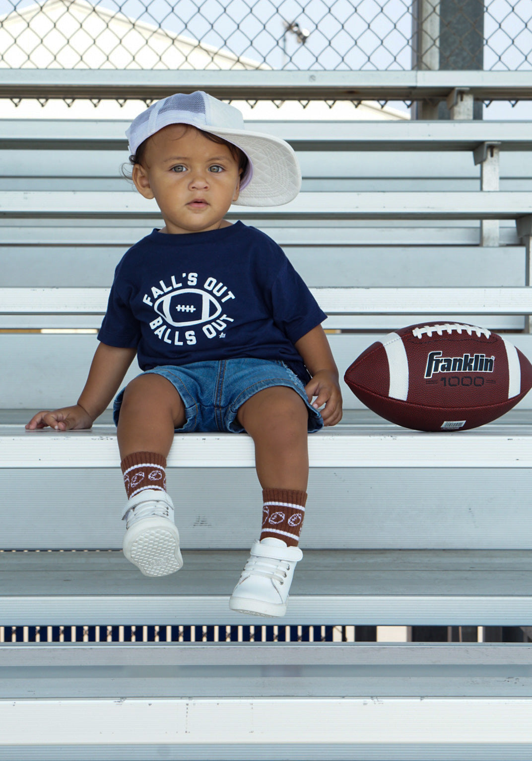 Sizes Infant/XXS, Extra Small, Small + Medium have logo grips on the bottom of the feet and size large have a stitched logo on the bottom of the feet.