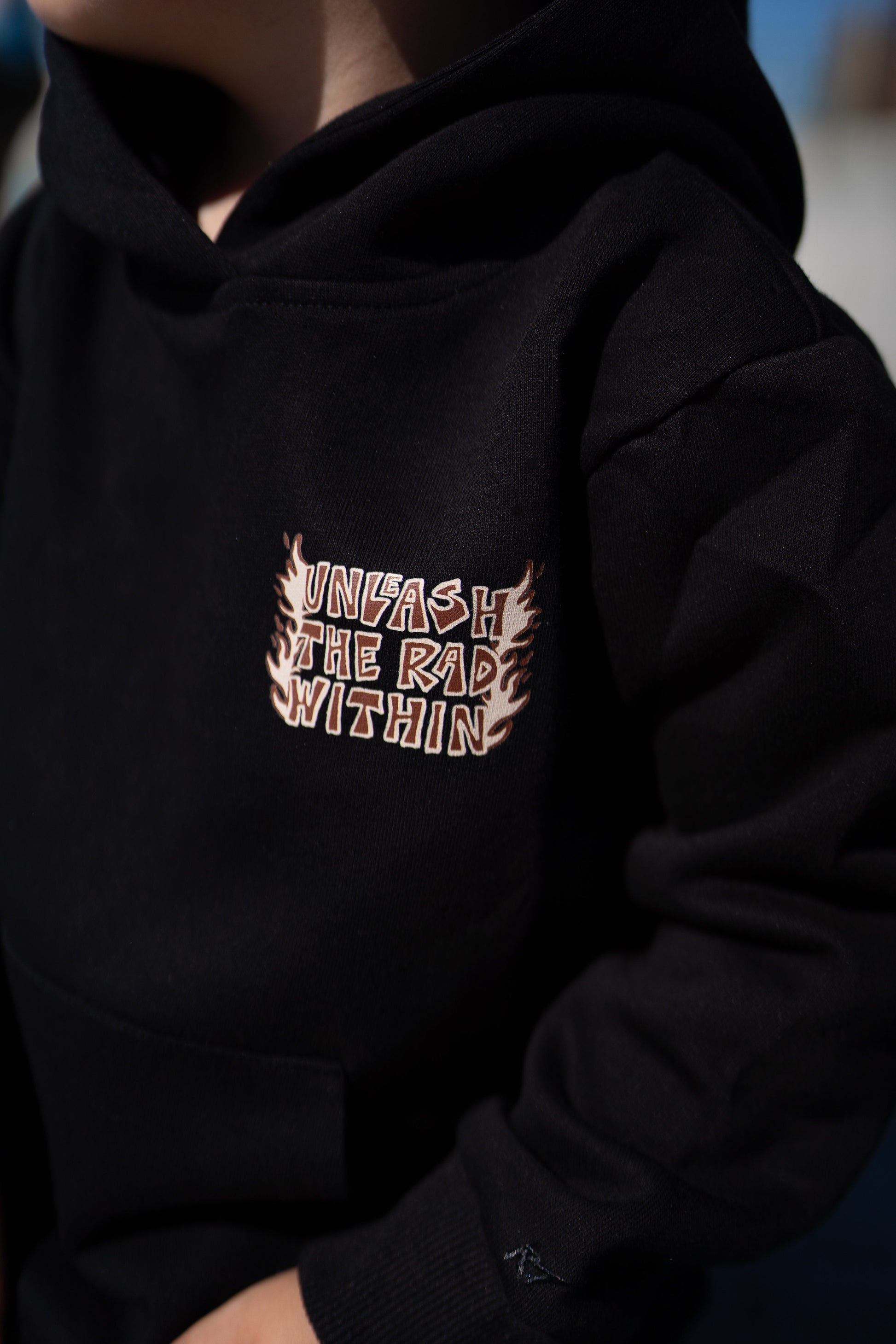 derA one of a kind toddler hoodie featuring cozy front pockets, a minimalist embroidery logo in the front, and an oversized fit (no need to size up, they are already meant to fit boxy/oversized). Our Unleash The Rad Within graphic was designed by a local artist - the raddest design for your little adventure seeker!