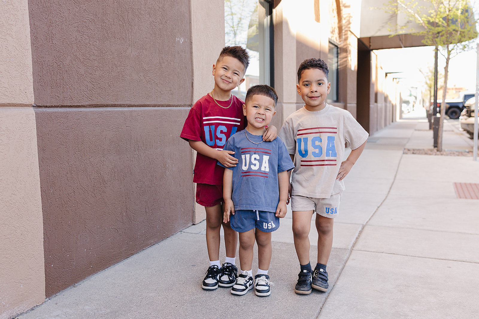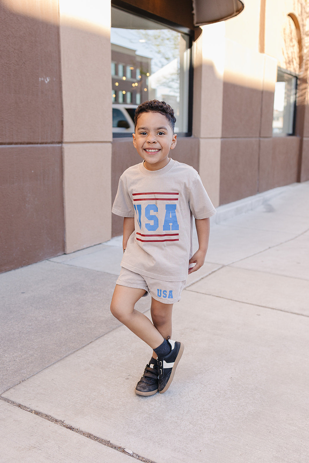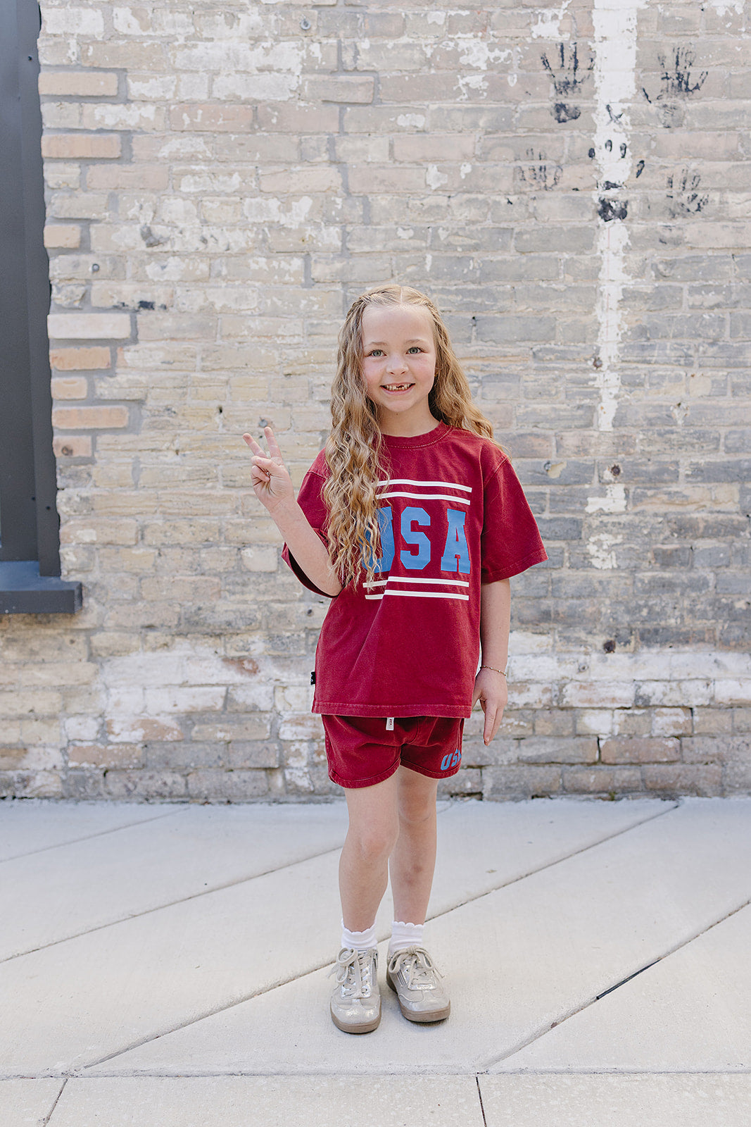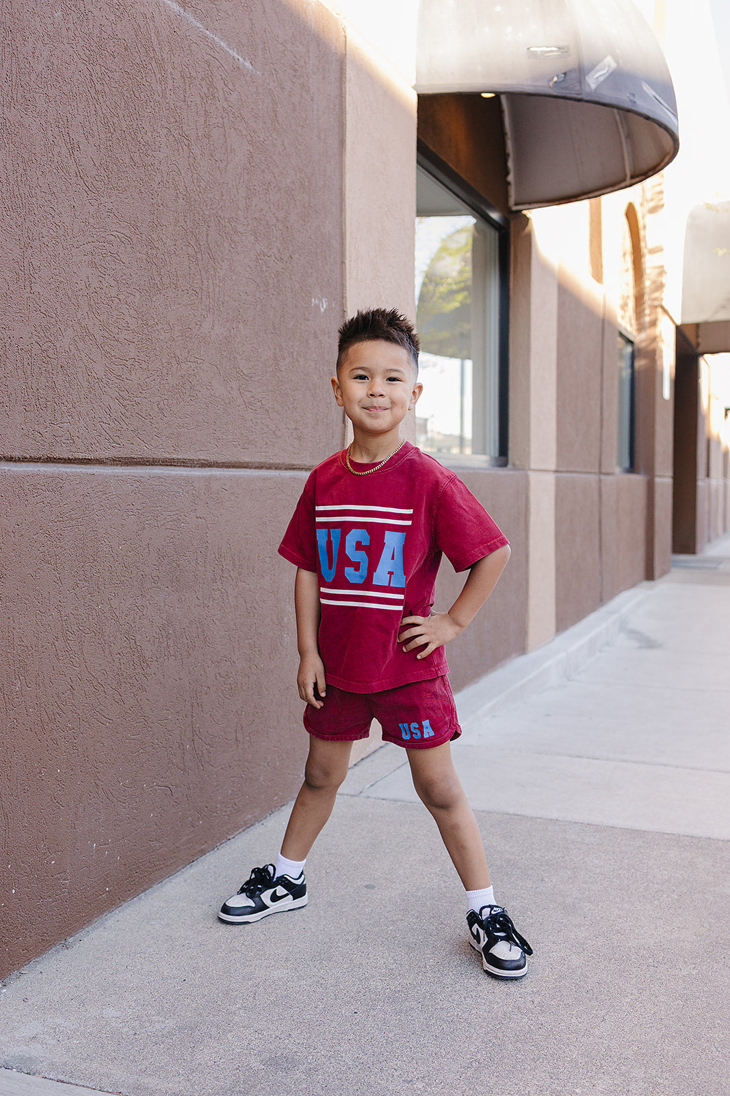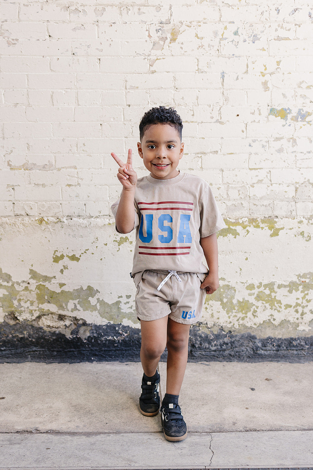 Wave those patriotic colors with pride! The USA Set is your little one's go-to outfit for Fourth of July celebrations—and honestly, it's too cute to save just for the holidays. Wear it to the park, the pool, playdates, or anywhere adventure calls. The trendy acid wash gives that perfectly worn-in, effortlessly cool vibe while staying incredibly soft against delicate skin. An elastic waistband paired with a functional drawstring means comfort meets practicality—no fussing with zippers or buttons when playtime is calling. This set is breathable, durable, and ready for whatever your little explorer throws at it. From backyard barbecues to casual everyday wear, the USA Set is the versatile piece every kid's wardrobe needs.
