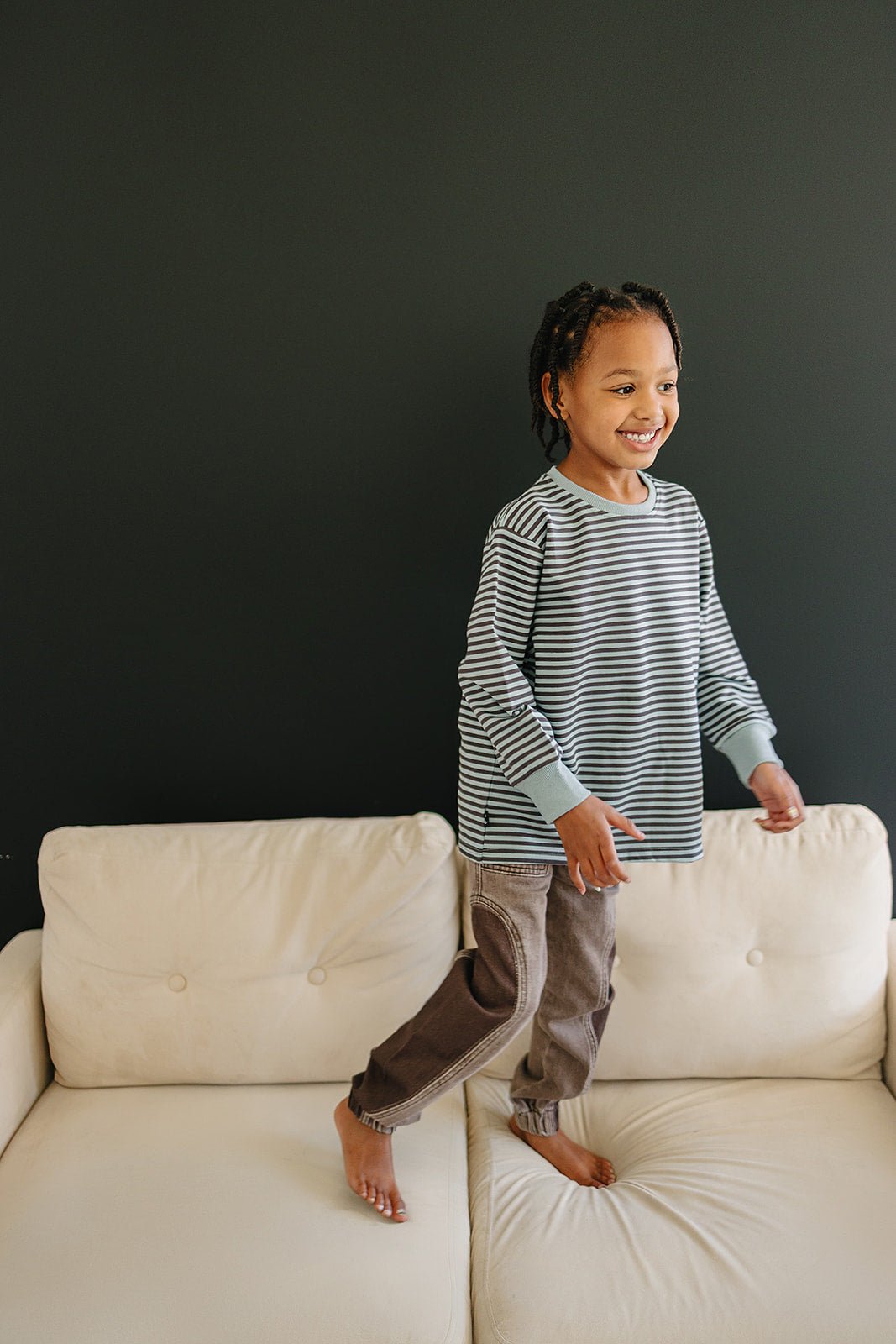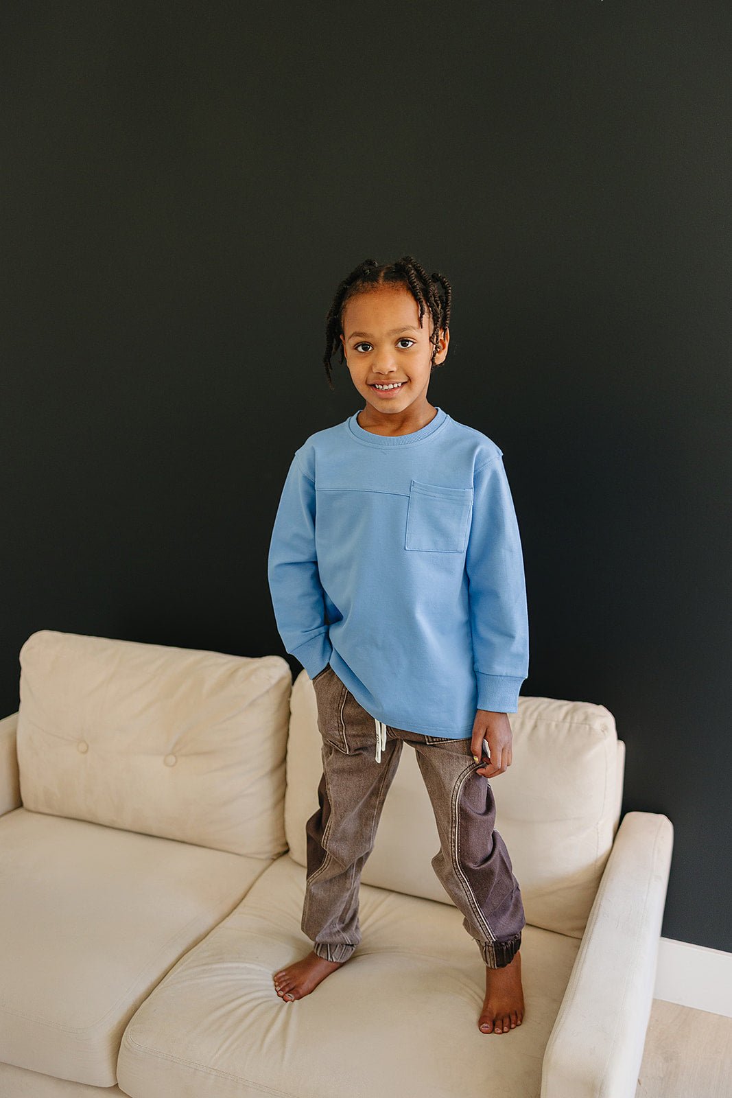 The Vance Jeans add a fun twist to your little one’s wardrobe with soft washed denim and a cool darker panel on the outer leg. Unique square seam pockets give these jeans a playful edge, while the elastic waistband and functional drawstring keep them comfy for all-day adventures. Perfect for stylish kids who love to stand out!